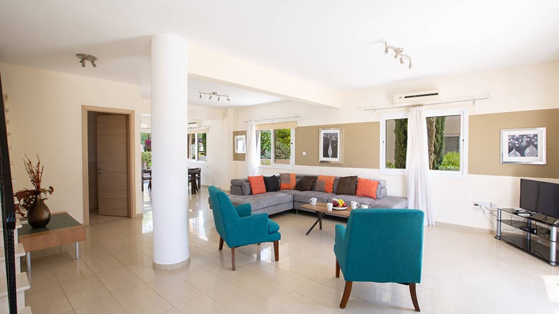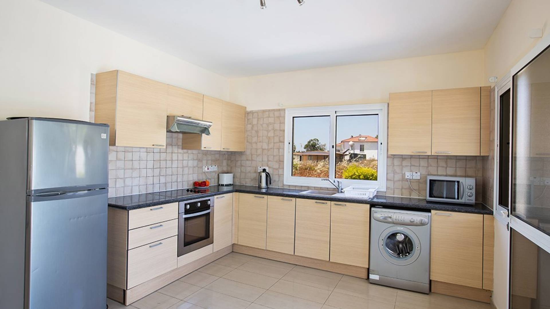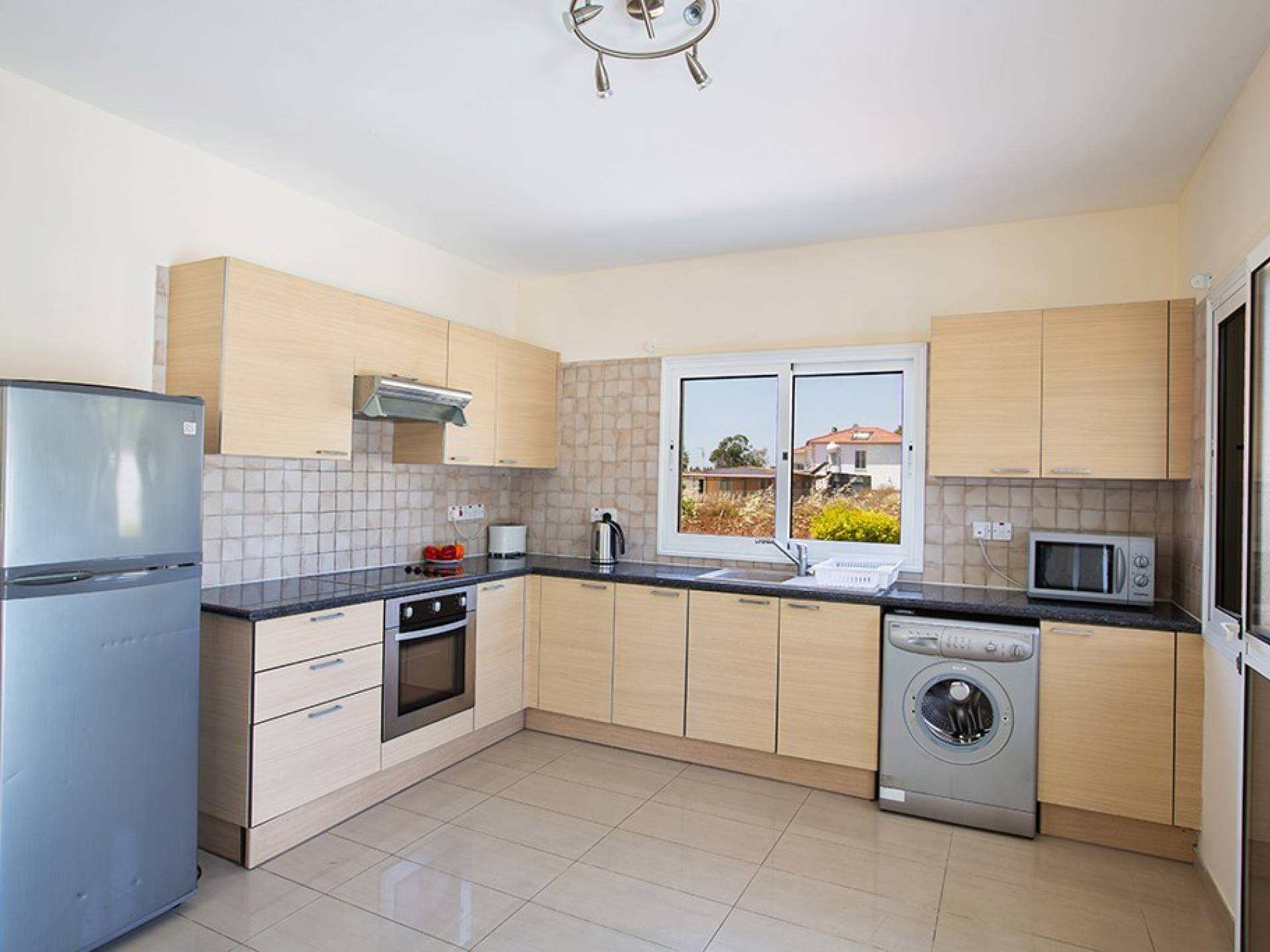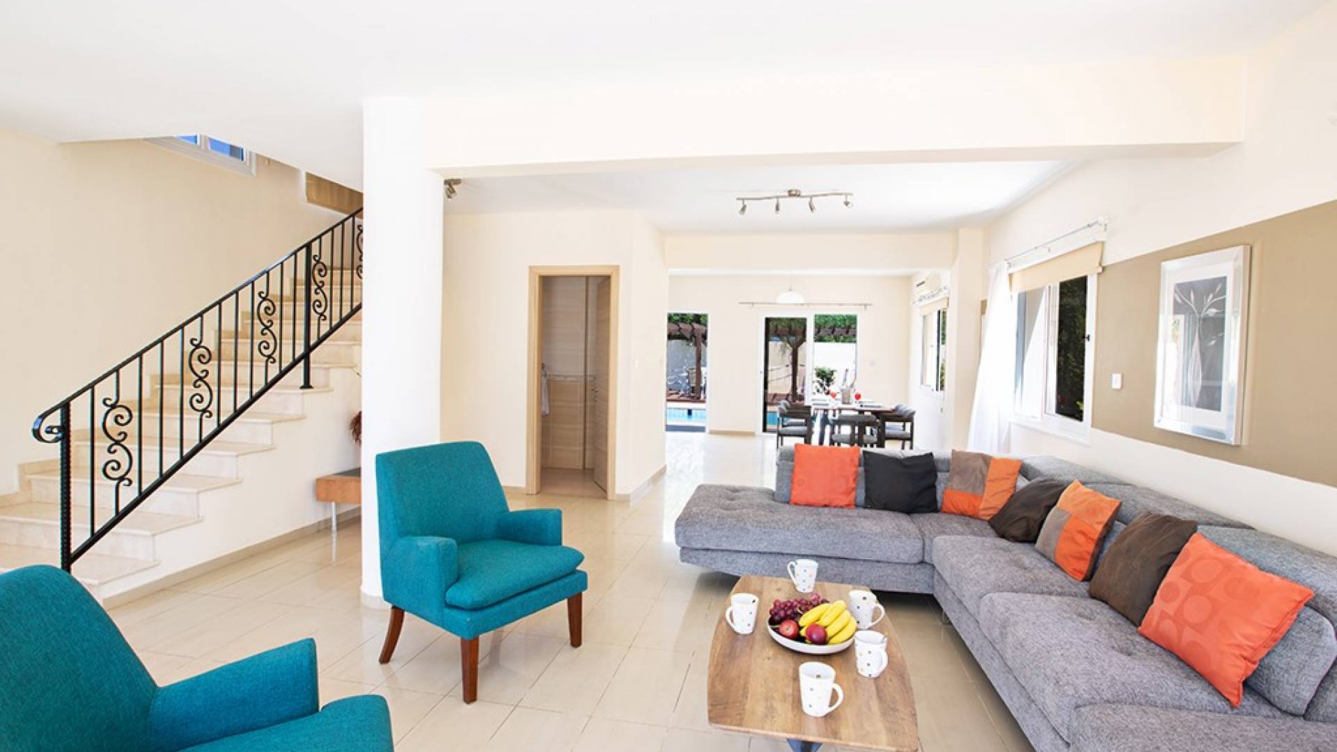 Modern and spacious, the villa is fully equipped with everything required for a relaxing stay. It features a comfortable open-plan living area, dining area with seating for 6 persons and a fitted kitchen with modern appliances. There is also a downstairs W/C.
