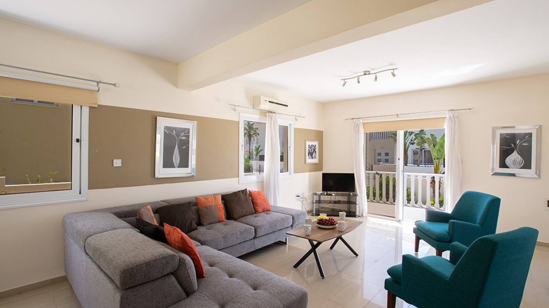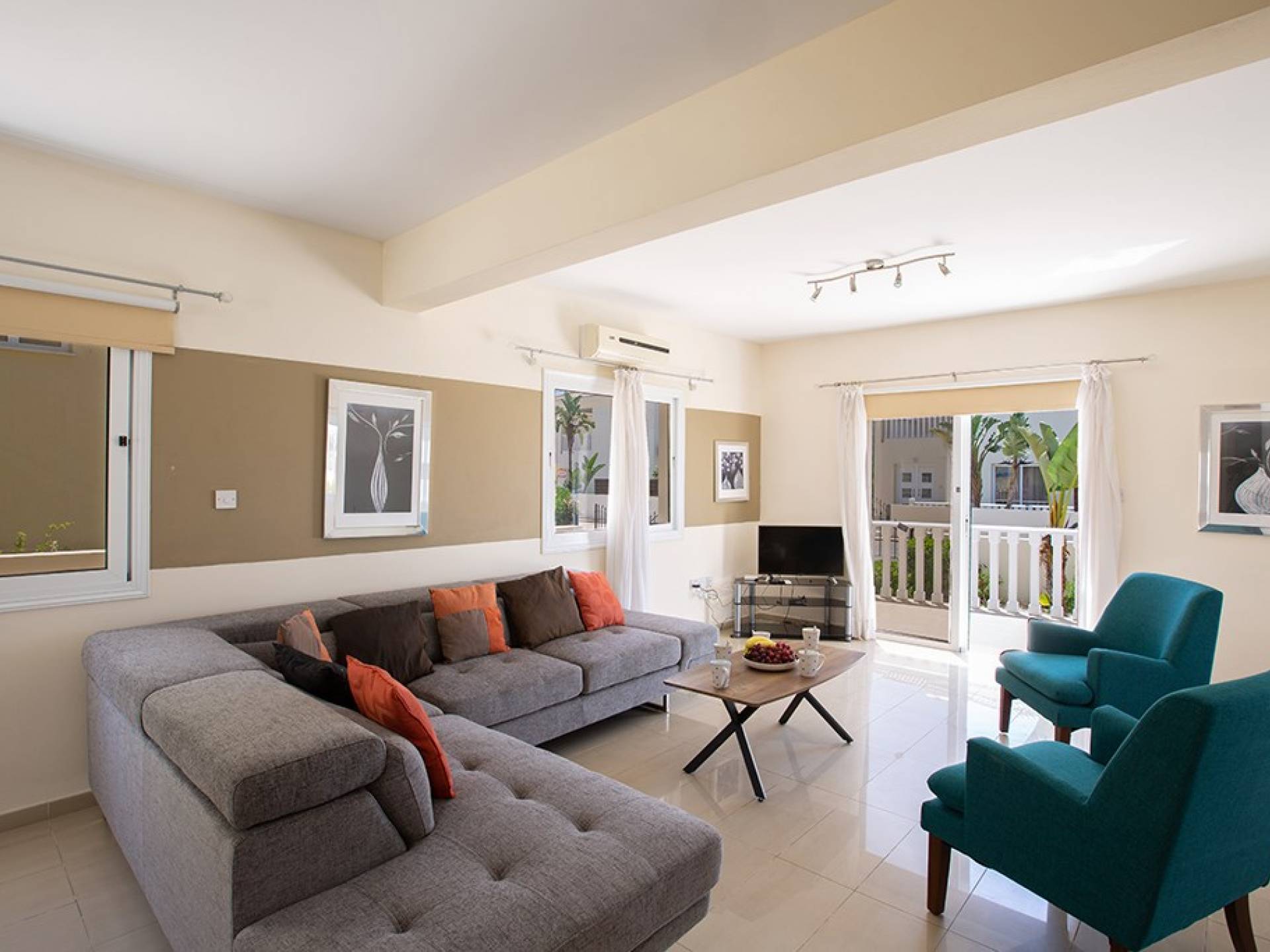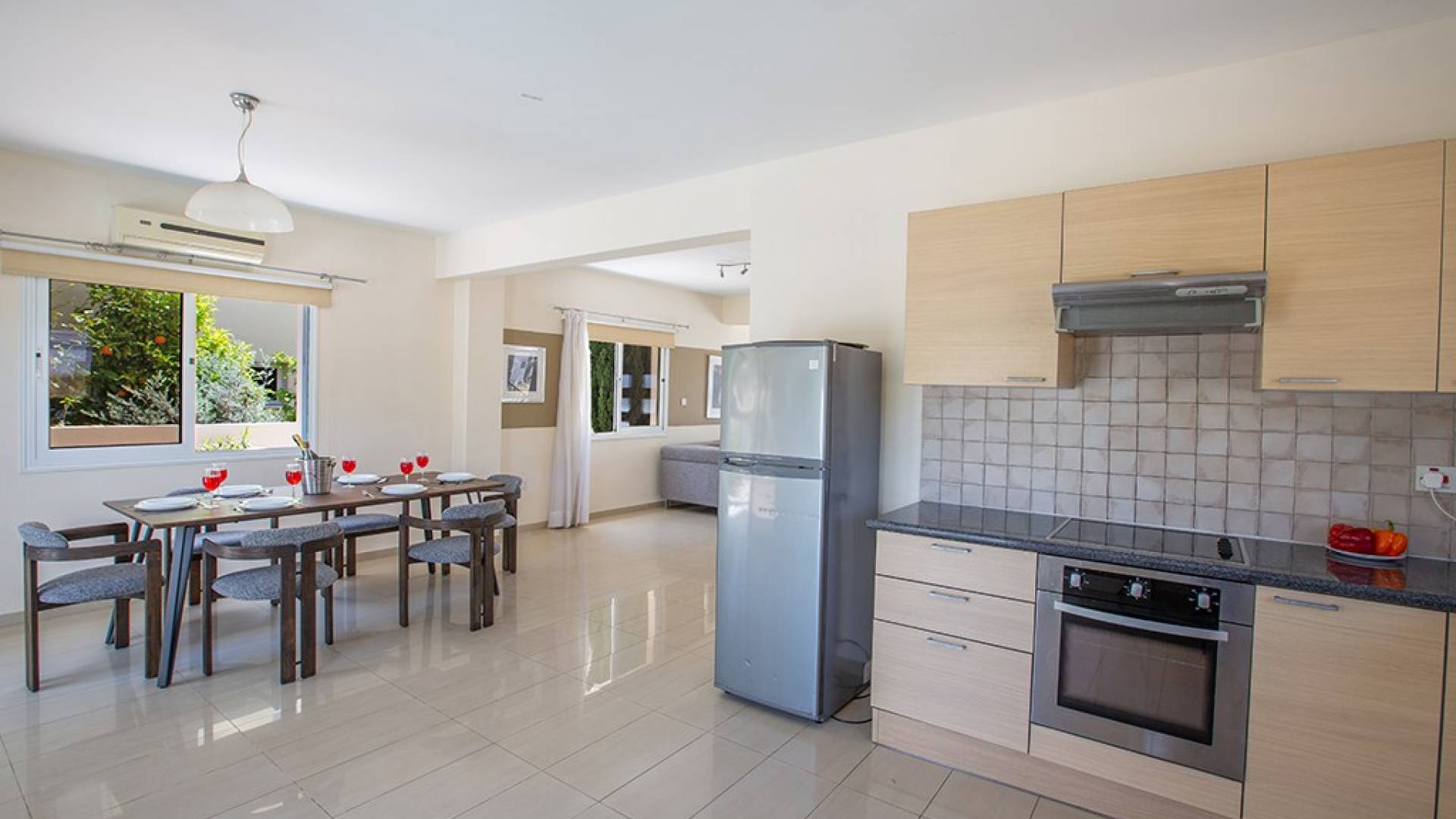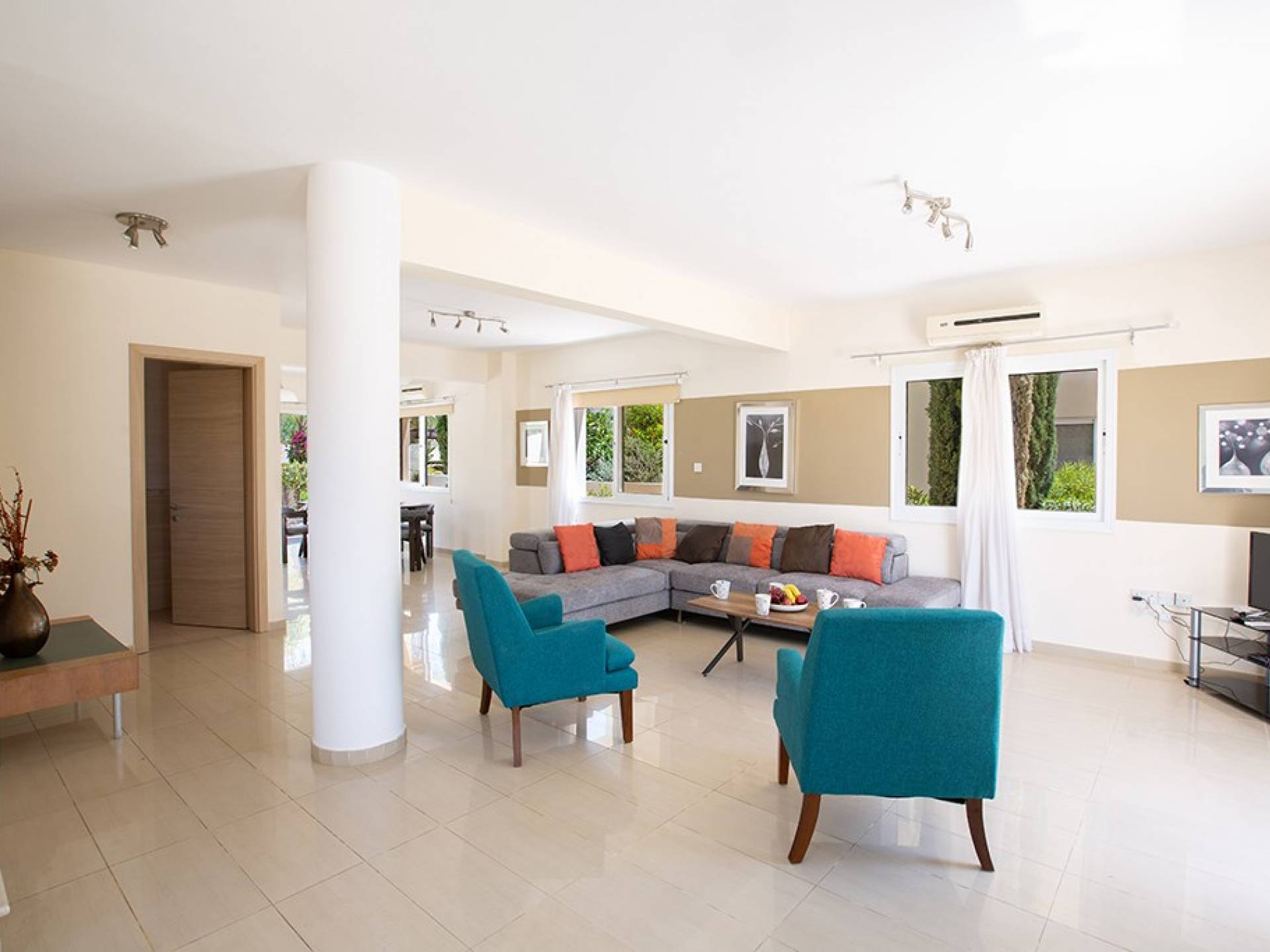 Modern and spacious, the villa is fully equipped with everything required for a relaxing stay. It features a comfortable open-plan living area, dining area with seating for 6 persons and a fitted kitchen with modern appliances. There is also a downstairs W/C.