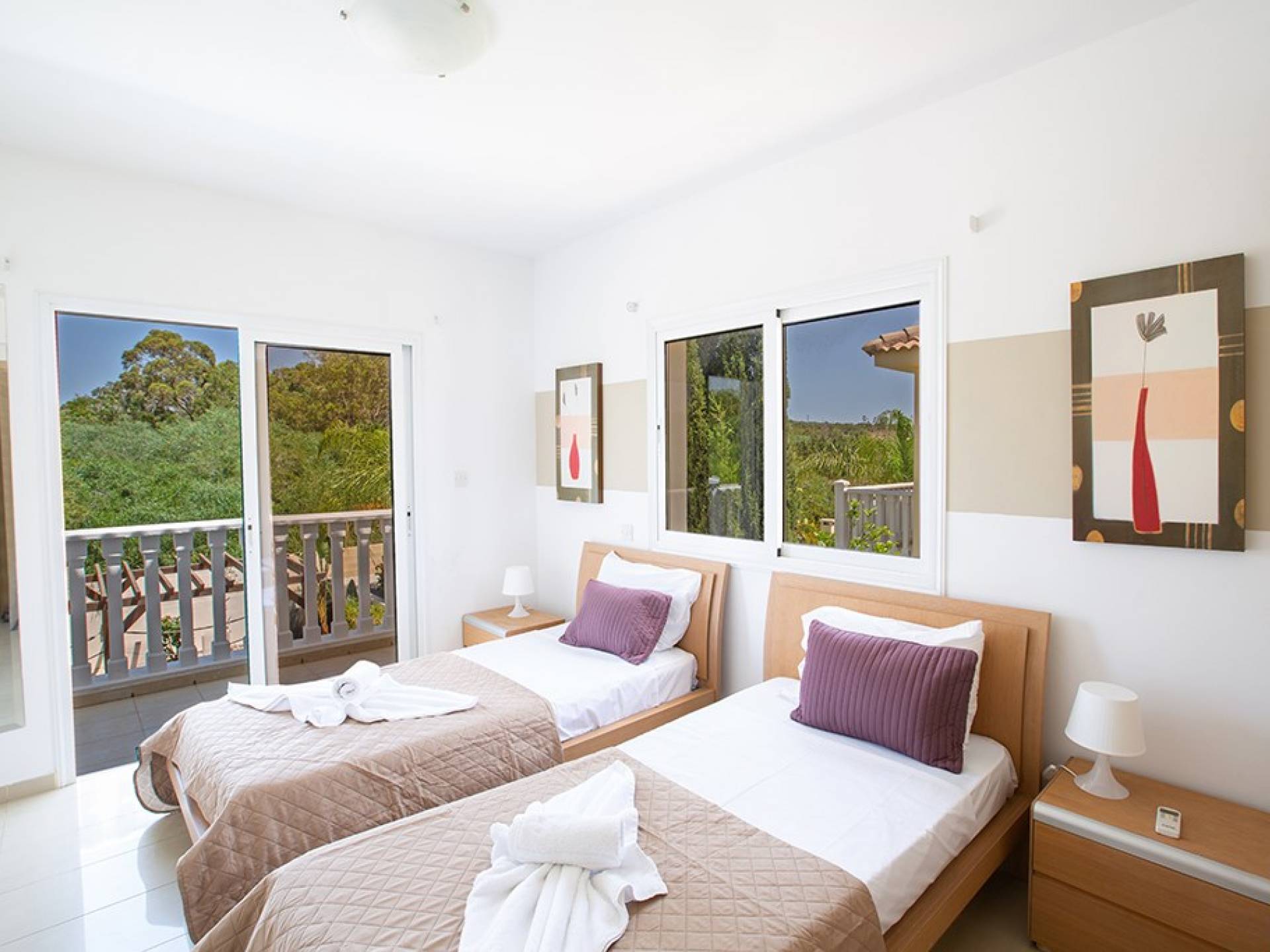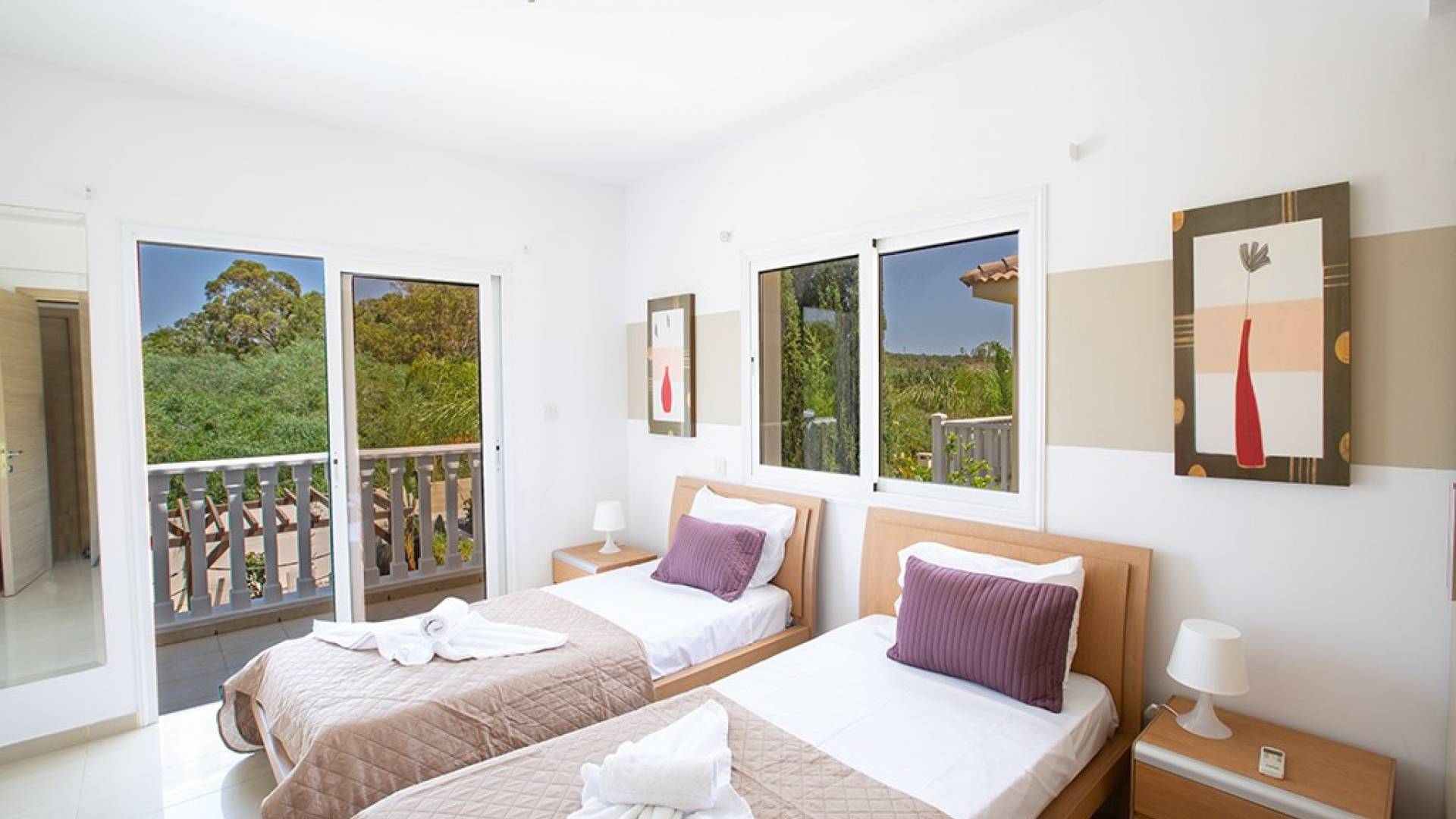 Upstairs, the villa has a large master bedroom with an en-suite bathroom with shower and large balcony, there are also two twin bedroom all with balcony access. A family bathroom with bathtub and overhead shower in also located on this floor.