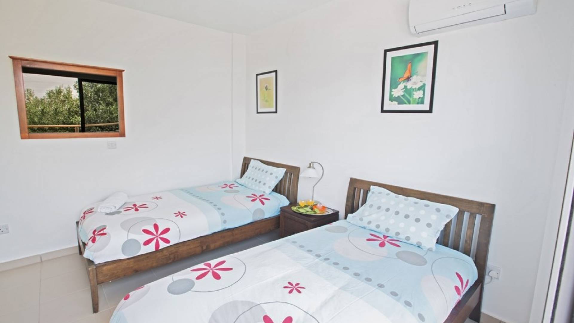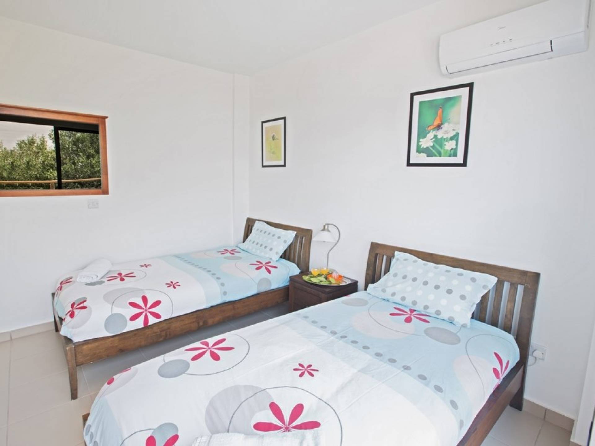 A marble staircase leads up to the first floor to a further two bedrooms, one twin and one double, and a family bathroom. There is also a spacious balcony area which is perfect for enjoying the late afternoon sun. Outside the villa, you will find a spacious and sunny garden area with an 8m x 4m private pool with plenty of space for sunbathing and outside dining and a variety of plants and trees. This villa is magnificent in every way and located in one of the most picturesque areas of Cyprus.