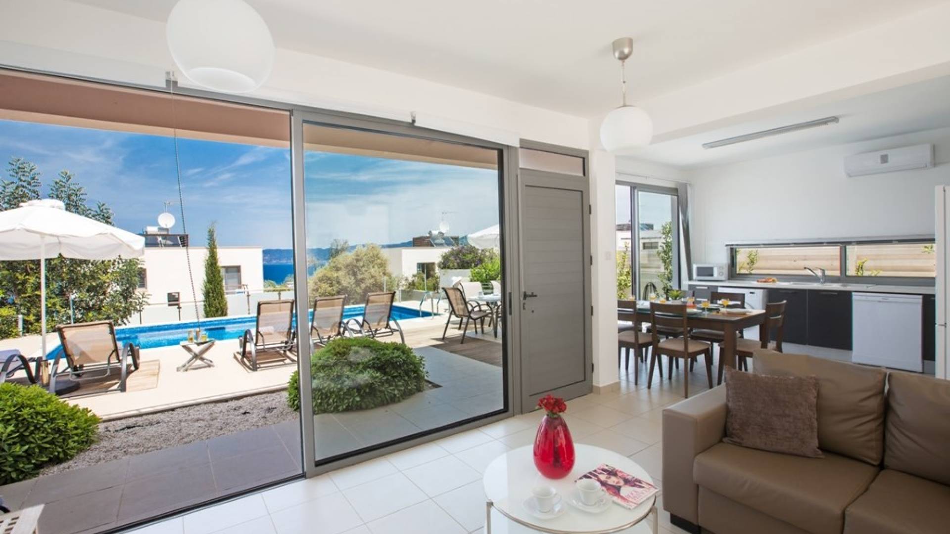 Villa Anemos Latchi is a luxury villa rental with 3 bedrooms and a private pool. Just arriving at this villa and seeing the magnificent views over Chrysochou Bay and Latchi Harbour will without a doubt put you in the mood to enjoy the holiday of a lifetime. The villa is located within the scenic setting of the Akamas Peninsula in Southern Cyprus, nestled on a sun-drenched hillside with breathtaking views. Take a deep breath and feel the ambiance of this amazing villa as soon as you step inside.