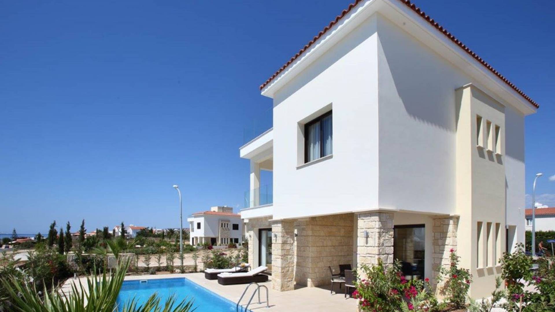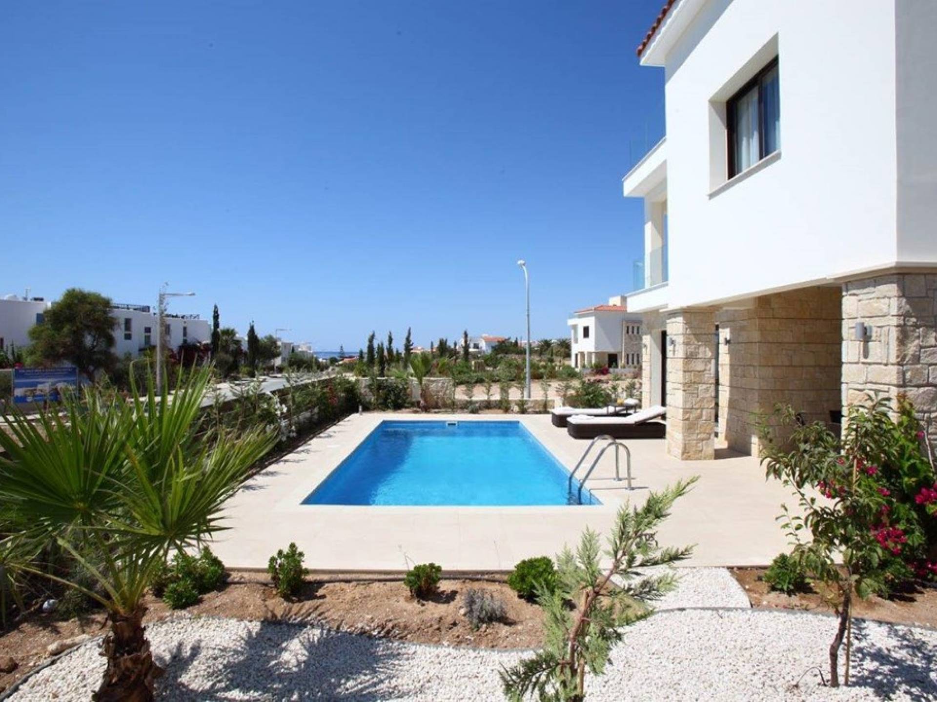 Golden Villa 8 Paphos is a luxury villa rental with 3 bedrooms and a private pool. Golden villa 8 is a magnificent fully equipped self-catering villa located in Paphos seaside. From the moment you walk into this luxury villa, you will notice the great attention to detail that awaits you at every turn. Walking distance to the beach and close to local amenities. The villa offers a Mediterranean Sea view.
