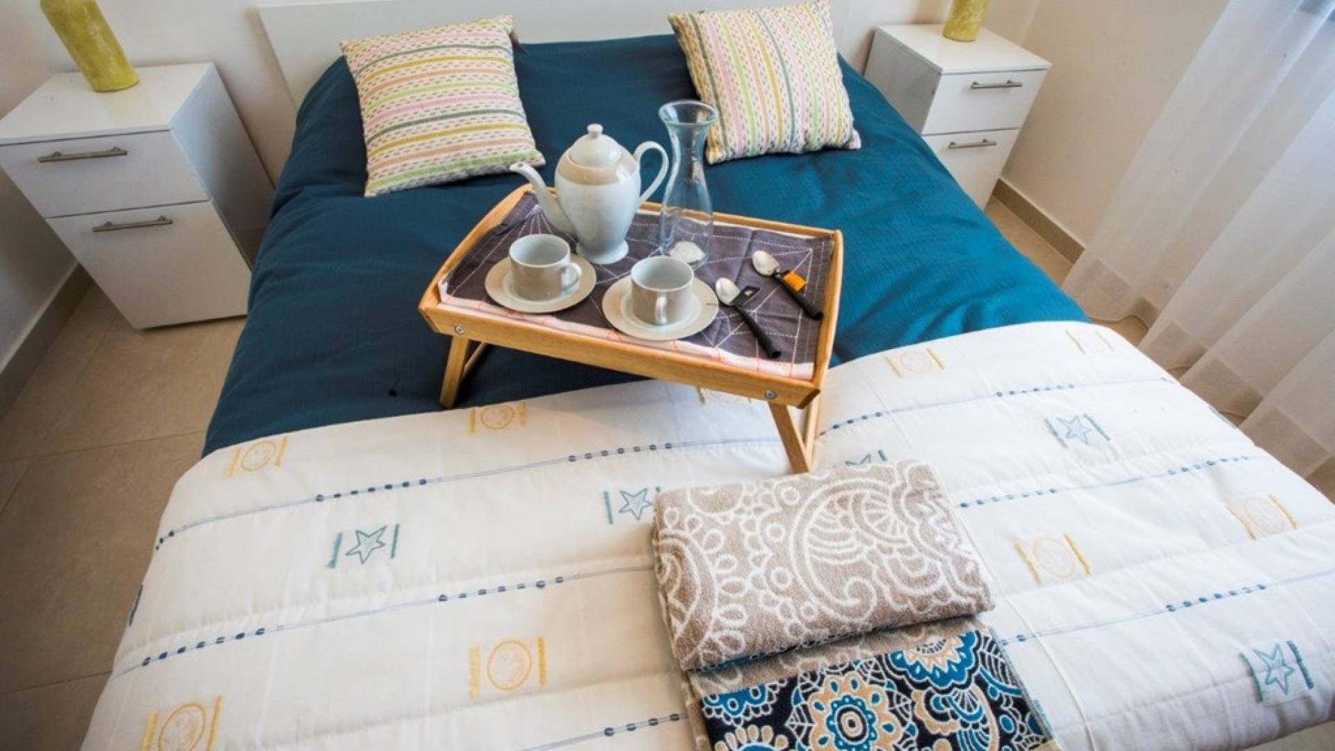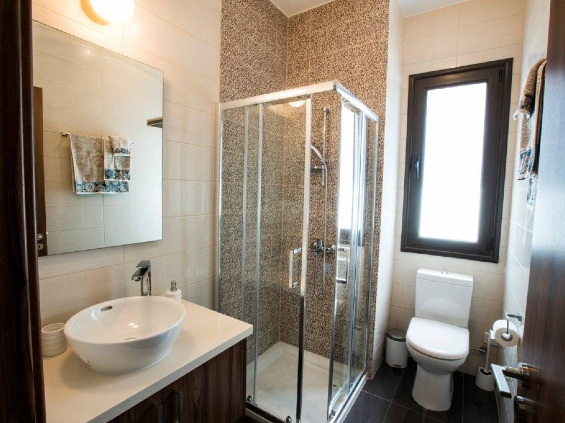 A private swimming pool surrounded by a sunbathing patio equipped with sunbeds, umbrellas, tables & chairs. The perfect place for spending warm summer days. A barbecue is provided for summer dining al fresco on those warm summer evenings. Olivia Villa 63 also offers a spacious roof garden with views overlooking the Mediterranean. A glass of wine is a must here, in order for you to enjoy the view and the Cyprus sun or sunset.