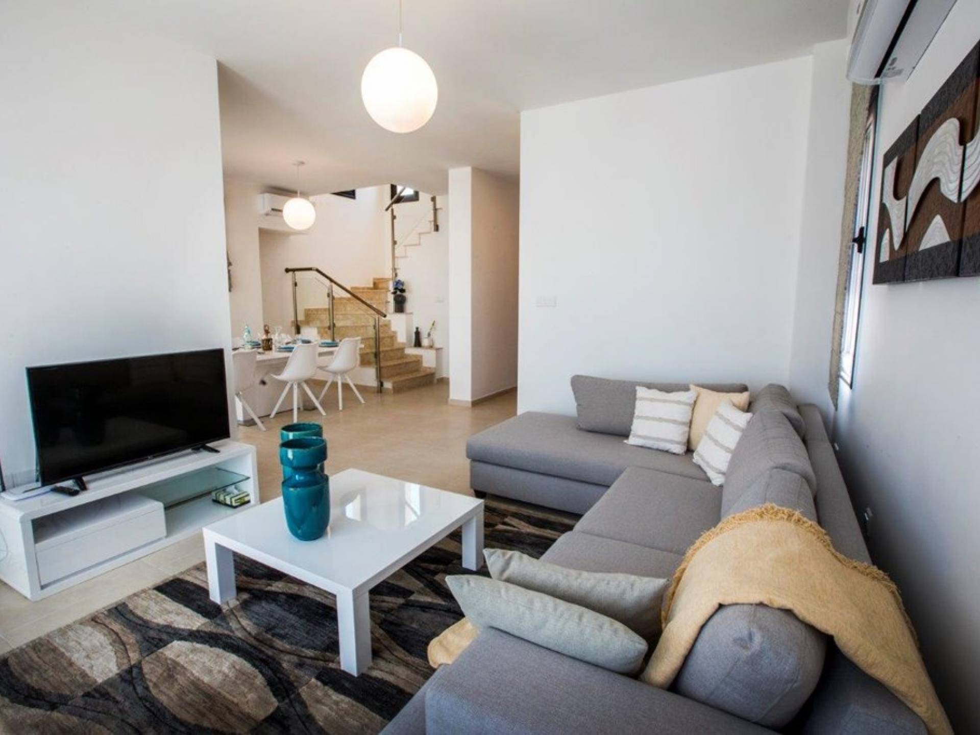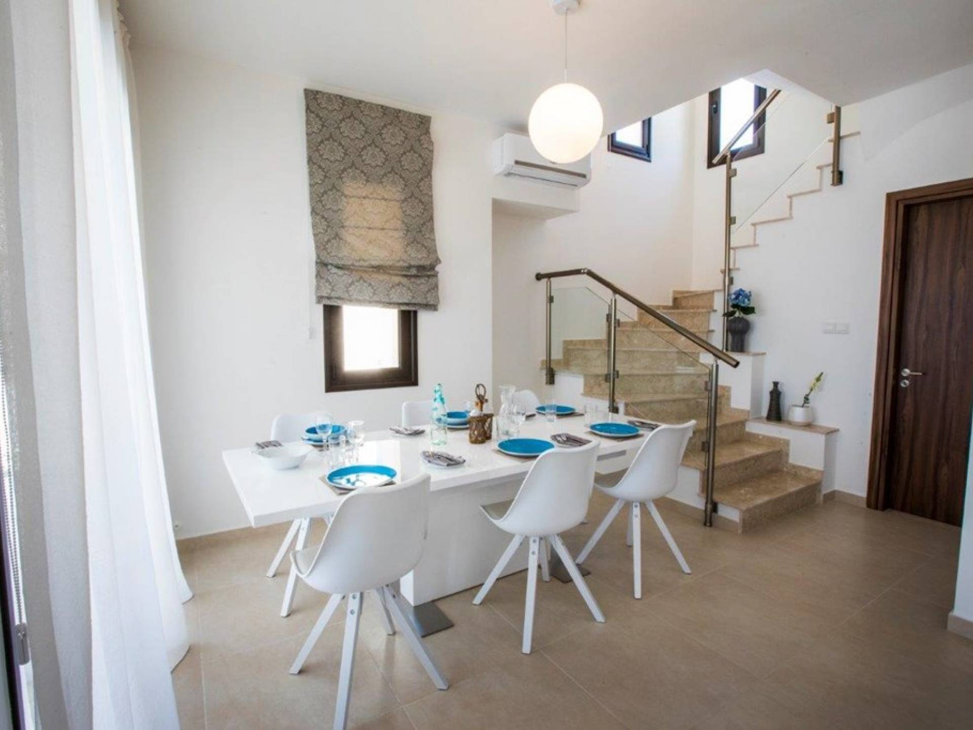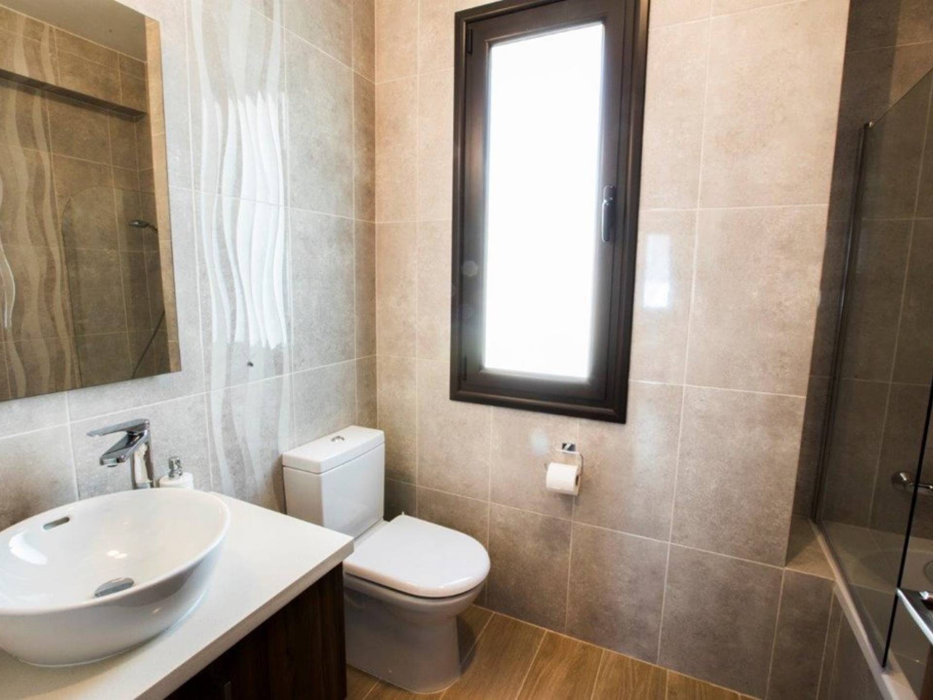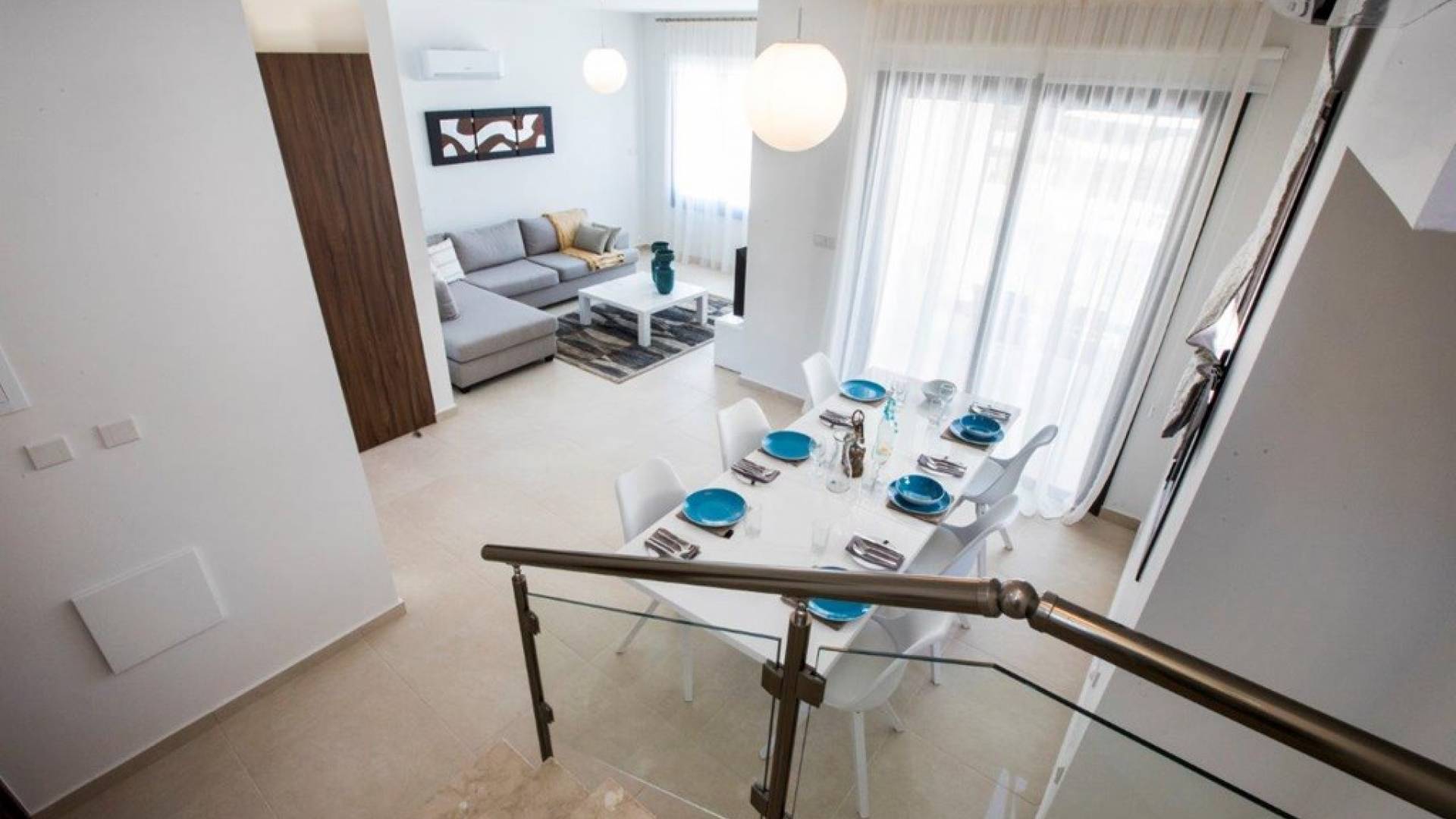 Upon entering the villa you will find on the ground floor a modern furnished open plan dining and living area, with a corner sofa and a flat-screen with an Android box with unlimited channels and movies for your entertainment. Free wi-fi all over the villa. The modern kitchen is equipped with a fridge/freezer, electric oven, 4 ring hob, kettle, toaster, microwave, and a washing machine. Further on the ground floor, you will find a separate WC.