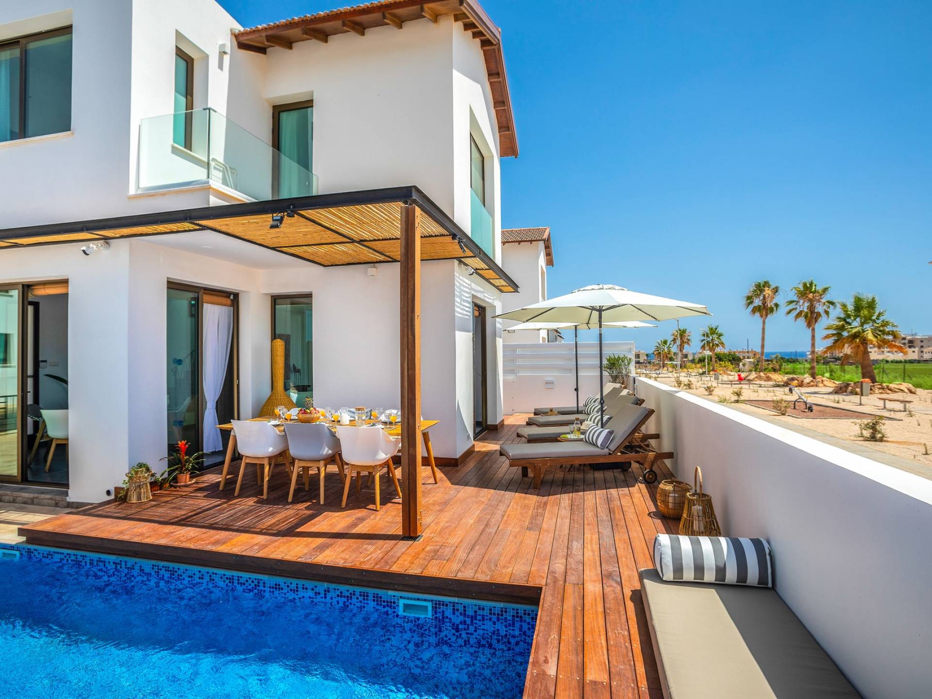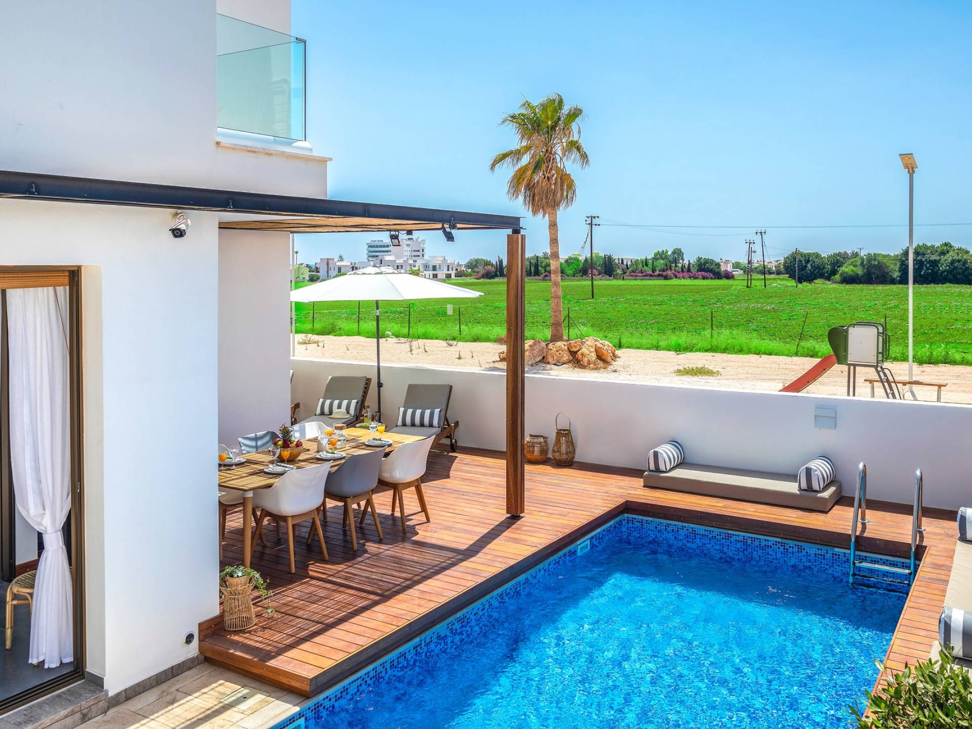 Le Mare Villa Protaras is located in the Levanda Villas Complex in Protaras and offers a private swimming pool, a living room, a fully equipped kitchen, and an outdoor patio with a dining table, sunbeds, and umbrellas. The guests of Louis Chris Le Mare can use the free facilities of Louis St Elias Resort & Waterpark, such as waterslides, outdoor jacuzzi for adults only, kids pool, outdoor pool, kids club, and gym.