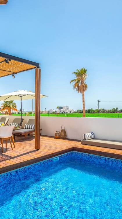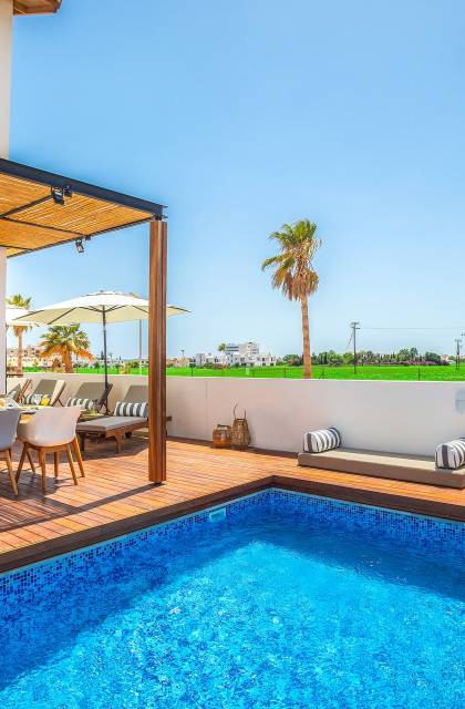 Color blue, sun and luxury, nothing can beat this combination. What else is there to ask for your vacation? Indulge yourself in a heated private pool in the coziness of your own villa, either an indoor or outdoor one. The water is healing and therapeutic…