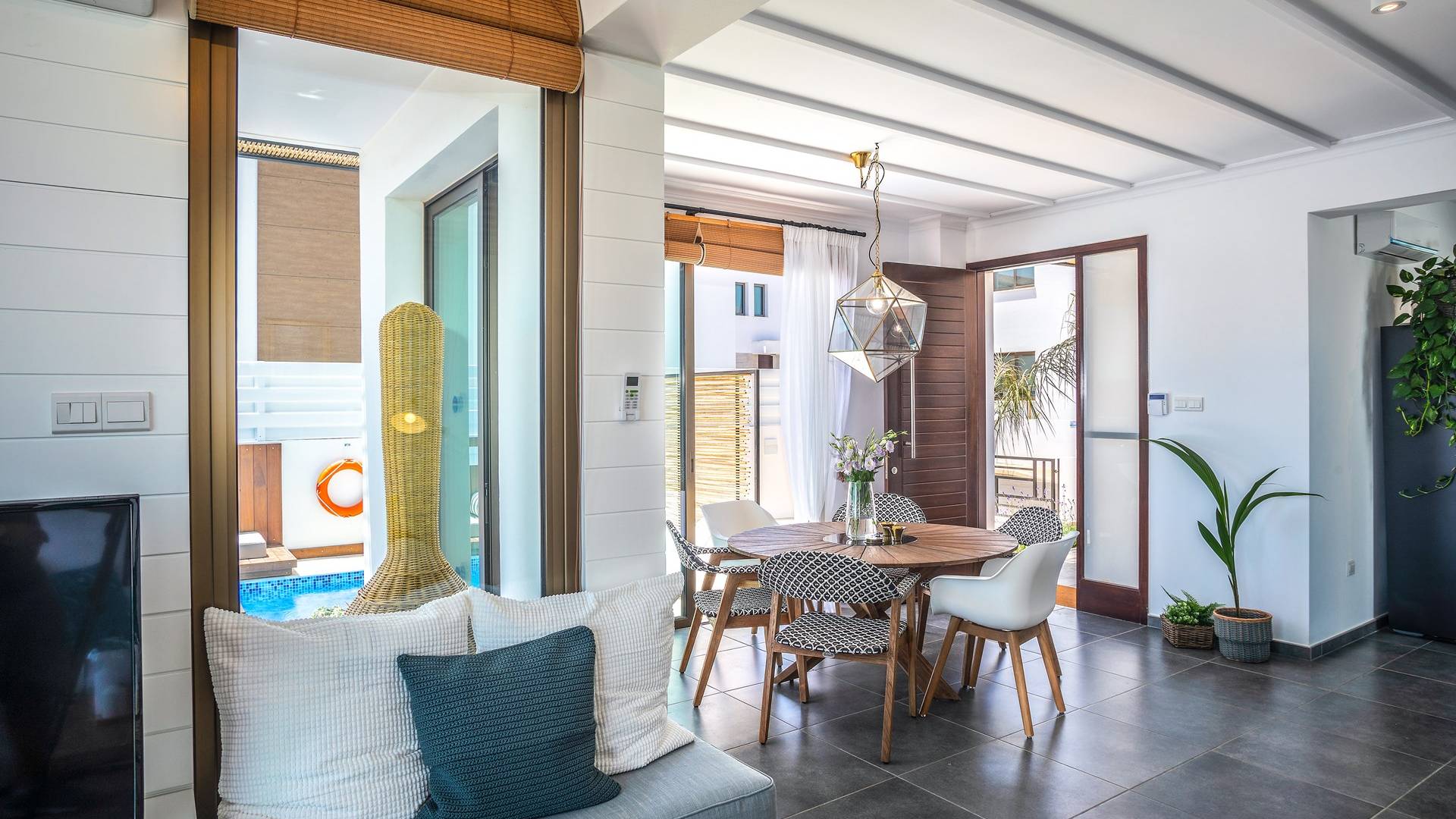 Protaras is within walking distance while everything that the bustling resort town of Ayia Napa has to offer is no more than 15 minutes drive away. Thanks to the proximity of the modern highway network, the villa also connects easily with Larnaca International Airport which is only 54km away and less than an hour’s drive.