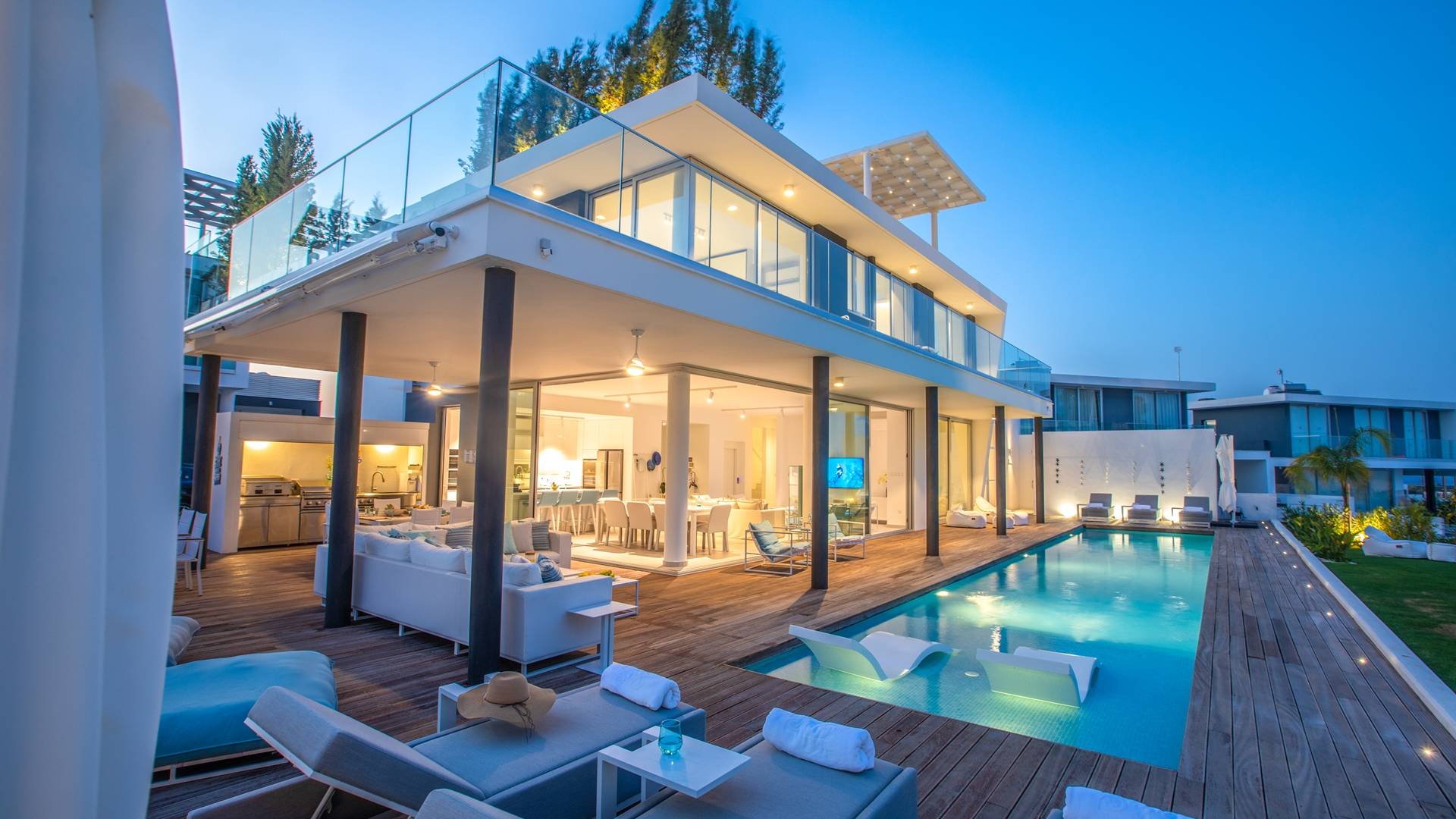 Outside, the vast garden with modern decking and beautiful landscaping offers a barbecue, two outside dining areas, a comfortable corner sofa, sun-loungers and a large private pool, perfect for long days basking in the Cyprus sun and basking in the lavishness of it all This affluent, one-of-a-kind, 5* villa is exquisite in every way, offering nothing but luxury, extravagance, comfort, and tranquility