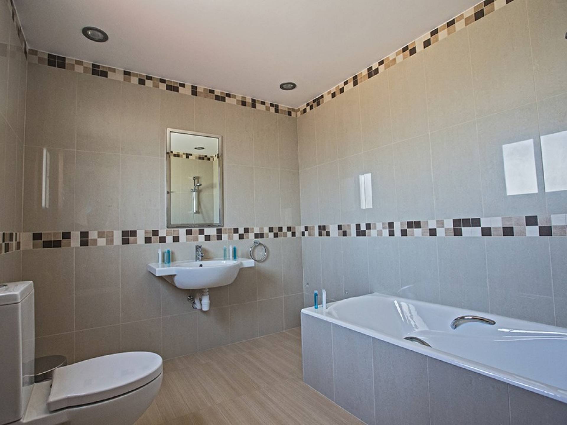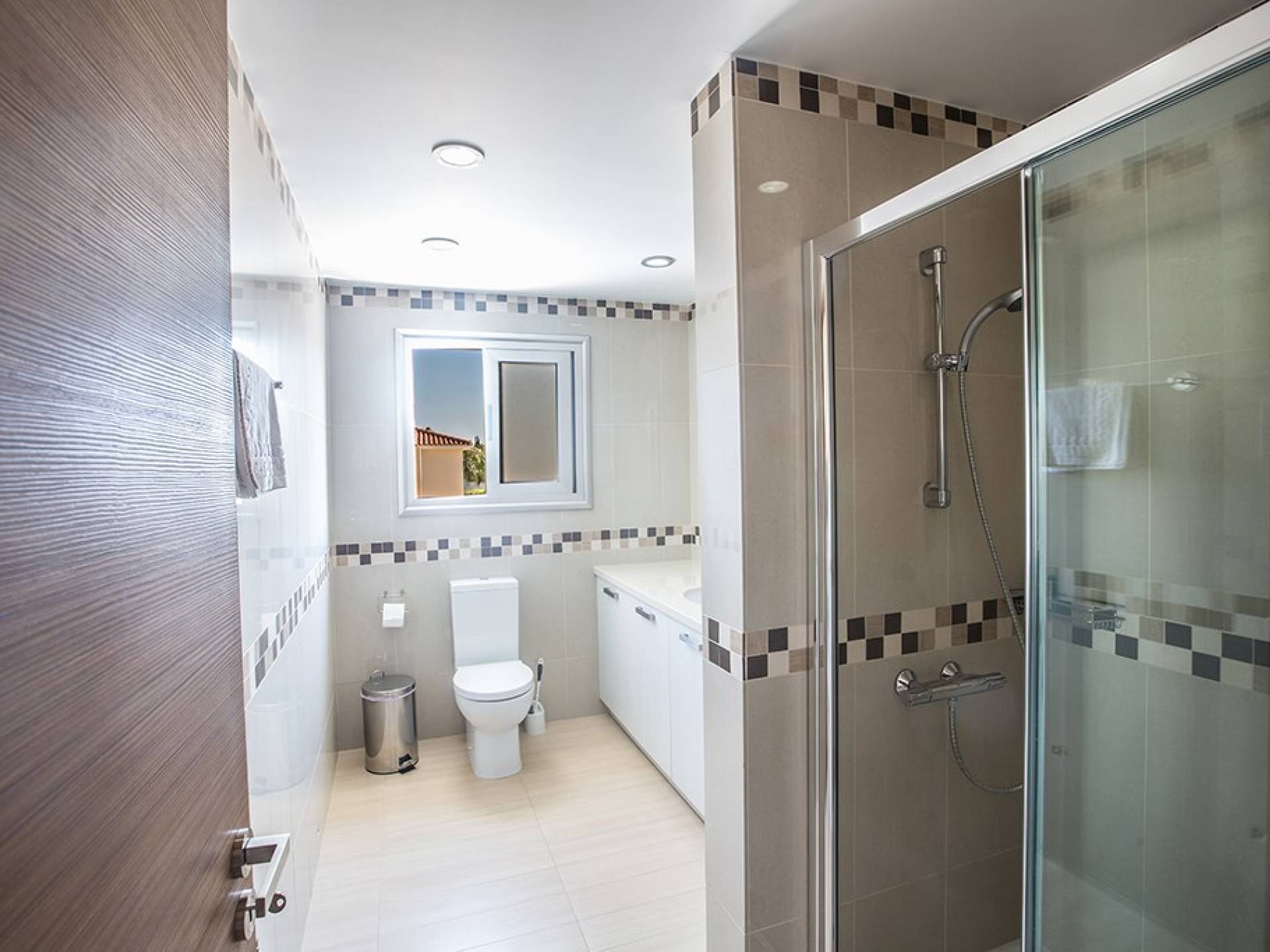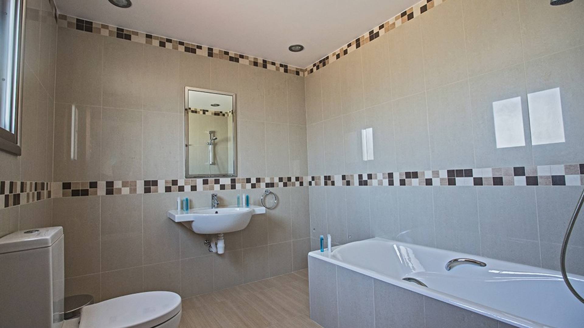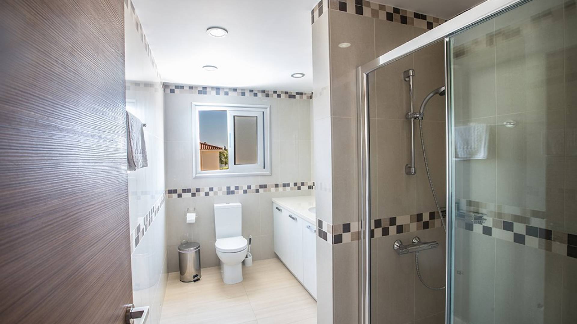 Upstairs, there are 4 spacious bedrooms, 2 with double beds and 2 with twin beds. Each bedroom has fitted wardrobes and bedside tables. There is a family bathroom with bath tub and overhead shower, along with a separate shower and toilet room. A spacious outside balcony area offers sea views.