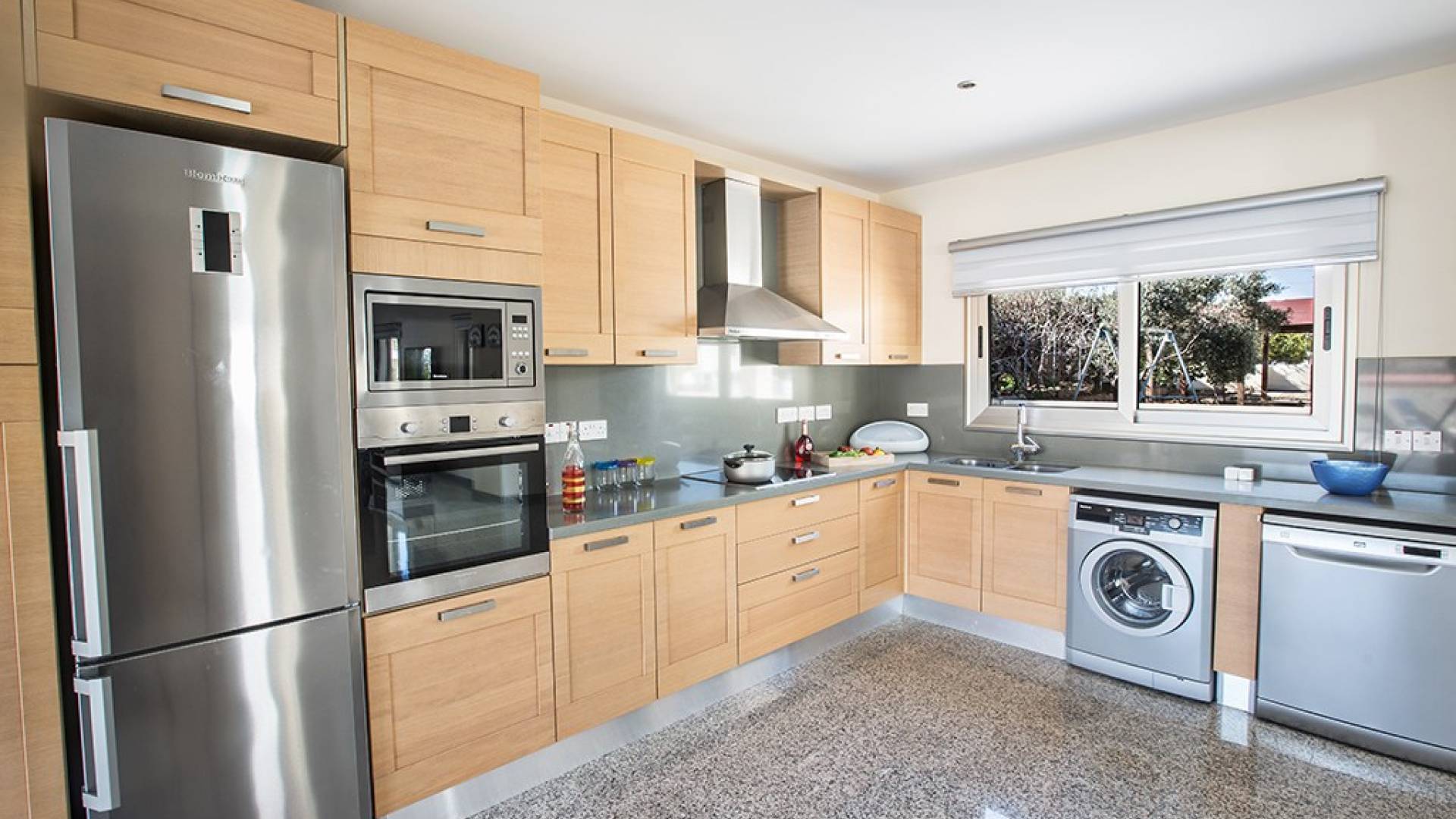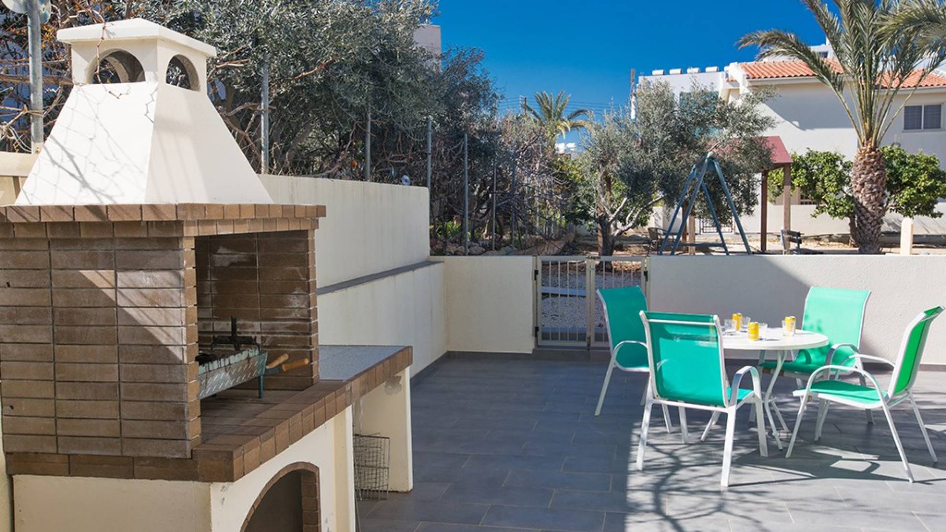 Inside, the villa is nicely furnished with modern decor. There is an open-plan sitting area, dining table and chairs and a fully equipped kitchen on the ground floor. There is also a W/C.