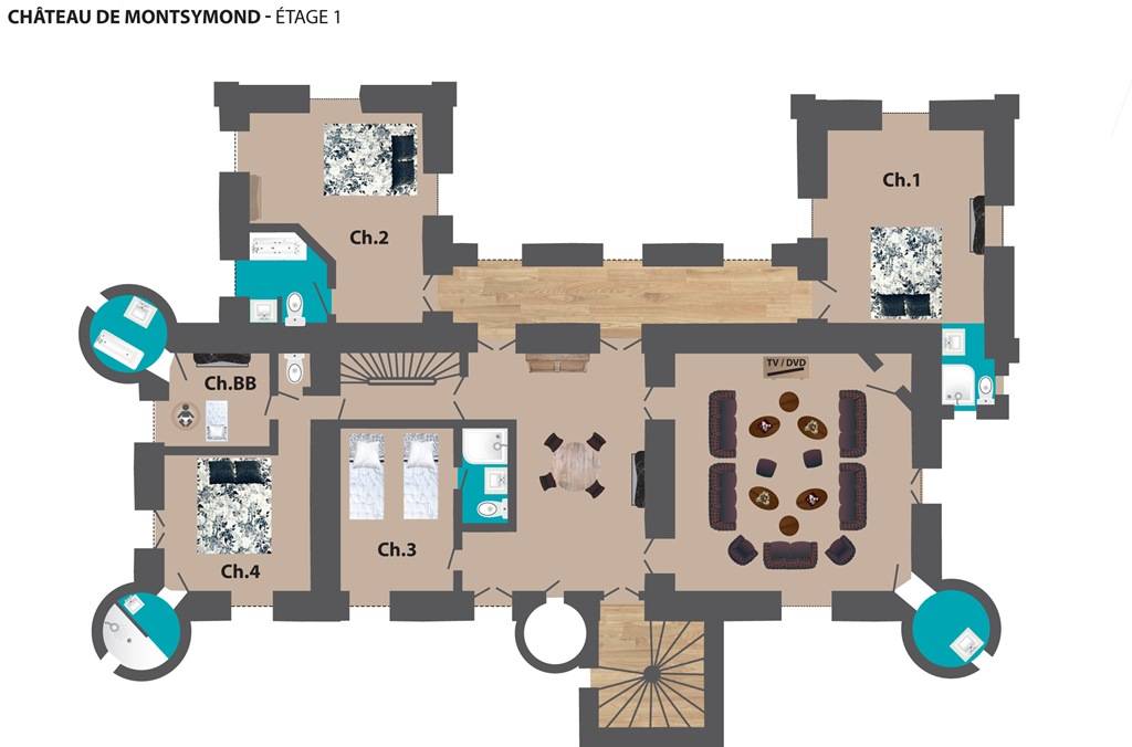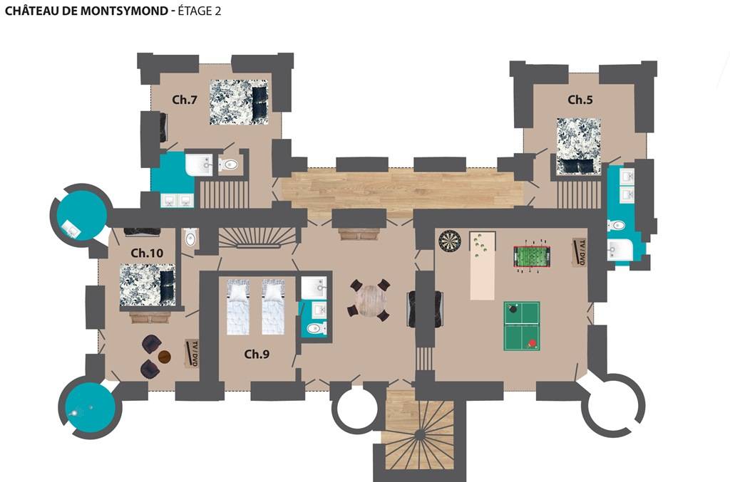 Chateau de Montsymond is a luxury holiday rental with 10 bedrooms and a private pool. Chateau de Montsymond built-in 1571, a 1000m2 area, enjoys an exceptional location in the heart of Southern Burgundy. The medieval city of "Romenay" is only 3 minutes away and offers all amenities. Tournus, the capital of gastronomy in Burgundy with its Michelin starred restaurants 4 is only 15 minutes. With a privileged location in the middle of the countryside, surrounded by fields and small lakes.