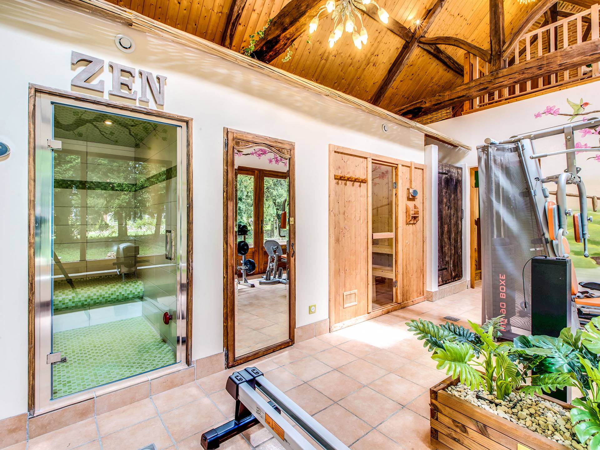 The place is ideal for jogging, walking and cycling from the Castle. Chateau de Montsymond has 10 luxurious rooms and 10 bathrooms as well as a child's room. The huge well-equipped kitchen overlooks the pool deck and promotes conviviality. The dependence offers a complete wellness area with a gym (weight training and cardio) sauna and steam room and a massage room (a local masseuse offers its services locally). Chateau de Montsymond is located in the heart of a beautiful 7-hectare park with its centuries-old trees, pond for fishing and heated pool. A large courtyard allows ten vehicles to park. The Chateau enjoys great privacy without any opposite.