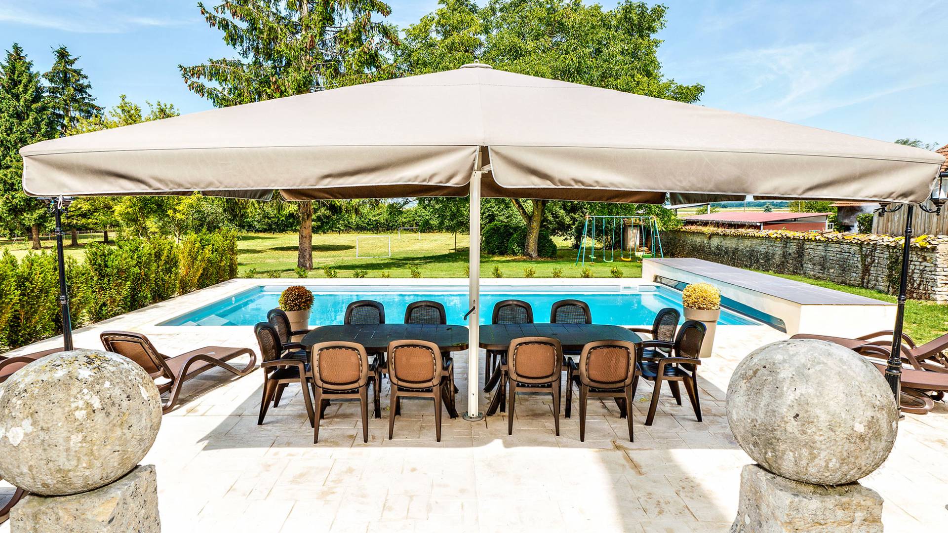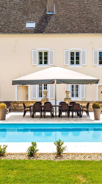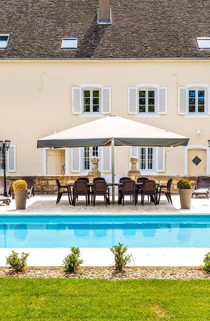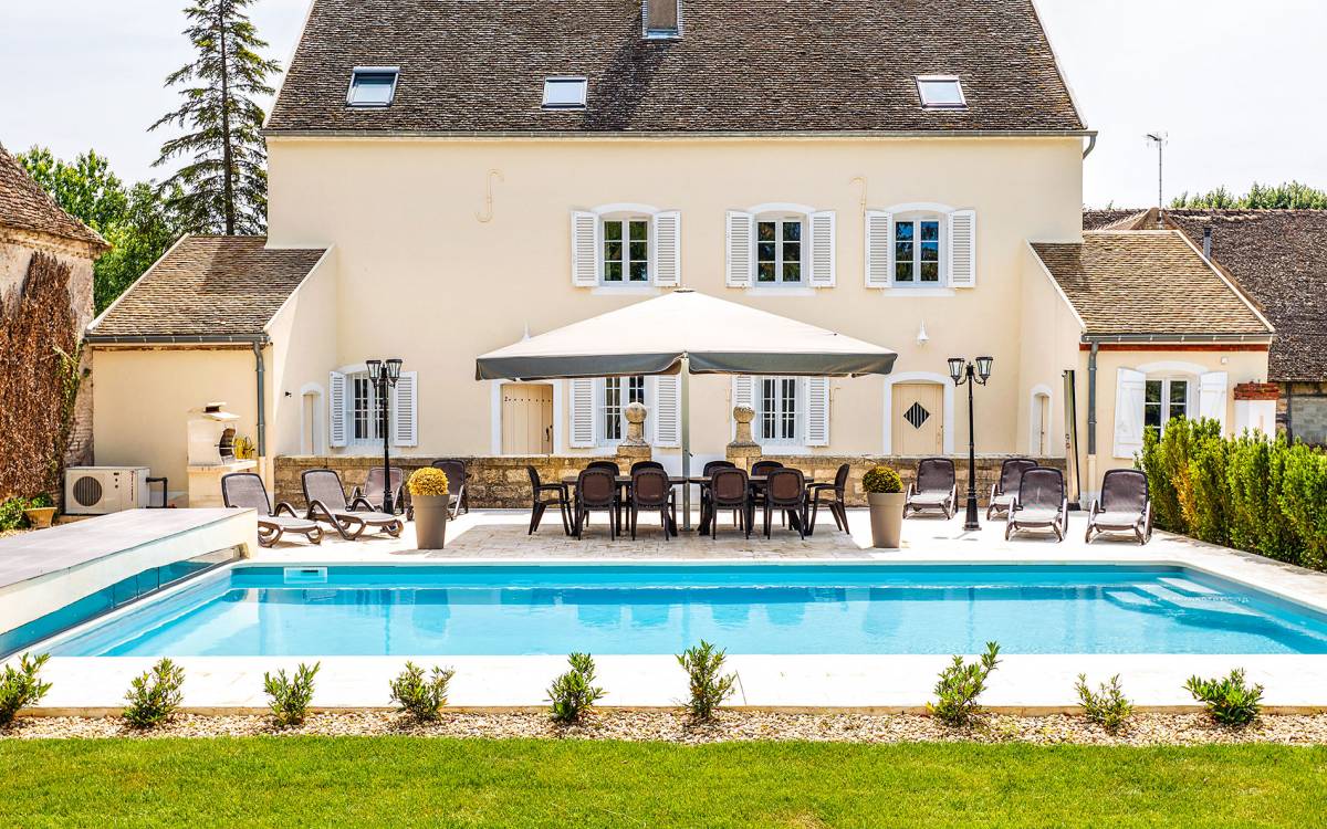 Villa Saunieres Burgundy is a luxury holiday rental with 6 bedrooms and a private pool. High-Class rental for 12 guests. This ancient villa from the 19th century and its dependency has a total living surface of 540m2. Villa Saunieres benefits from an exceptional location, in the heart of Southern Burgundy and at the doorstep of the Jura. It is located in the small village of Saunières, just a few meters from the river "Doubs", where fishermen will enjoy themselves... The small road along the river Doubs taking you to the Villa is a very "tranquil road", used by locals. There is no better place for those looking for a peaceful holiday with only birds songs as background music.