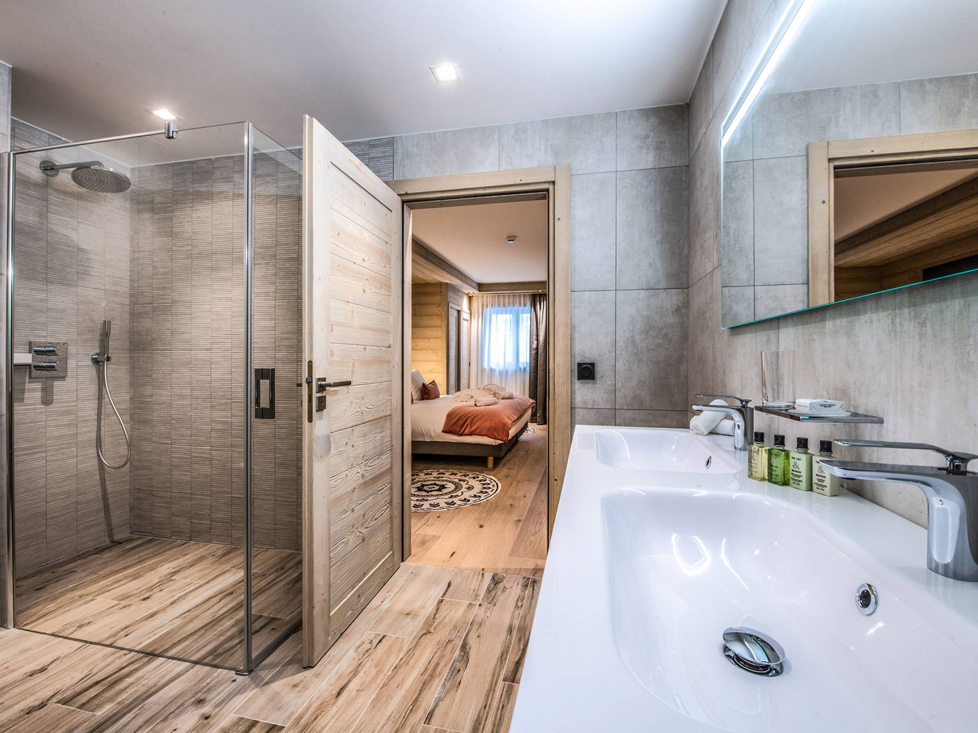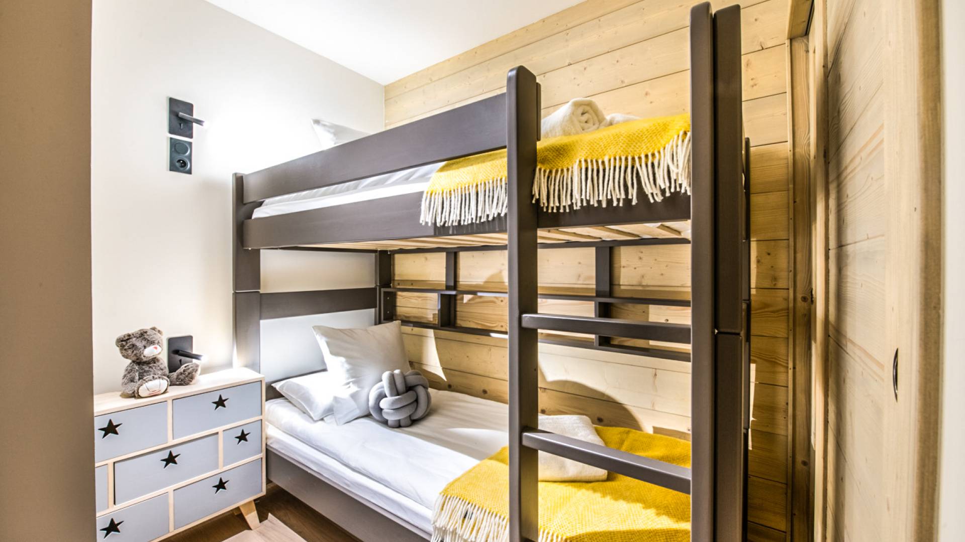 The Kula suite, located on the 2nd and 3rd floors of the Manali Lodge Residence, with a surface area of 175 sqm, is perfect to welcome up to 8 people with a maximum of 6 adults. This apartment has three bedrooms with a double bed, a bedroom cabin with a bunk bed and three bathrooms. The large living room with a TV has also a fully equipped kitchen, a balcony furnished with a hot tub with a view over the ski slopes. During your holidays, you can benefit from a parking space in the private car park, a ski locker and Wi-Fi access.