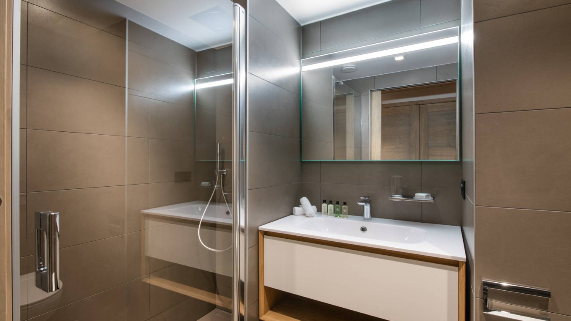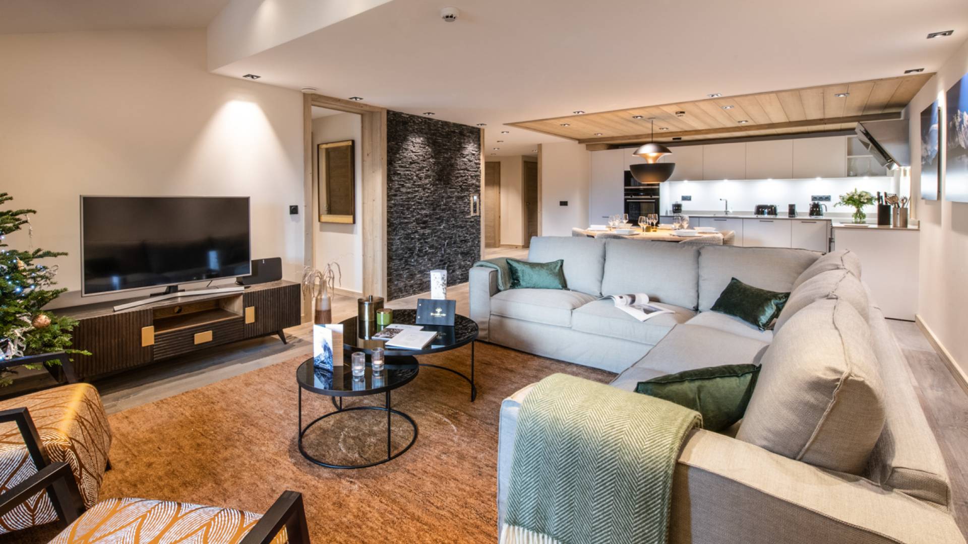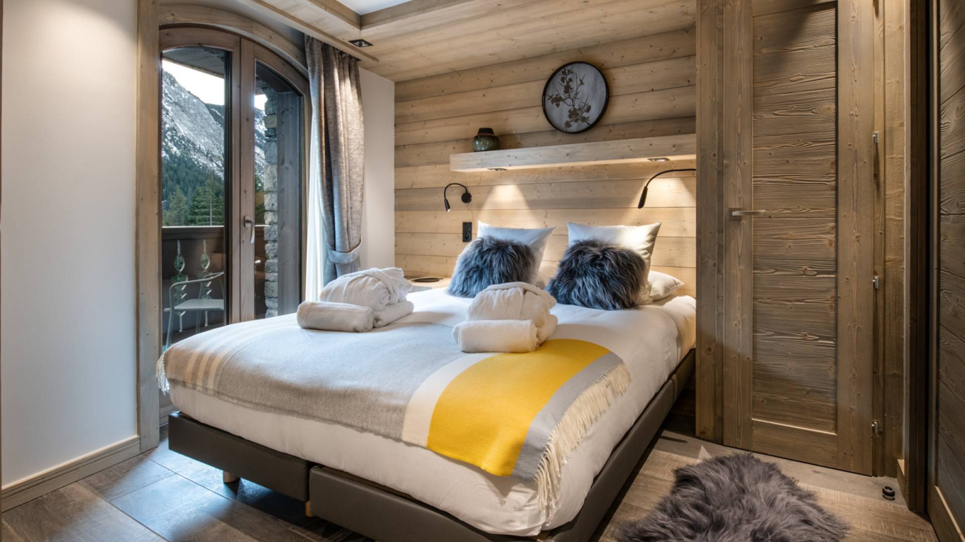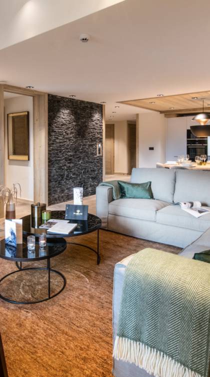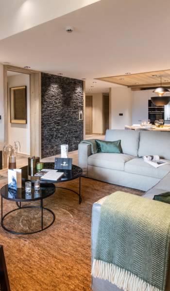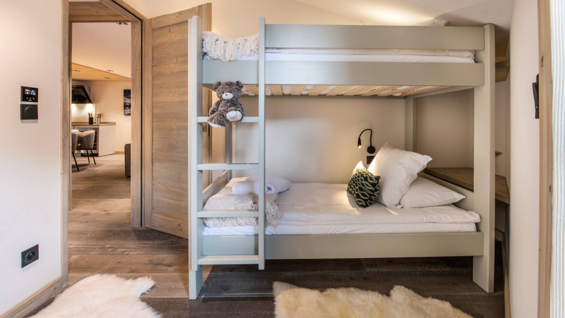 The Nagadi suite, located on the 4th floor of the Manali Lodge Courchevel 1650, with a surface area of 98 sqm, is perfect to welcome up to 6 people with a maximum of 4 adults. This suite has two bedrooms with a double bed, a bedroom cabin with a bunk bed and two bathrooms. The living room with a TV has also a fully equipped kitchen and a balcony with a view over the mountains. During your holidays, you can benefit from a parking space in the private car park, a ski locker and Wi-Fi access.