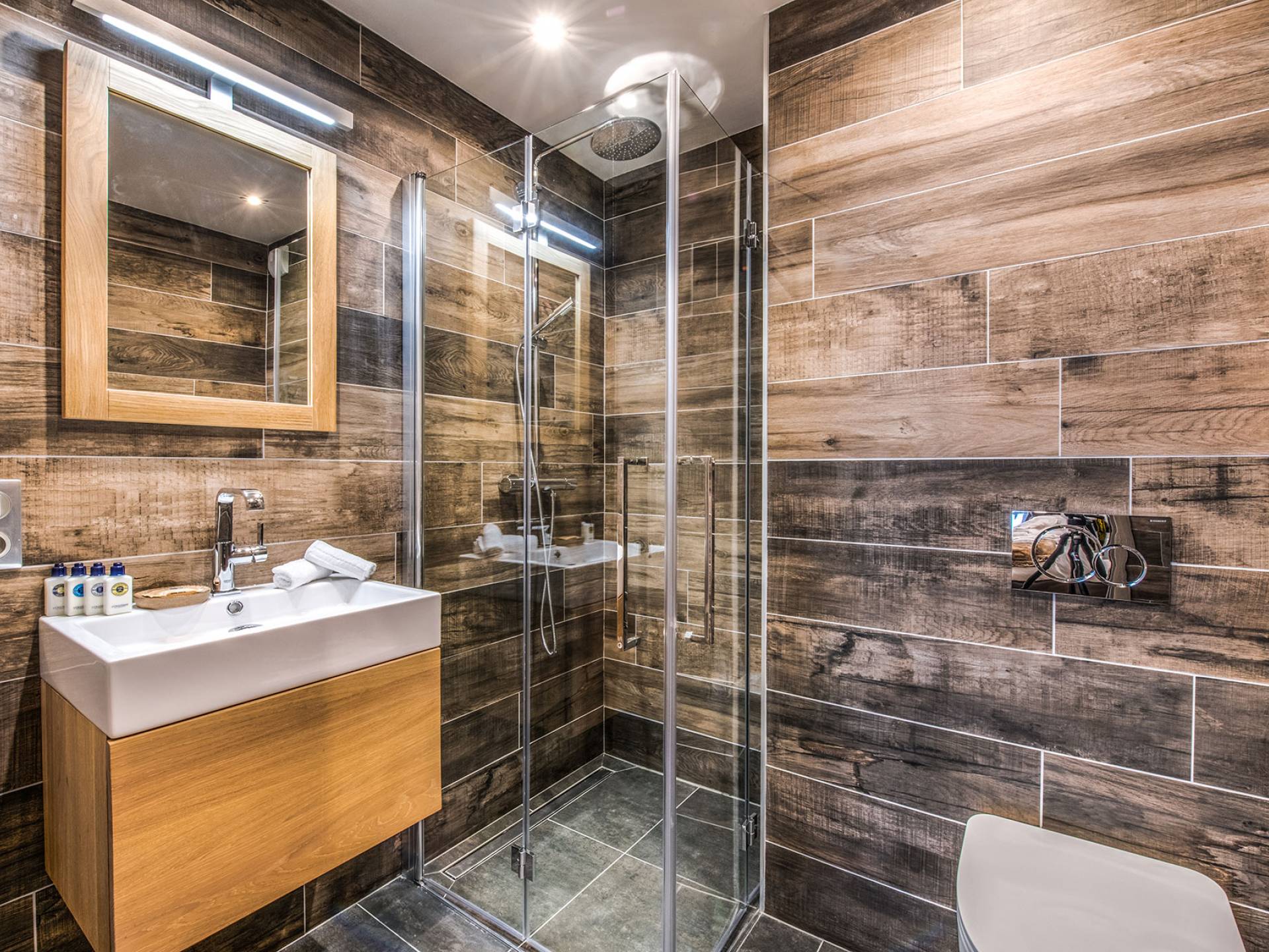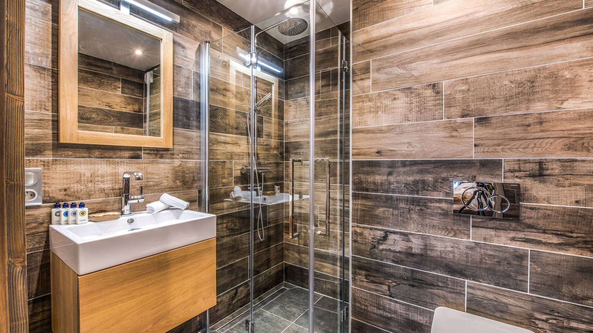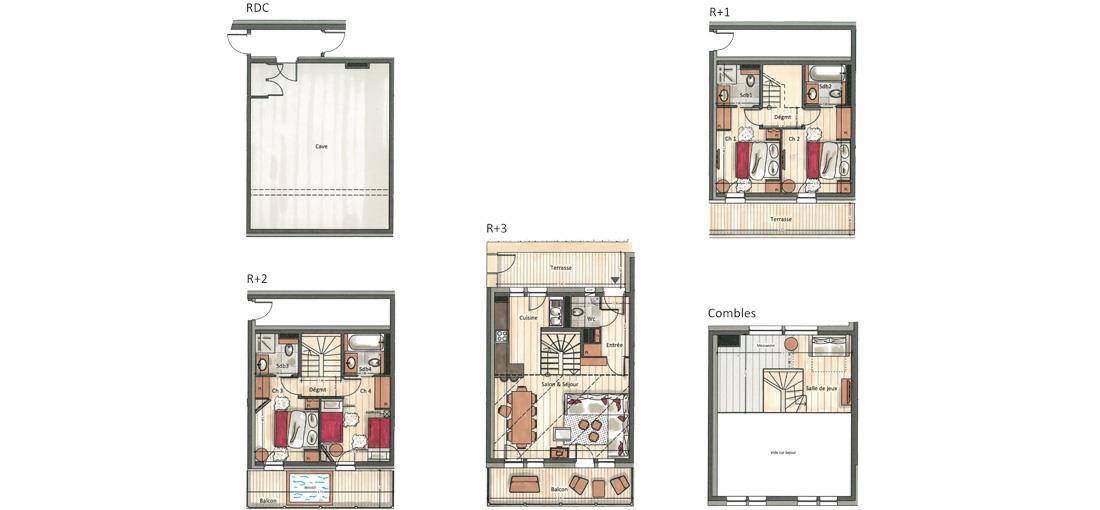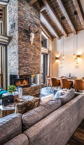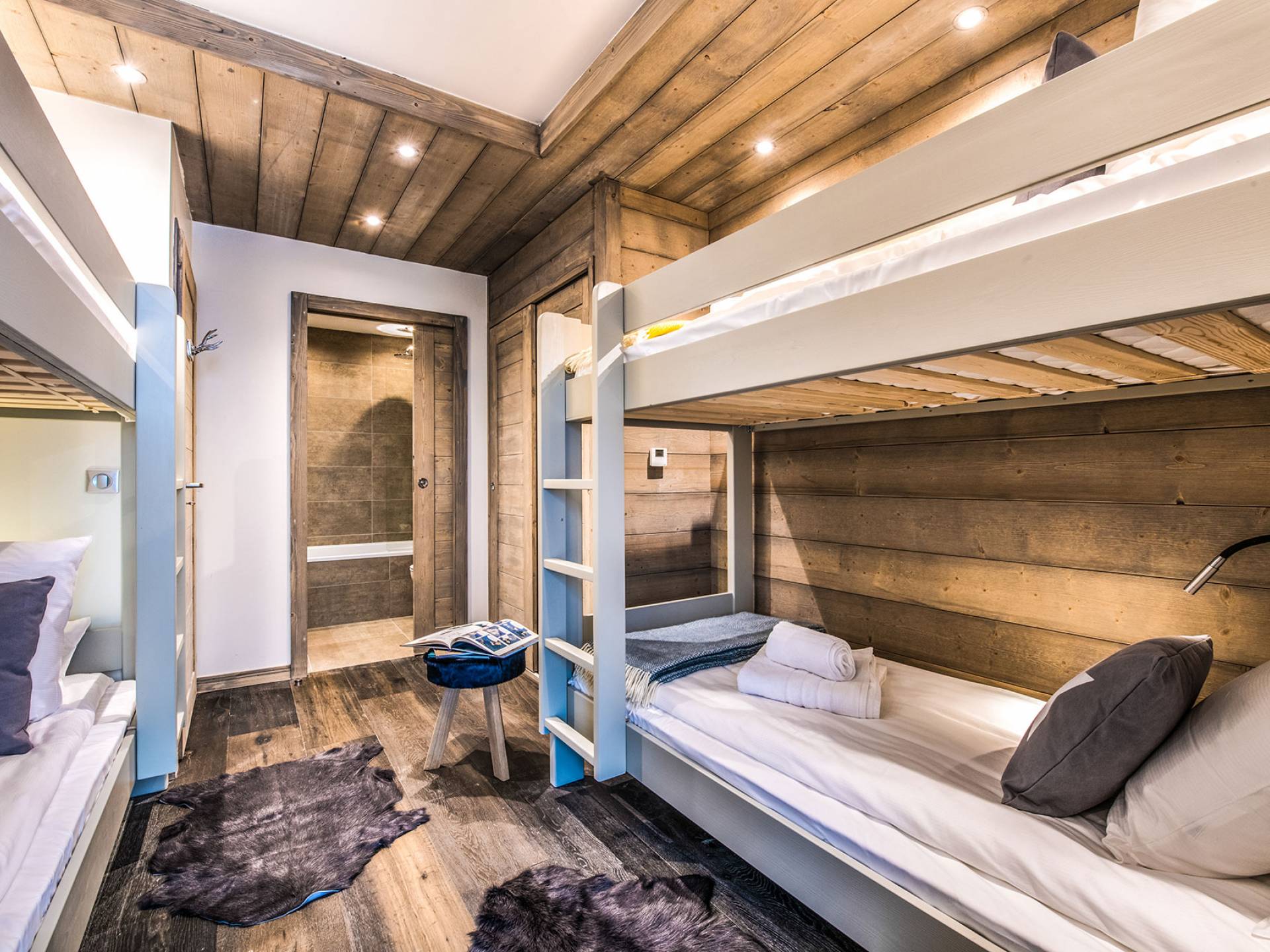 Chalet 3, located in the Yellowstone Lodge Residence, with a surface area of 173 sqm, is perfect to welcome 10 people. This chalet has three bedrooms with a double bed, a bedroom with two bunk beds and four en-suite bathrooms. The superb living room with a TV and a fireplace has also a dining area and a fully equipped kitchen. You will also appreciate the large balcony with a jacuzzi offering a panoramic view over the mountains. You will find a mezzanine with a TV corner and a reading corner. During your holidays, you can benefit from a parking space in the private car park, a ski locker and Wi-Fi access.