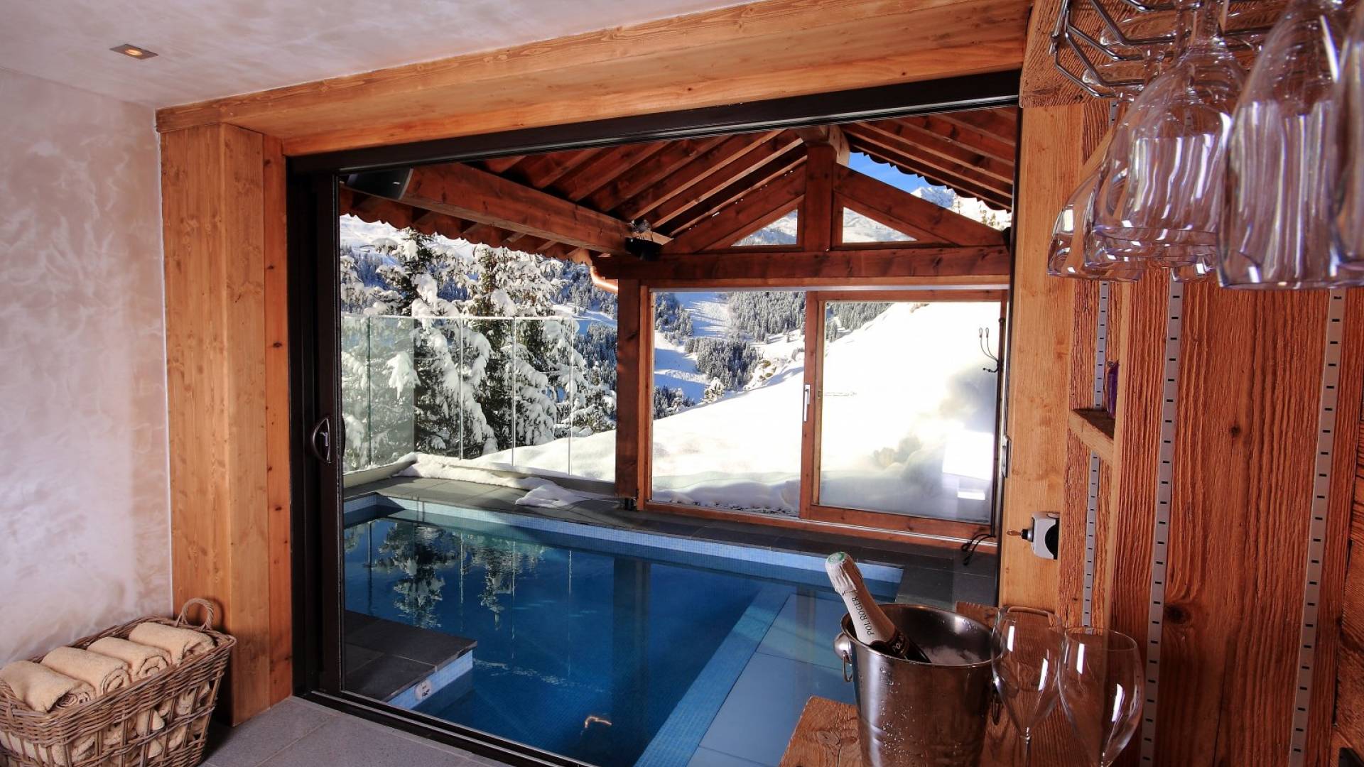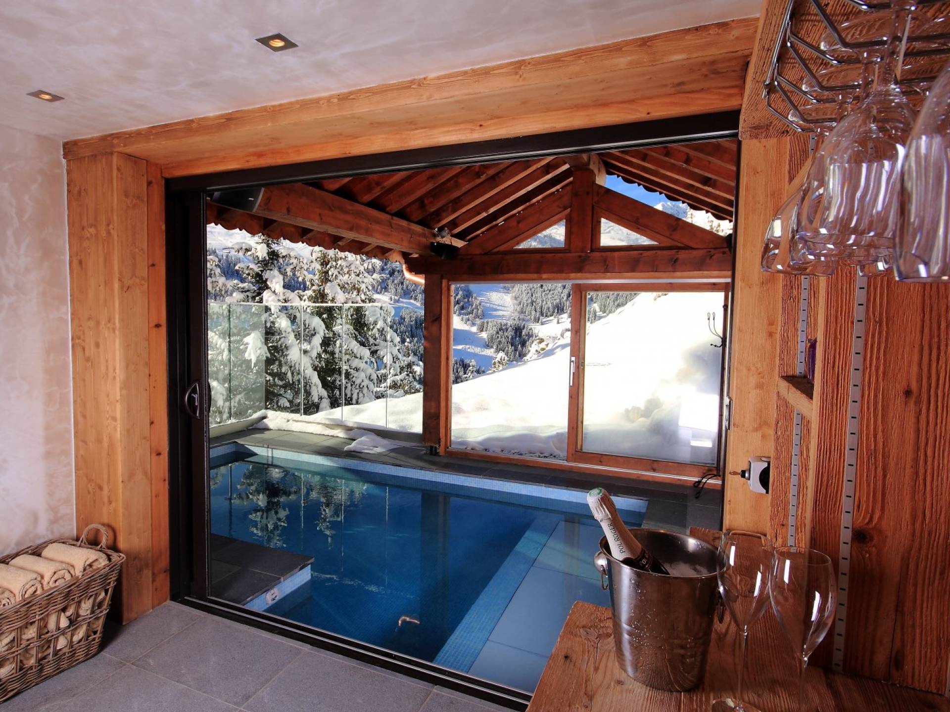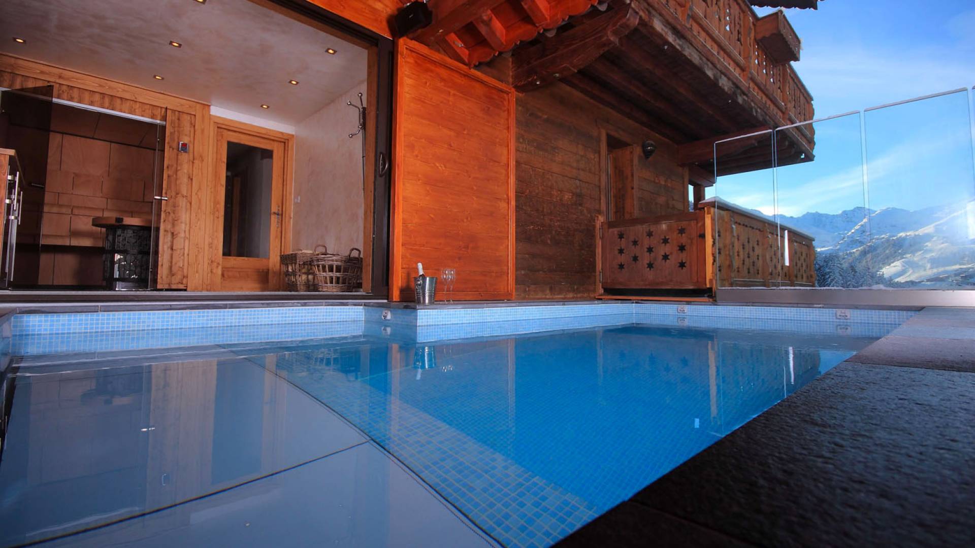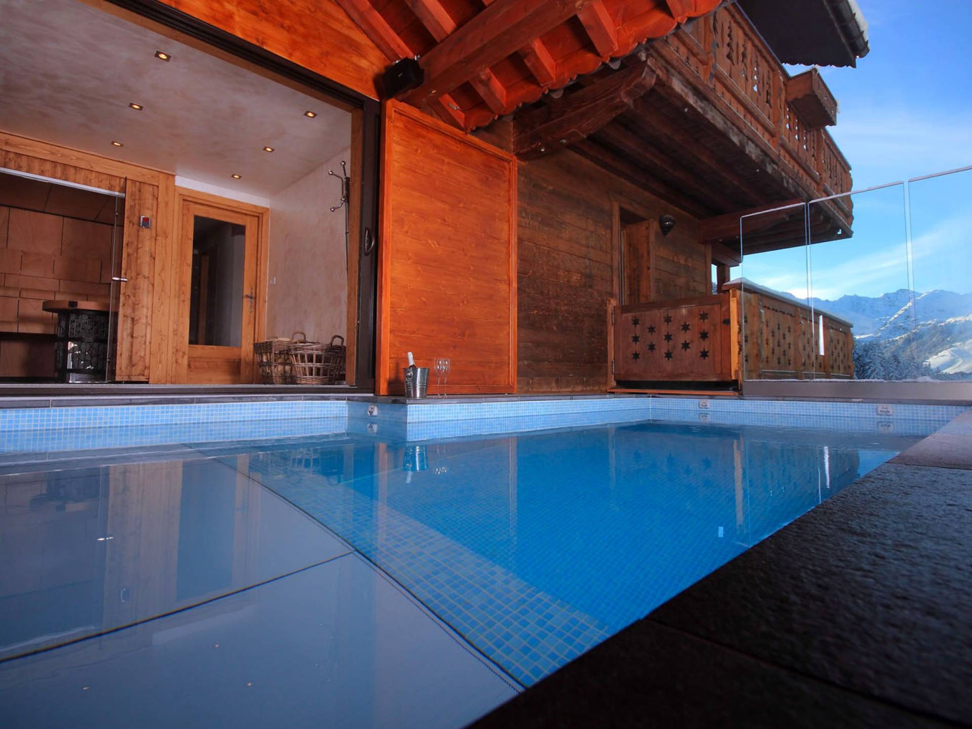 The chalets extensive south-facing sun terrace features a swimming pool, Sauna, outdoor heaters, exterior music system, and a fully stocked bar. There is also a study area equipped with telephone, fax, computer, broadband, and wireless Internet access; a games area with satellite television, DVD player, X-box 360, table tennis, and darts board. Other facilities include a gym with a running machine, rowing machine, bike, HD satellite television, DVD player and music system, an impressive wine cellar, a laundry room, heated ski, and boot room, and on-site private parking.