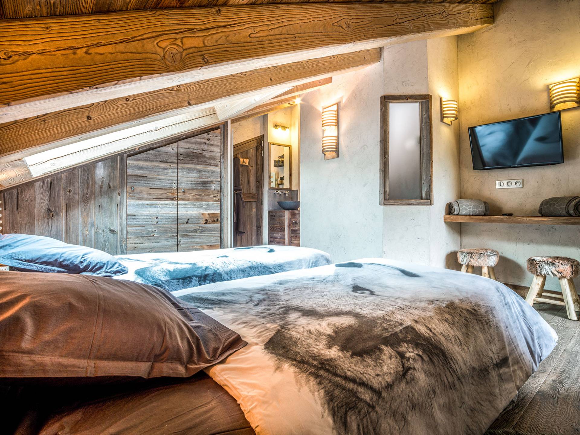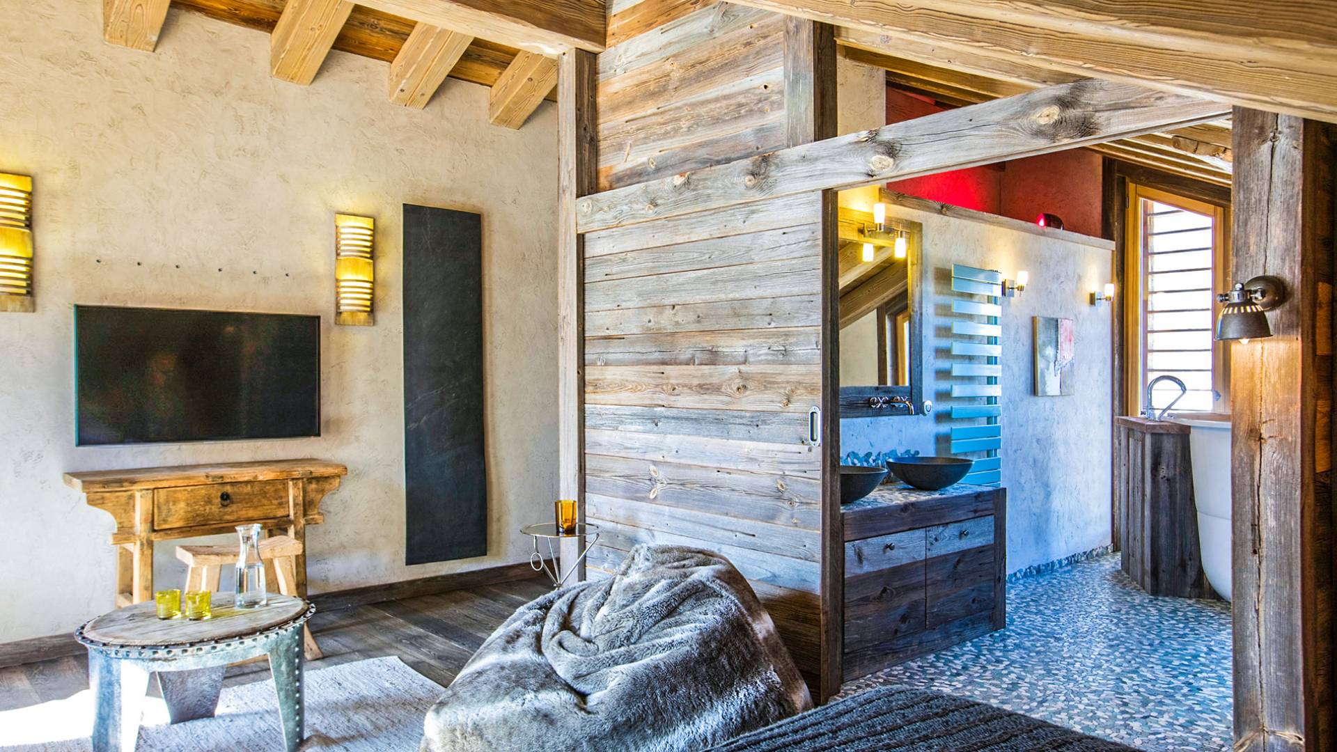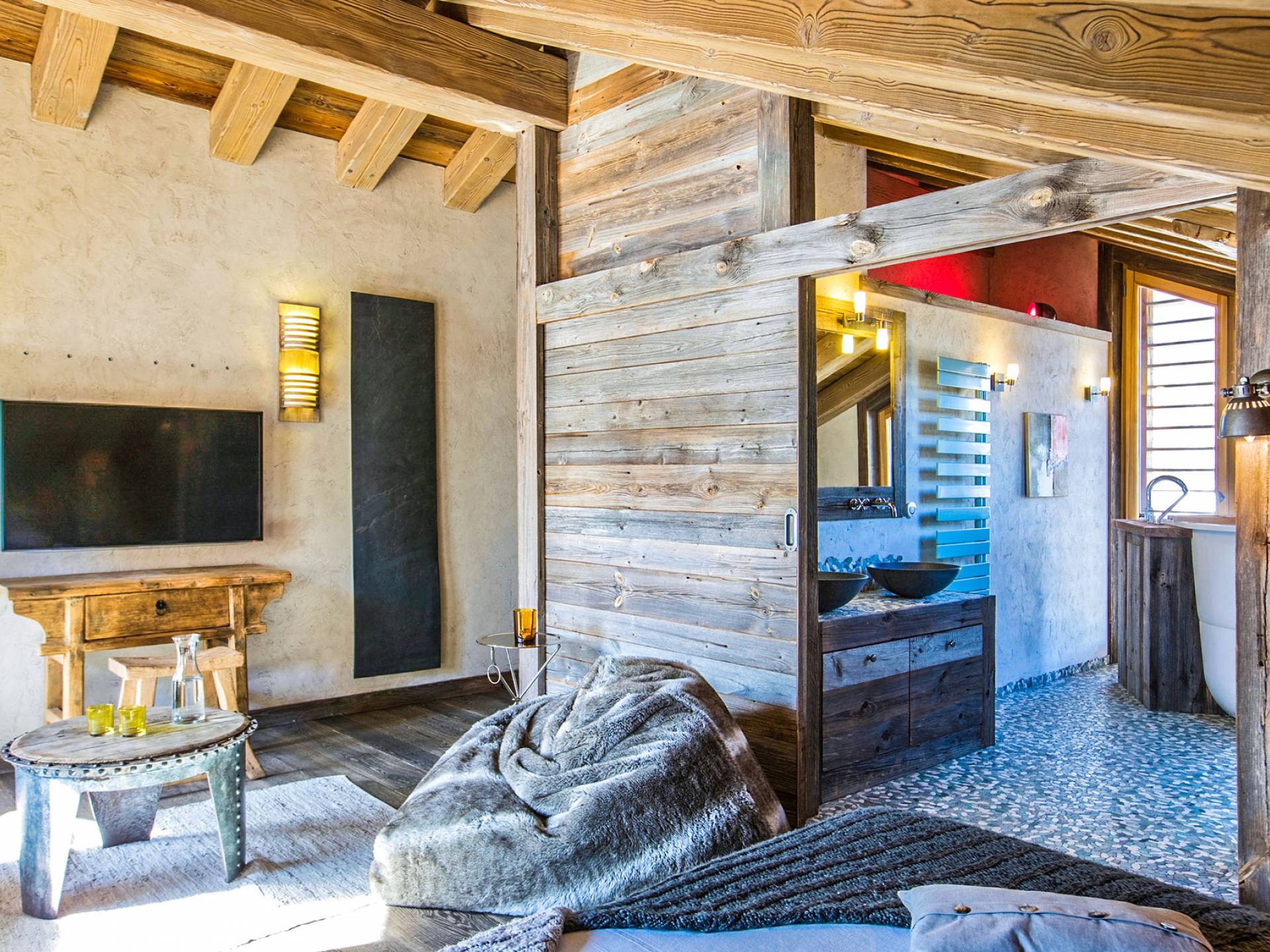 Chalet l'Abreuvoir Meribel is a luxury chalet to rent with 5 bedrooms and jacuzzi. Awarded best renovation at the Alp Home festival 2017, completely rebuilt in 2012. Chalet l’Abreuvoir is a mix of noble materials such as old wood and lime plaster, and modernity will immerse you in one of the most beautiful chalets of the station.