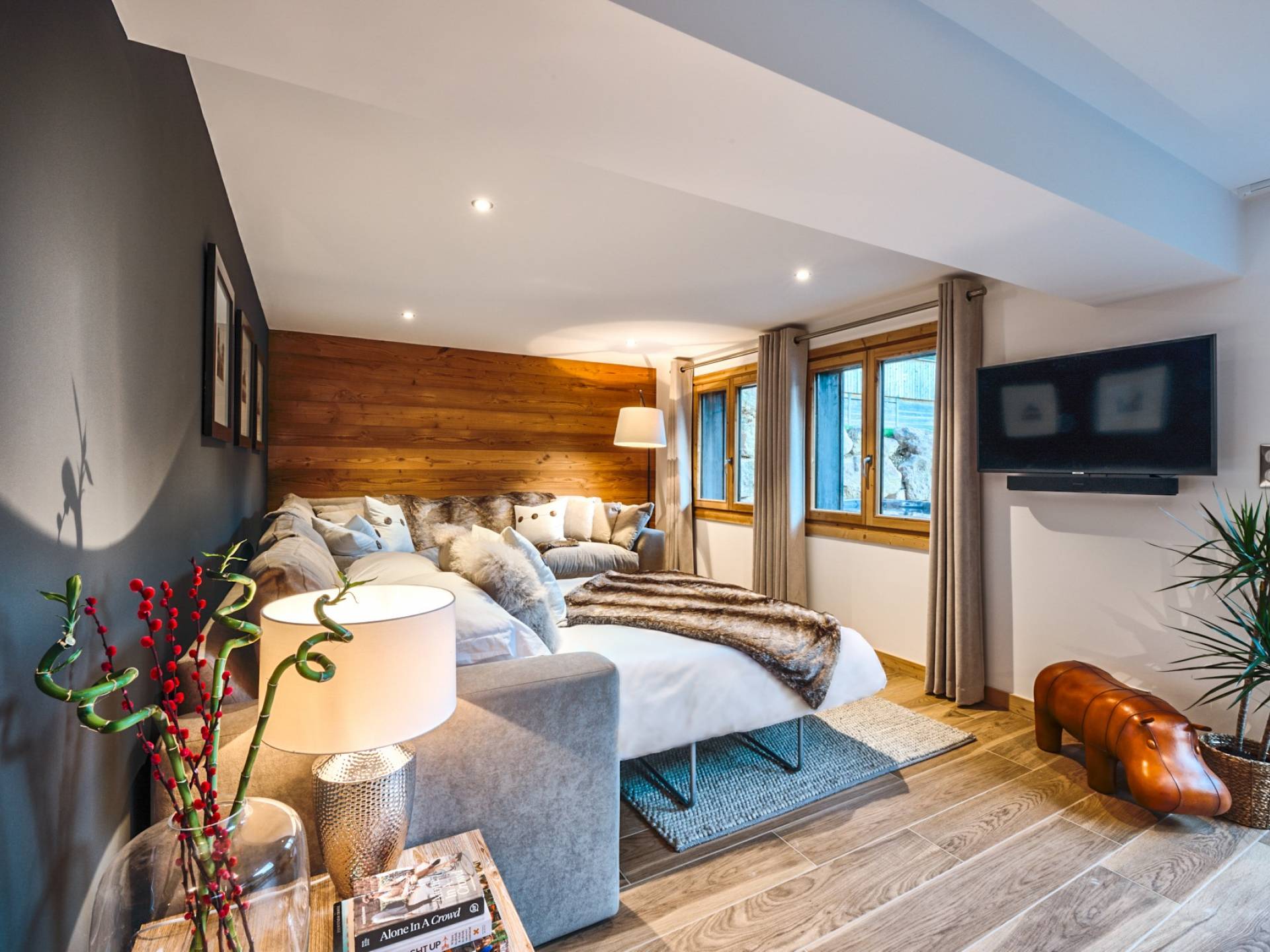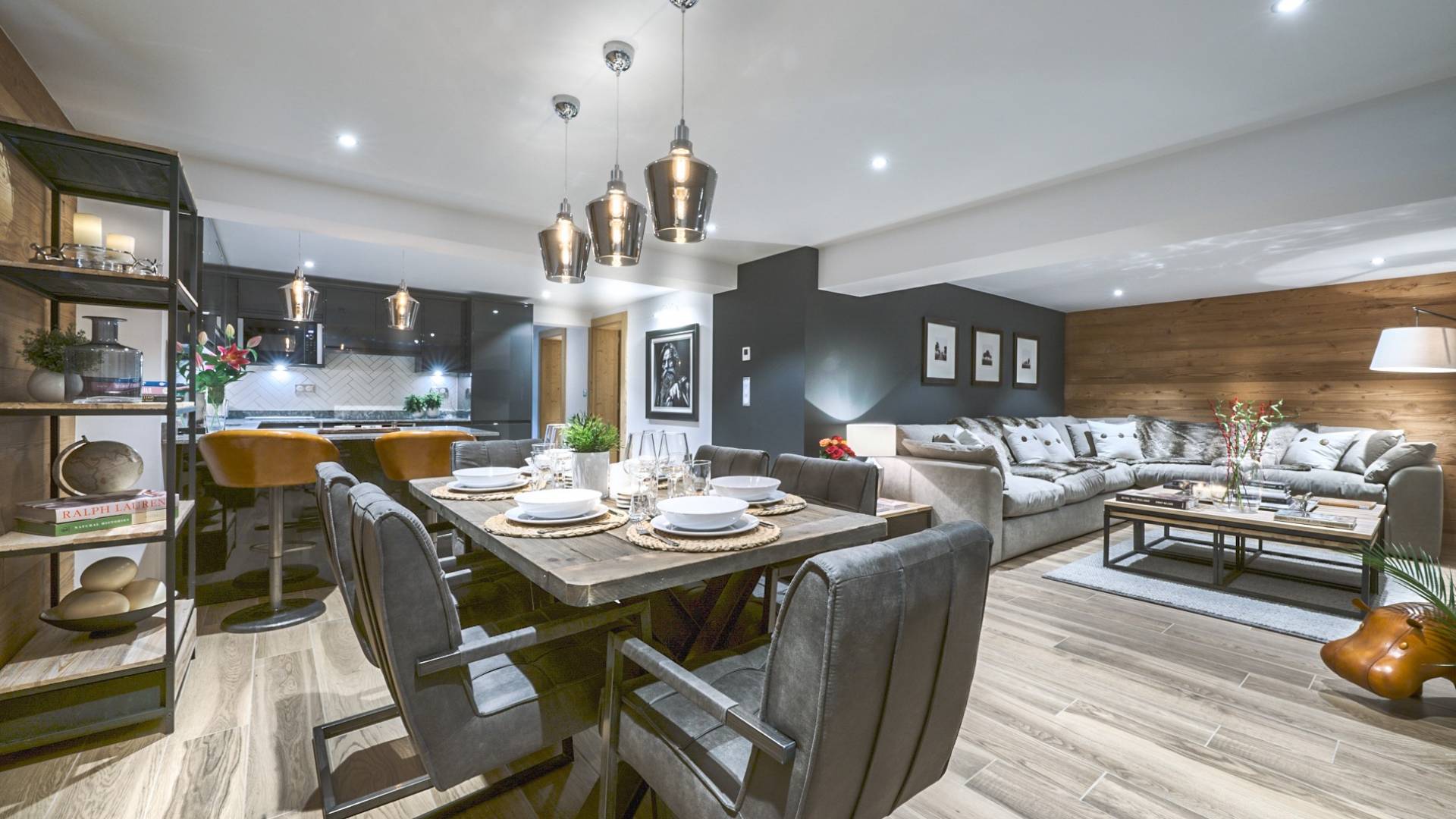 The large open-plan kitchen and living area are bathed in sunshine throughout the day and have bi-folding doors which open up to a terrace with a stunning view of La Côte-d’Abroz and Mont Chéry. The living area is a large, modern, open-plan lounge and dining room with a full UK Sky TV package, an iPad, GoPro, and plenty of board games to keep everyone entertained. It also has a large sofa bed allowing for extra guests or children to be accommodated.