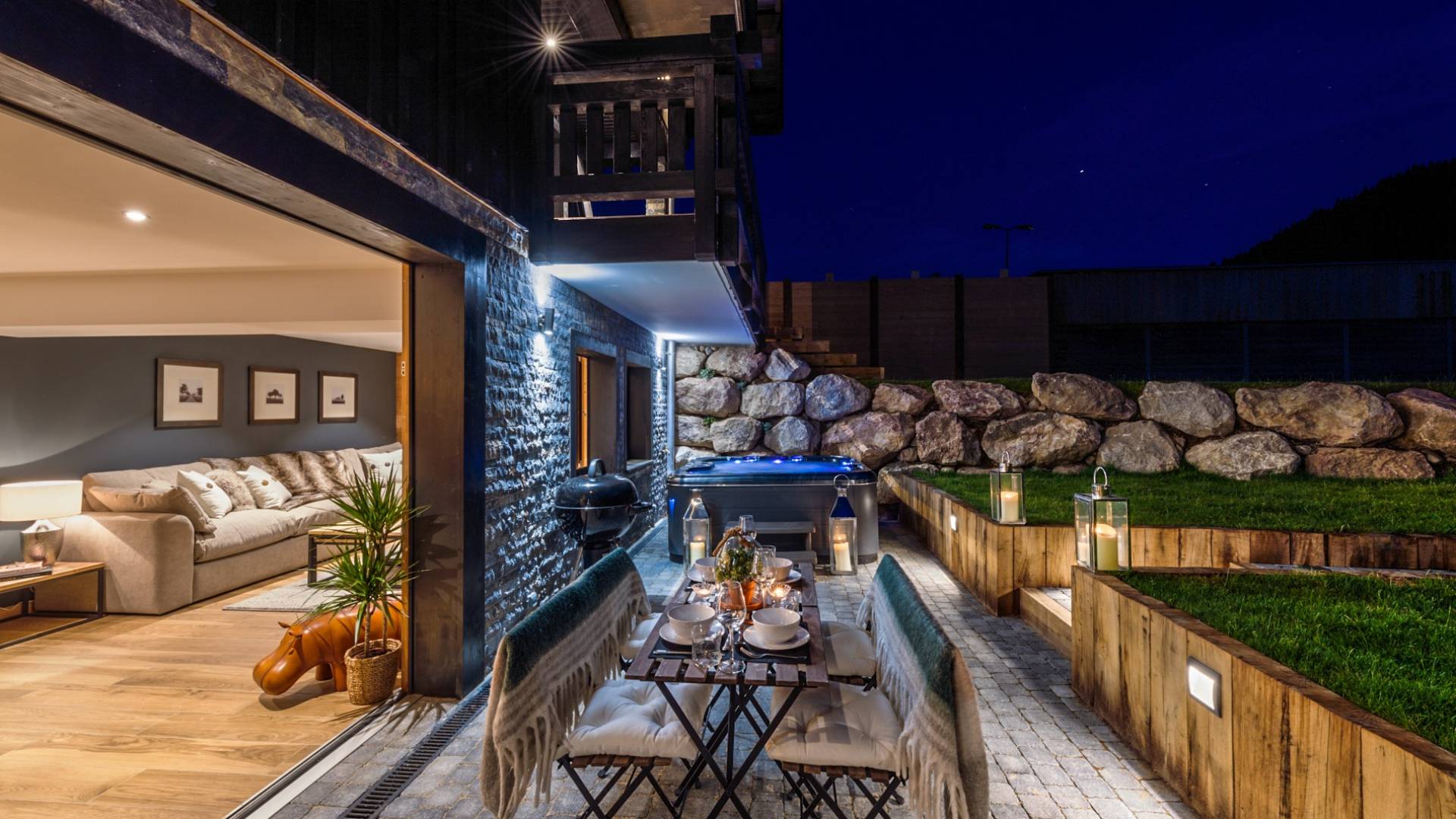 Outside, the terrace has a hot tub, dining table, and barbecue making it perfect for both summer and winter. Cold snowy afternoons are always best spent in a warm hot tub with champagne in hand! In summer you can barbecue and alfresco dine into the late evening as the sun sets on the terrace. There is private parking for two cars.