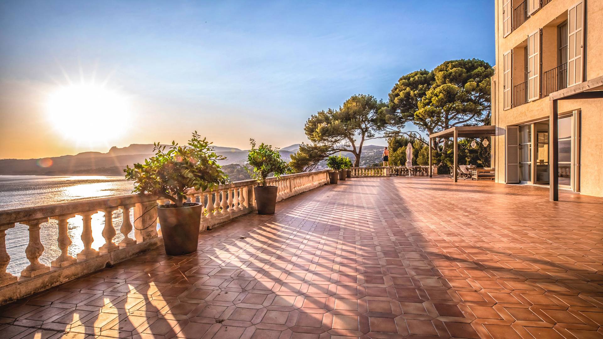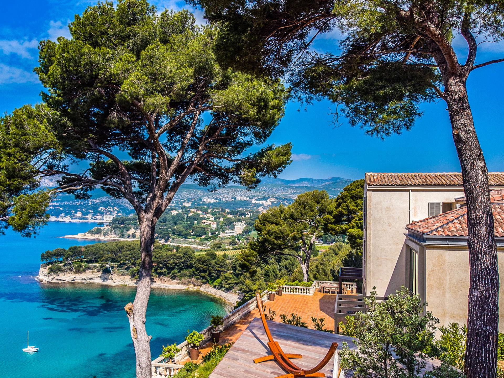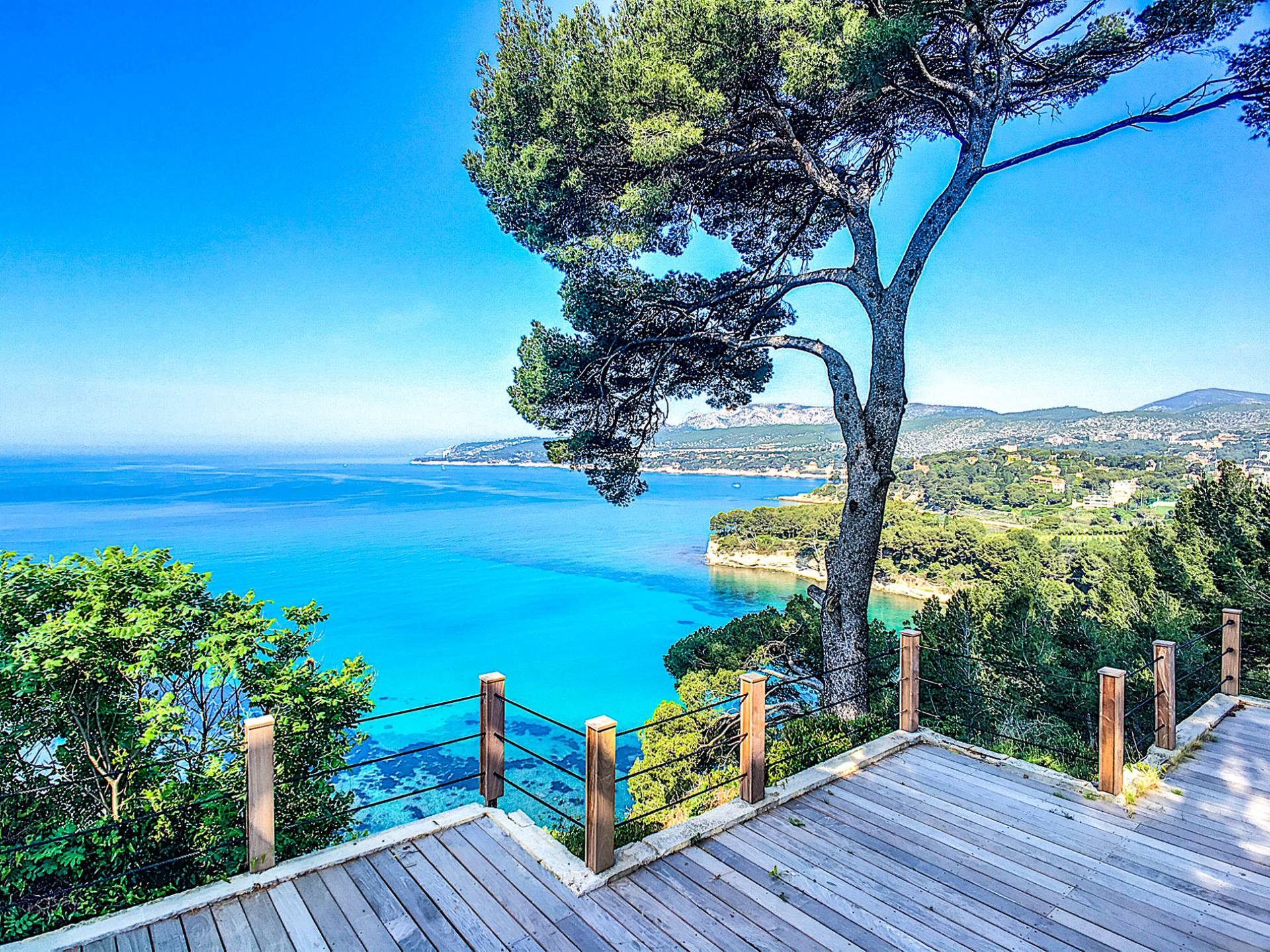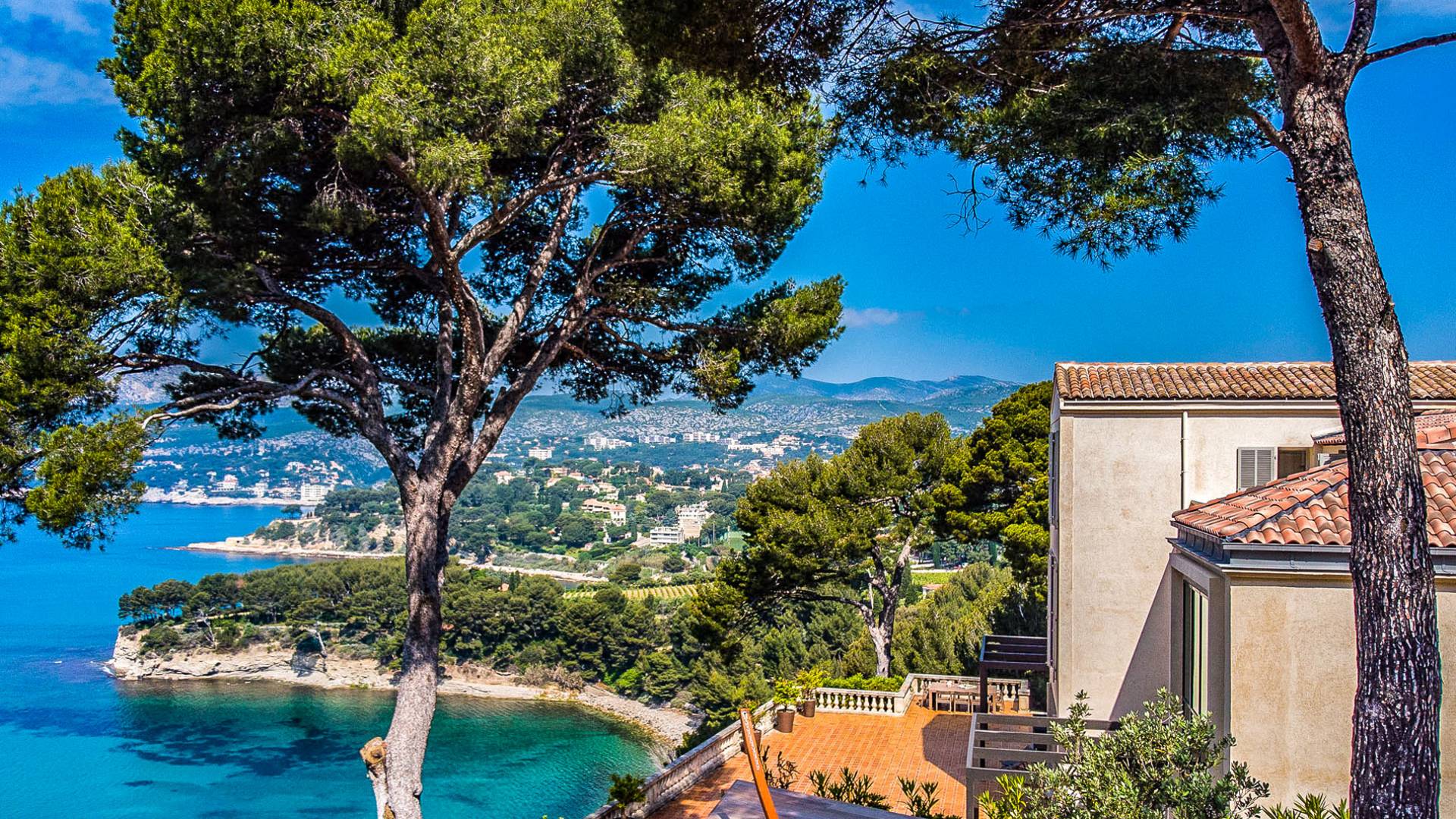 Formerly the Revestel Hotel, which welcomed Virginia Woolf in the ’20s, this 6500 sq. ft (600 m2) mansion was entirely renovated in 2017 to combine modernity, simplicity, and comfort. Its four reception rooms on the sea and the eleven bedrooms allow it to comfortably accommodate twenty-four guests. The huge terrace of 5000 sqft (500 m2) overlooks a beautiful beach with turquoise waters, accessible on foot by a private path in 5 minutes. The property has a large heated 42-foot (13m) swimming pool, an orangery, and a petanque. Cassis village and harbor are less than 15 minutes away by foot. The Domaine de Canaille is a fully-serviced mansion available with its staff for holiday rentals, private and corporate events, seminars as well as wellness retreats. I can organize all activities and bookings