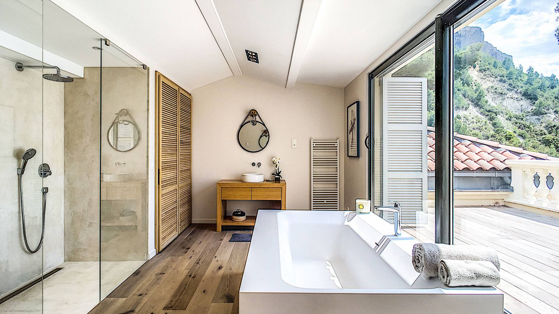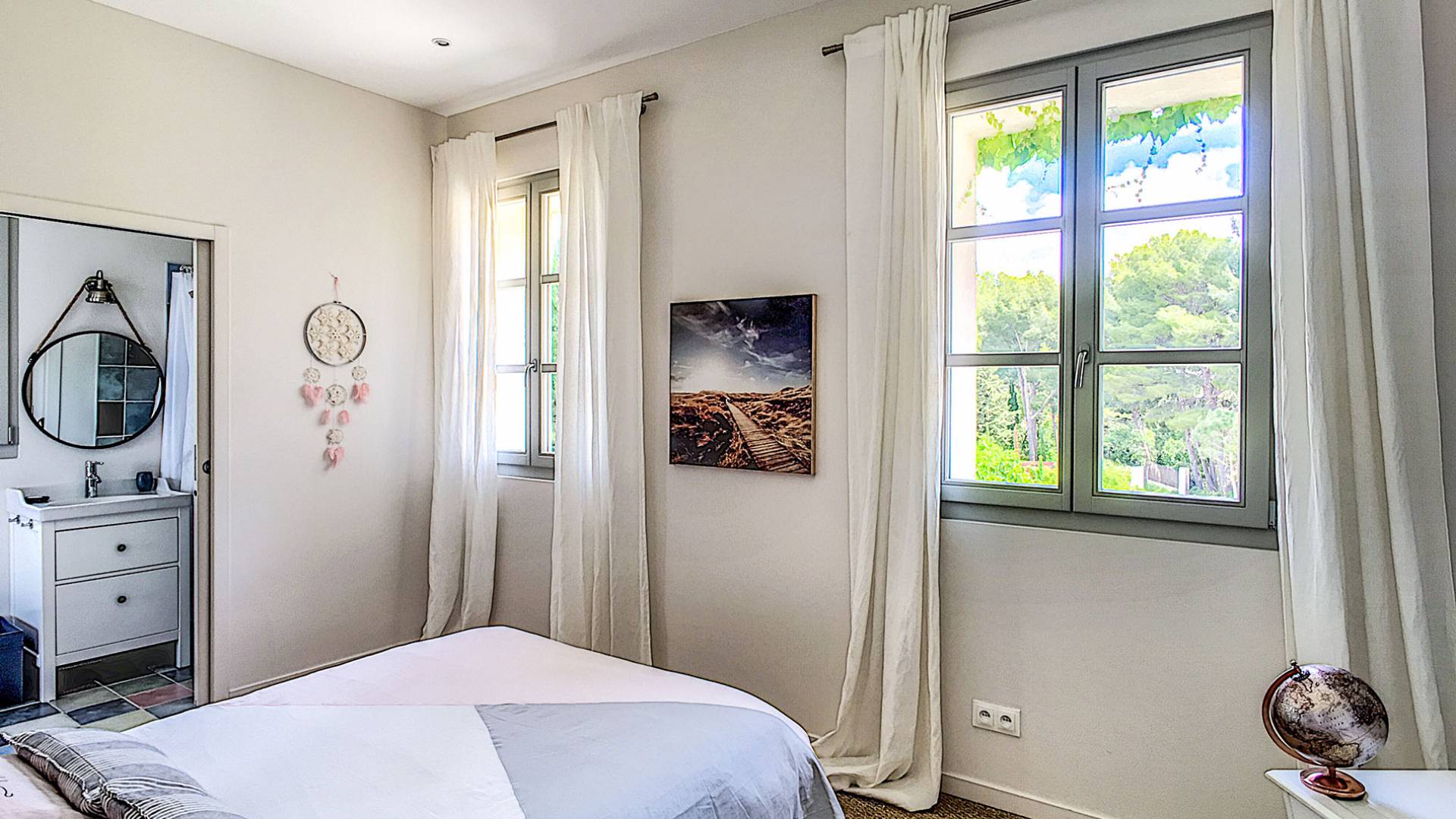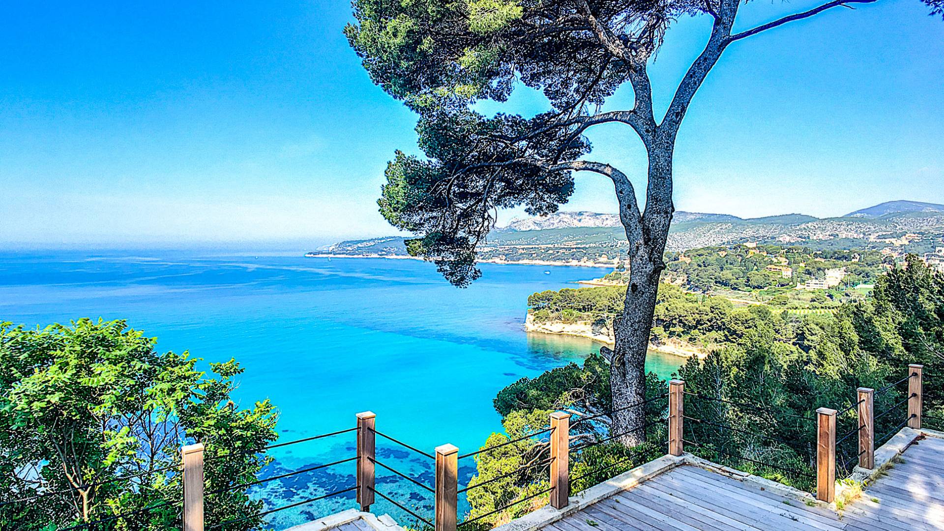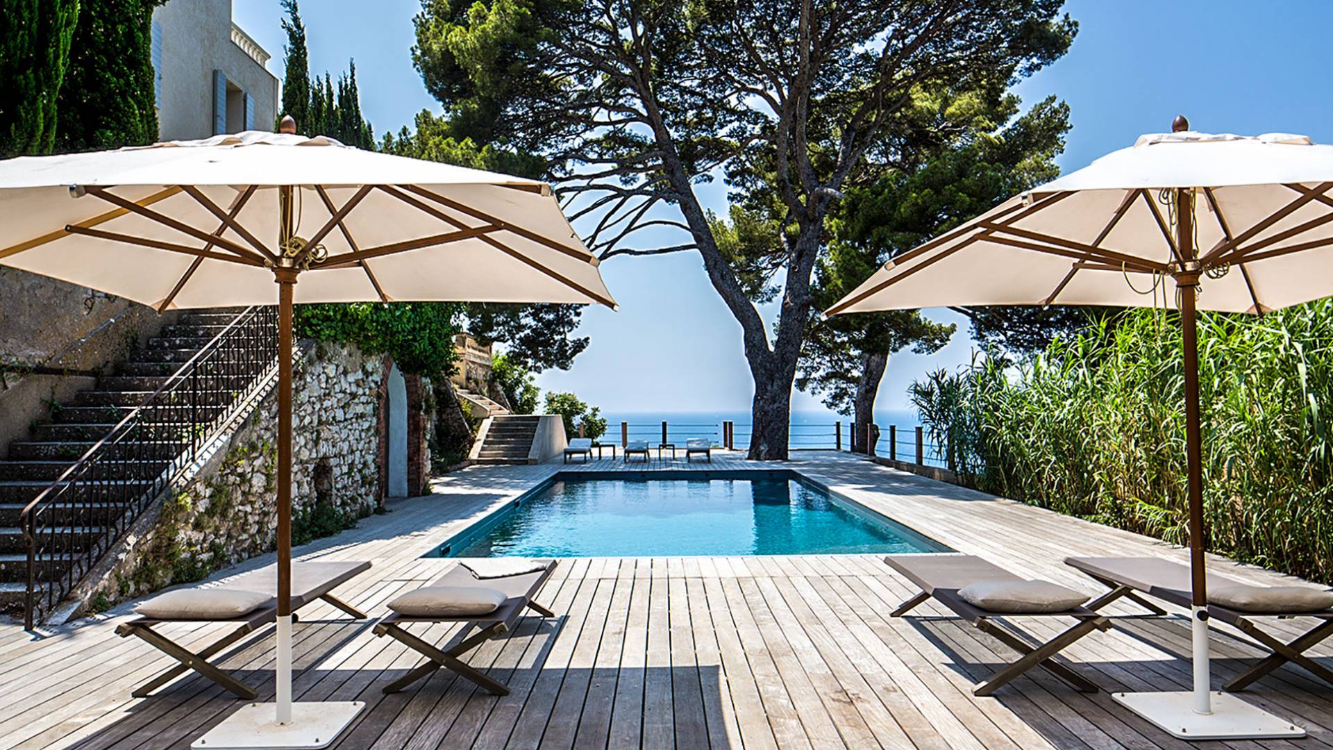 Formerly the Revestel Hotel, which welcomed Virginia Woolf in the ’20s, this 6500 sq. ft (600 m2) mansion was entirely renovated in 2017 to combine modernity, simplicity, and comfort. Its four reception rooms on the sea and the eleven bedrooms allow it to comfortably accommodate twenty-four guests. The huge terrace of 5000 sqft (500 m2) overlooks a beautiful beach with turquoise waters, accessible on foot by a private path in 5 minutes. The property has a large heated 42-foot (13m) swimming pool, an orangery, and a petanque. Cassis village and harbor are less than 15 minutes away by foot. The Domaine de Canaille is a fully-serviced mansion available with its staff for holiday rentals, private and corporate events, seminars as well as wellness retreats. I can organize all activities and bookings