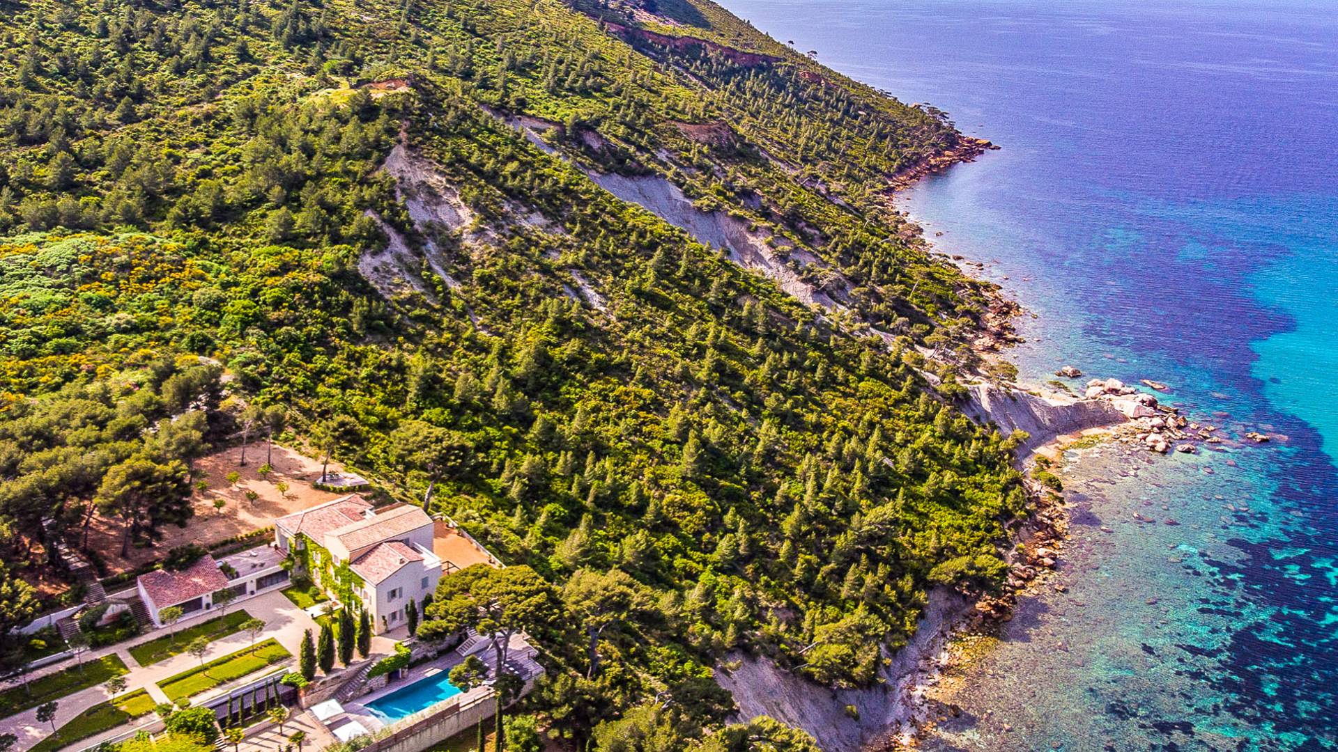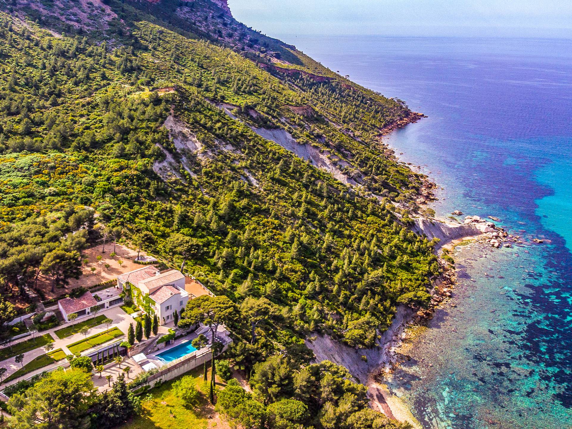 Just 30 minutes from Marseille, in the charming village of Cassis, the Domaine de Canaille is one of the largest and most prestigious properties on the French Riviera. With 150 acres (60 ha) under Cap Canaille in the Calanques National Park, this luxury villa offers breathtaking views of the Mediterranean.