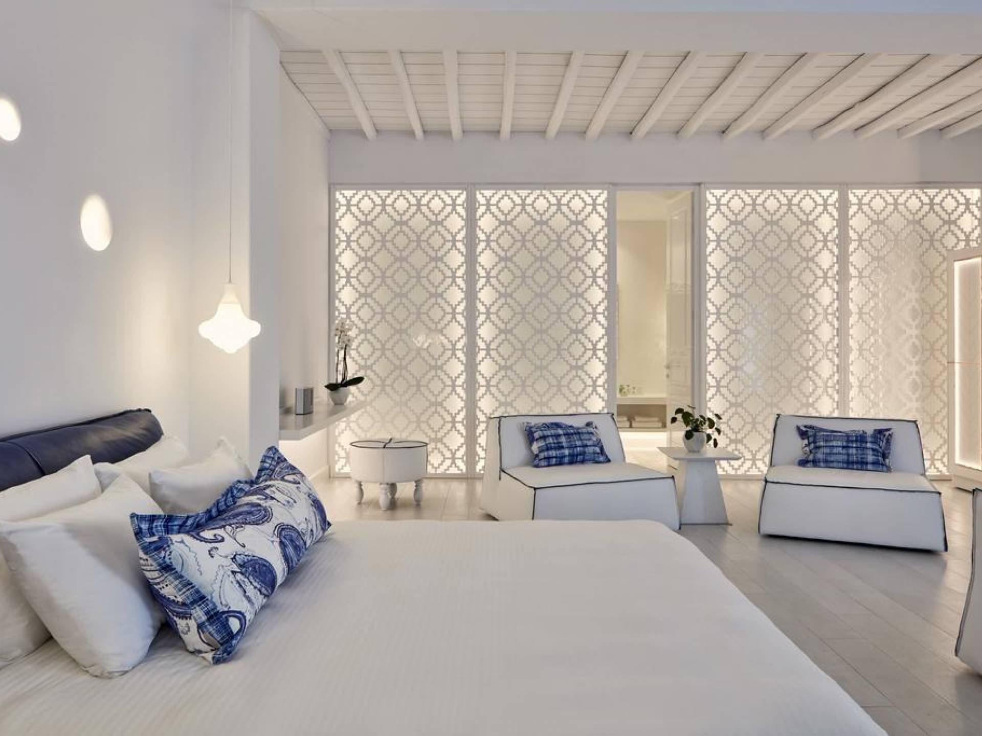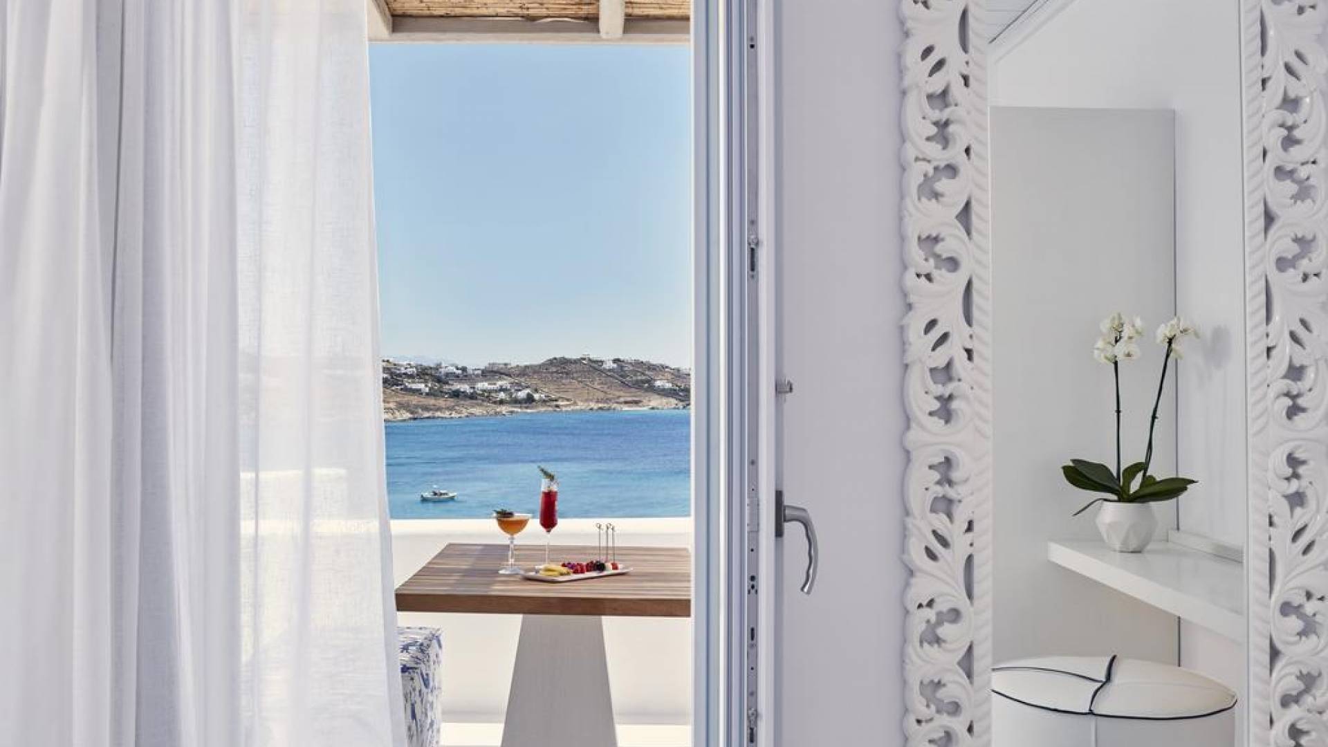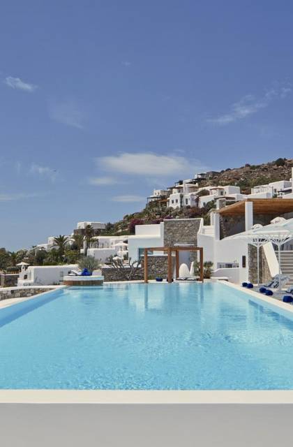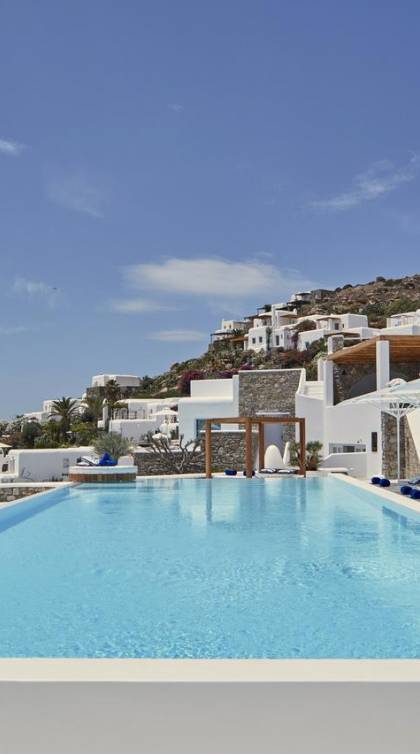 Built amphitheatrically with a direct sea view, this exceptional boutique hotel, member of the Katikies Group of hotels evokes the island’s Cycladic spirit and cosmopolitan charm in its elegant environs while ensuring a holiday beyond comparison. Surrender to the temptations of refinement at this enchanting luxury accommodation and take in the splendid panoramic vistas to the emerald Aegean. Find your peace and quiet in a 5-star hotel in Mykonos and unwind in a haven of bliss and tranquillity.