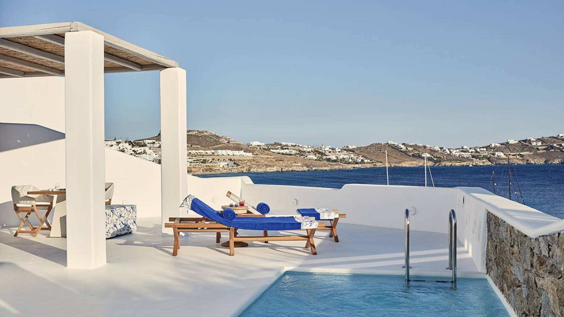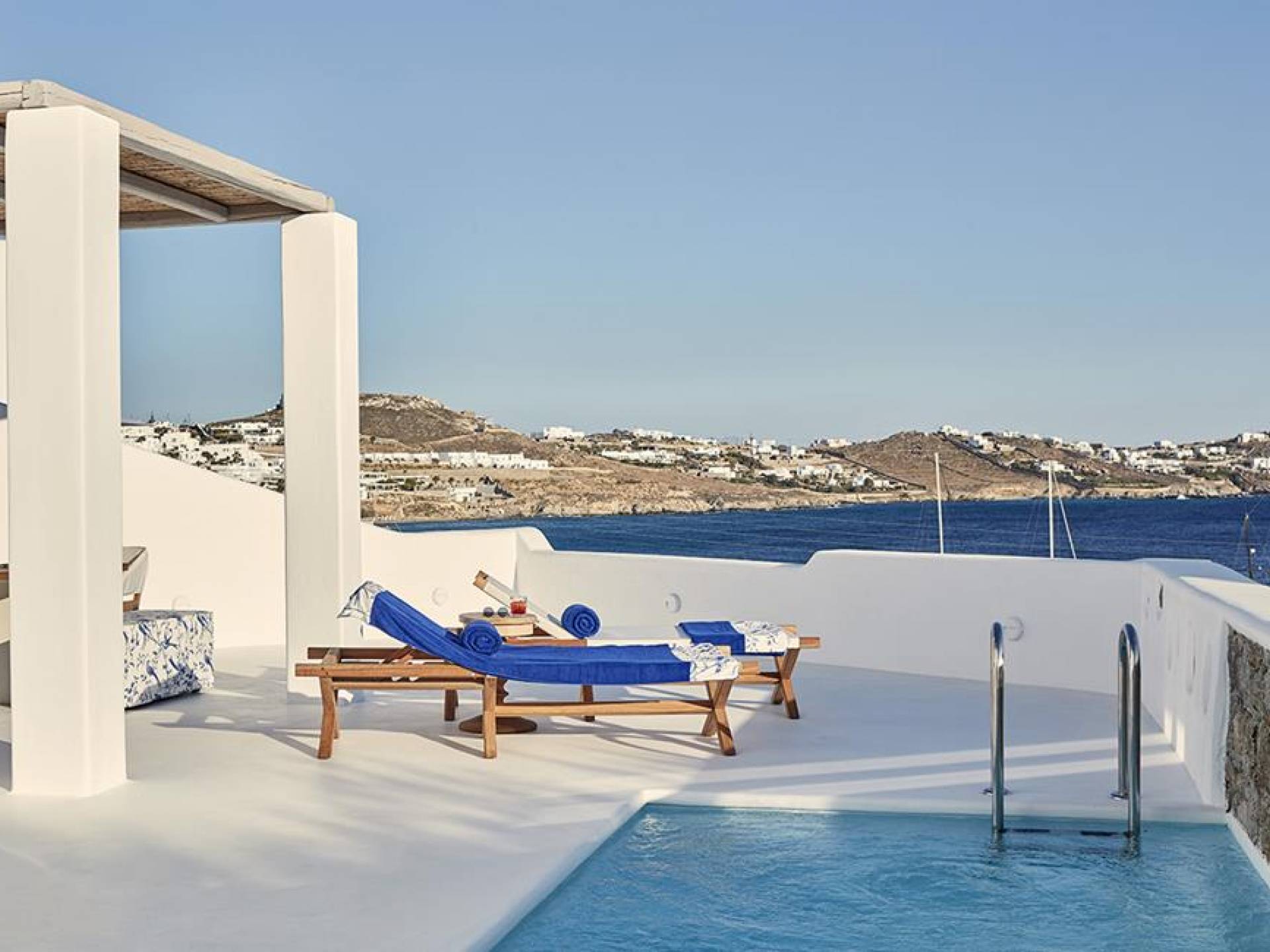 Honeymoon Suite at Katikies Mykonos with Private Pool is the ideal destination, in the scenic area of Agios Ioannis Mykonos in Greece, and step into a world of indulgence. Escape to your private pool suite and experience the genuine way of luxury island living while staying at the most romantic Mykonos hotel with private pools. Relax and give in to the high-end lifestyle of Mykonos while breathing life into your dreams under the open sky.