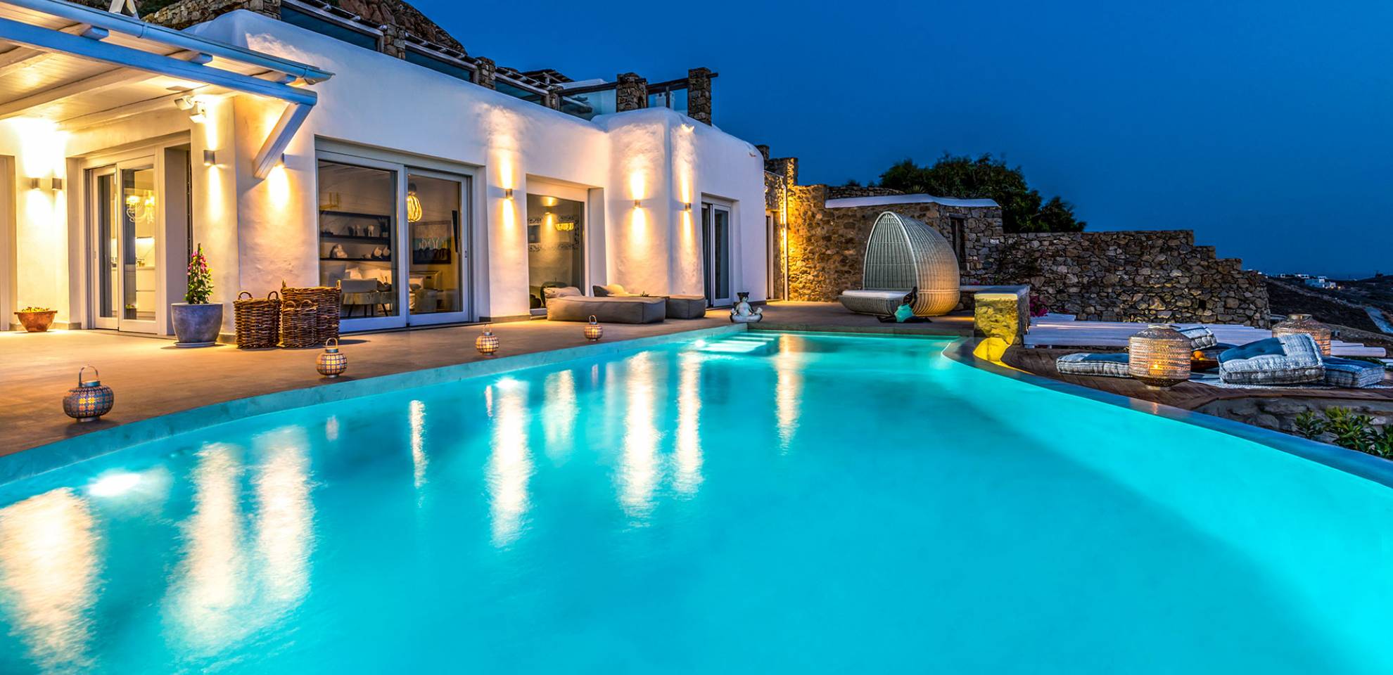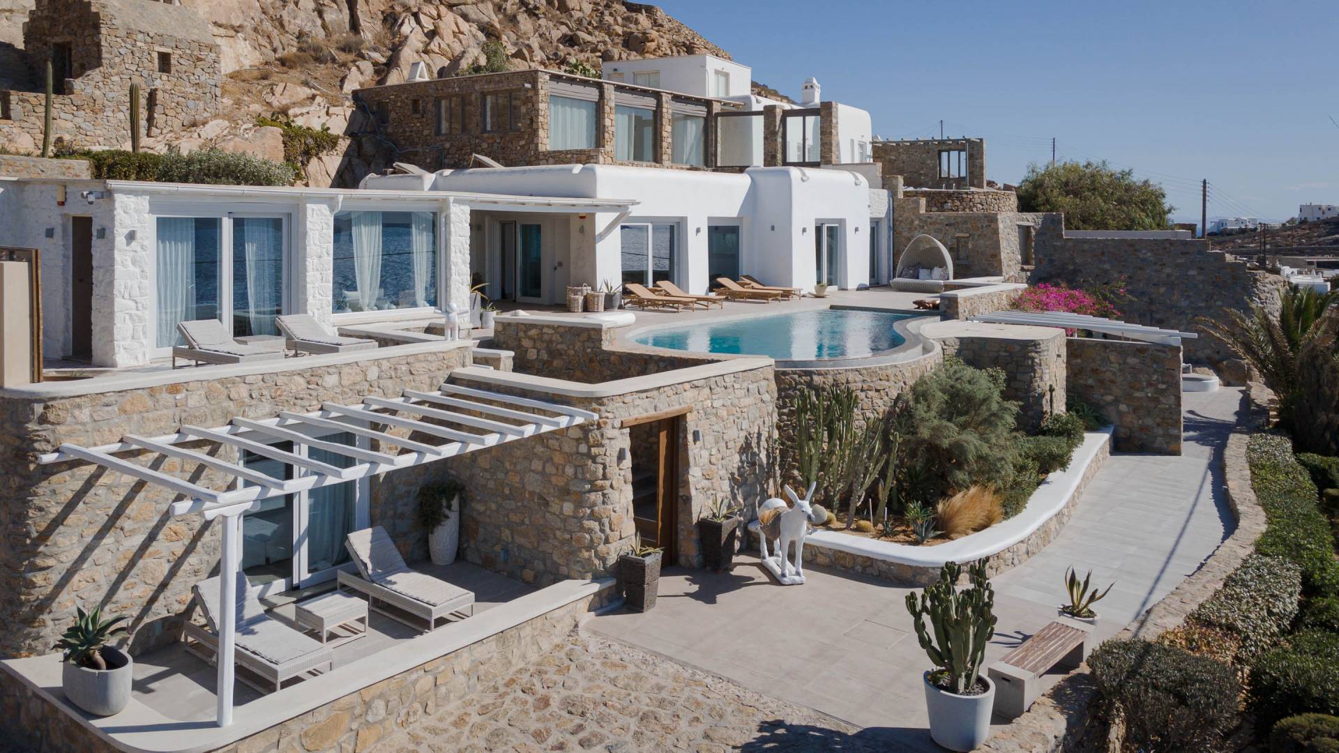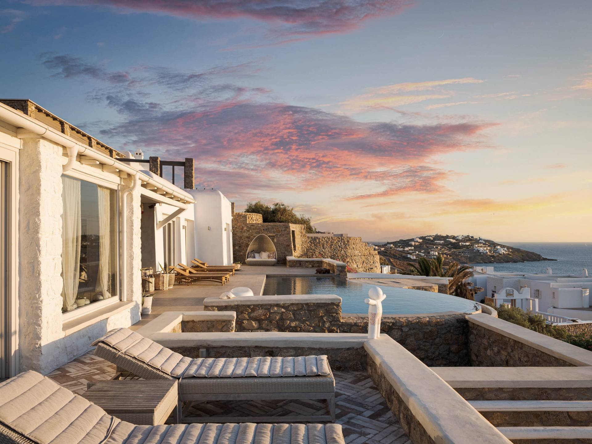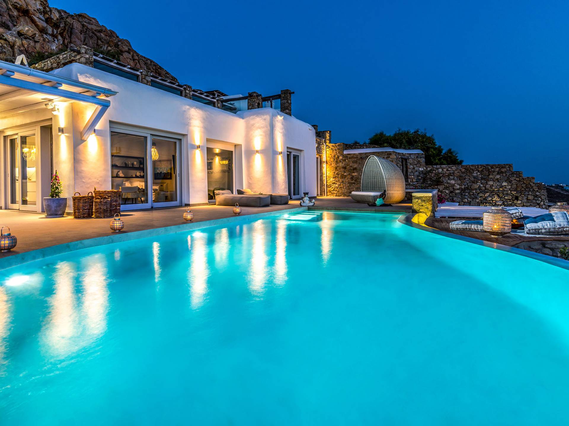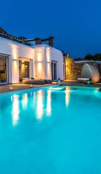 Villa Daloli Mykonos is a luxury villa rental with 6 bedrooms and a private pool. Villa Daloli is perfectly located in Agios Ioannis, Mykonos, and offers an excellent view of Delos Island and the sunset over the bay. The 350 sq. m. villa is simply one of the best choices for the summer holidays for groups of families and/or friends.