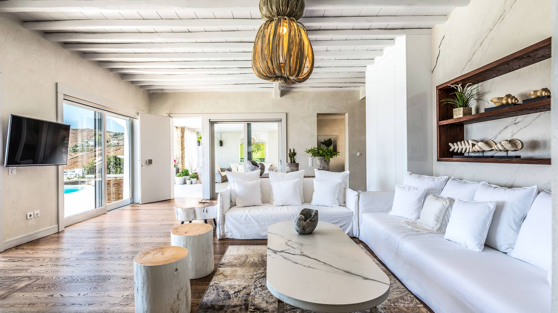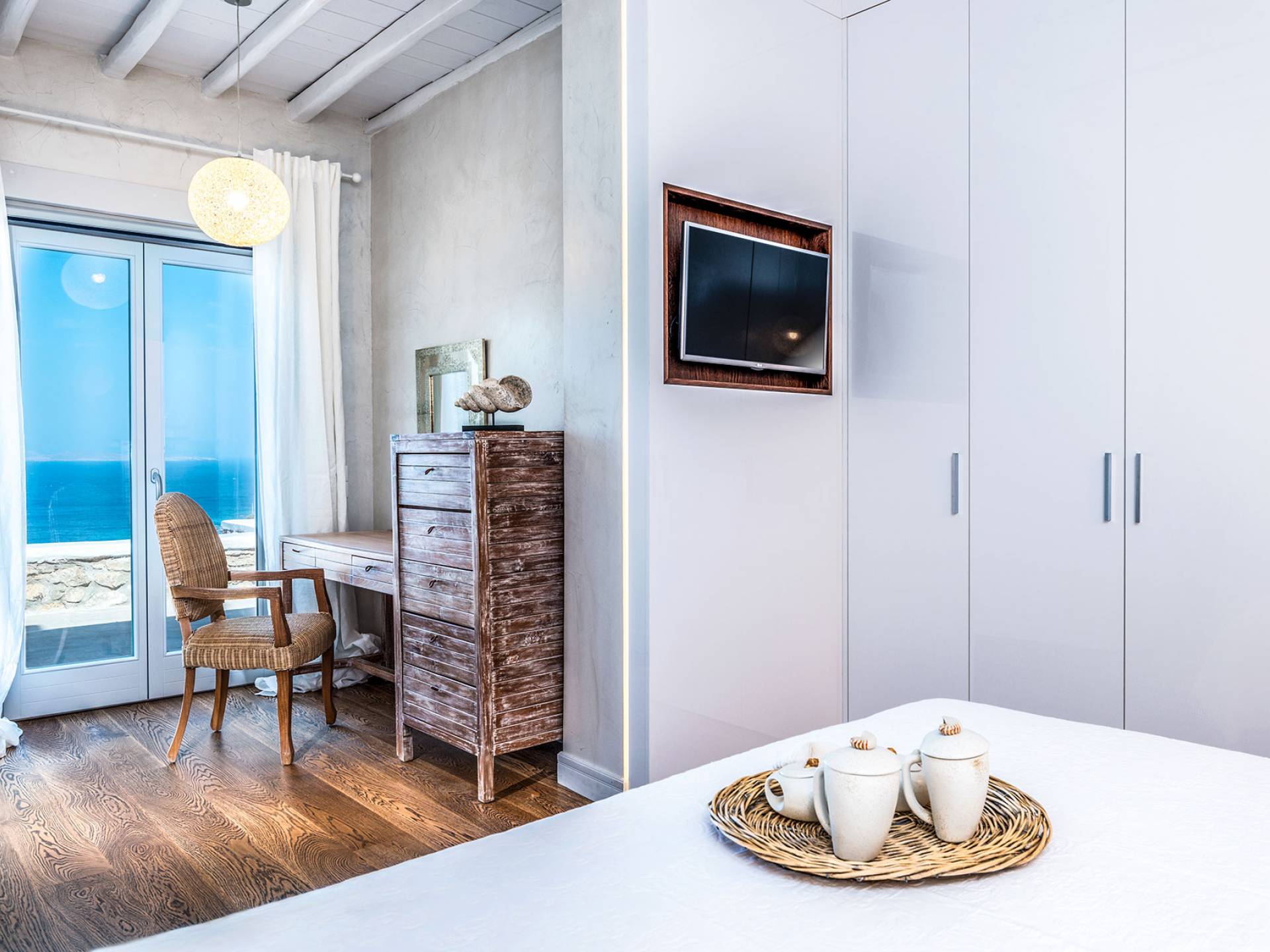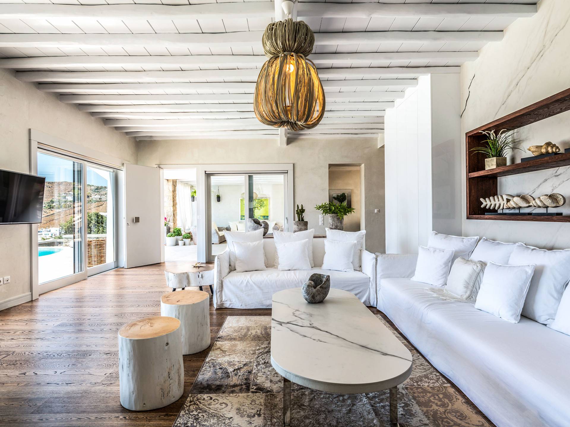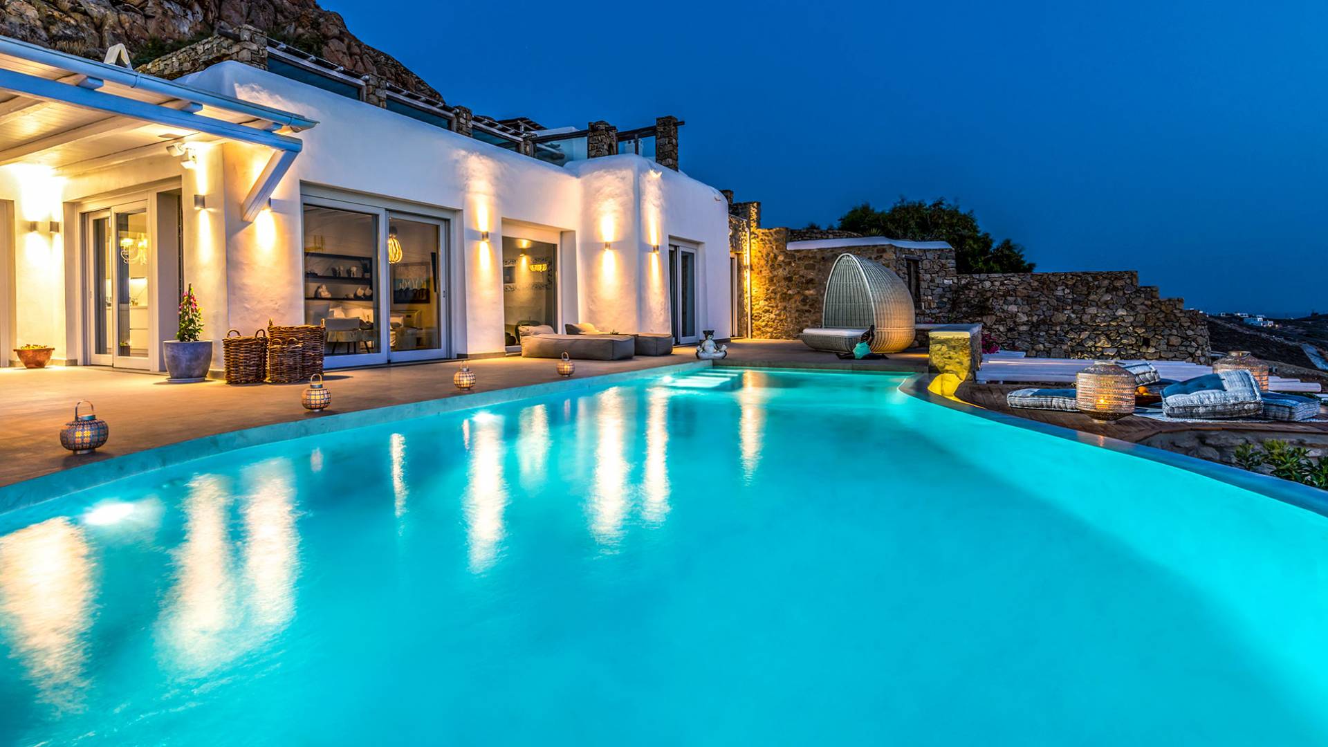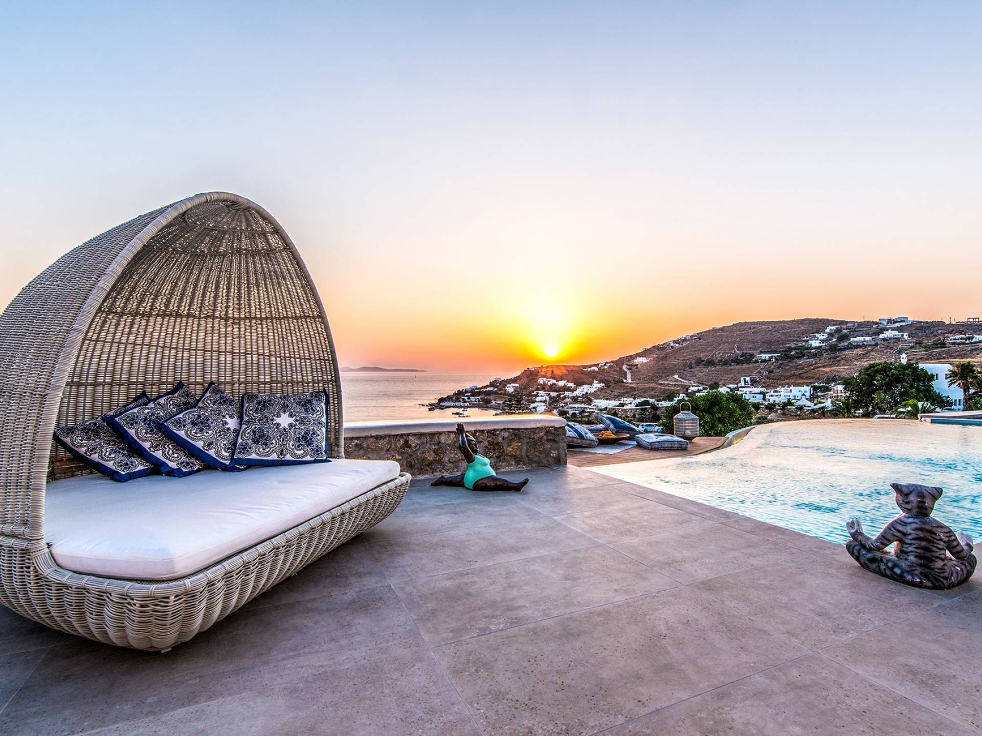 Villa Daloli Mykonos is a luxury villa rental with 6 bedrooms and a private pool. Villa Daloli is perfectly located in Agios Ioannis, Mykonos, and offers an excellent view of Delos Island and the sunset over the bay. The 350 sq. m. villa is simply one of the best choices for the summer holidays for groups of families and/or friends.