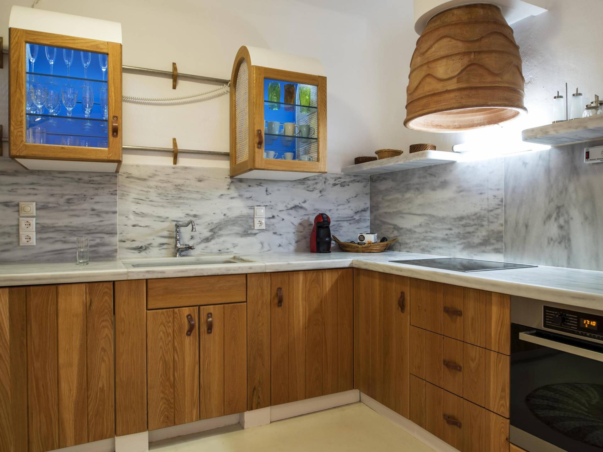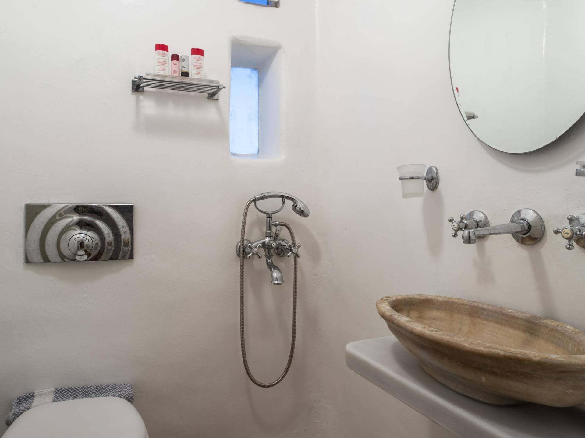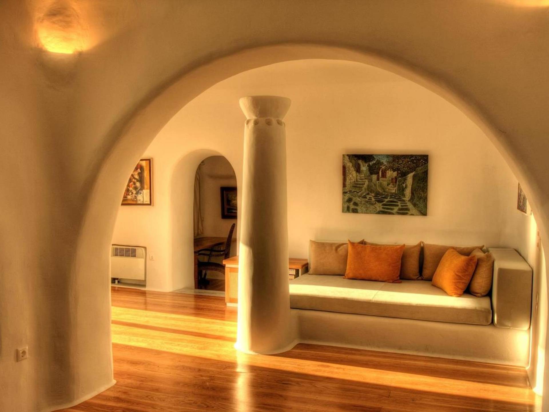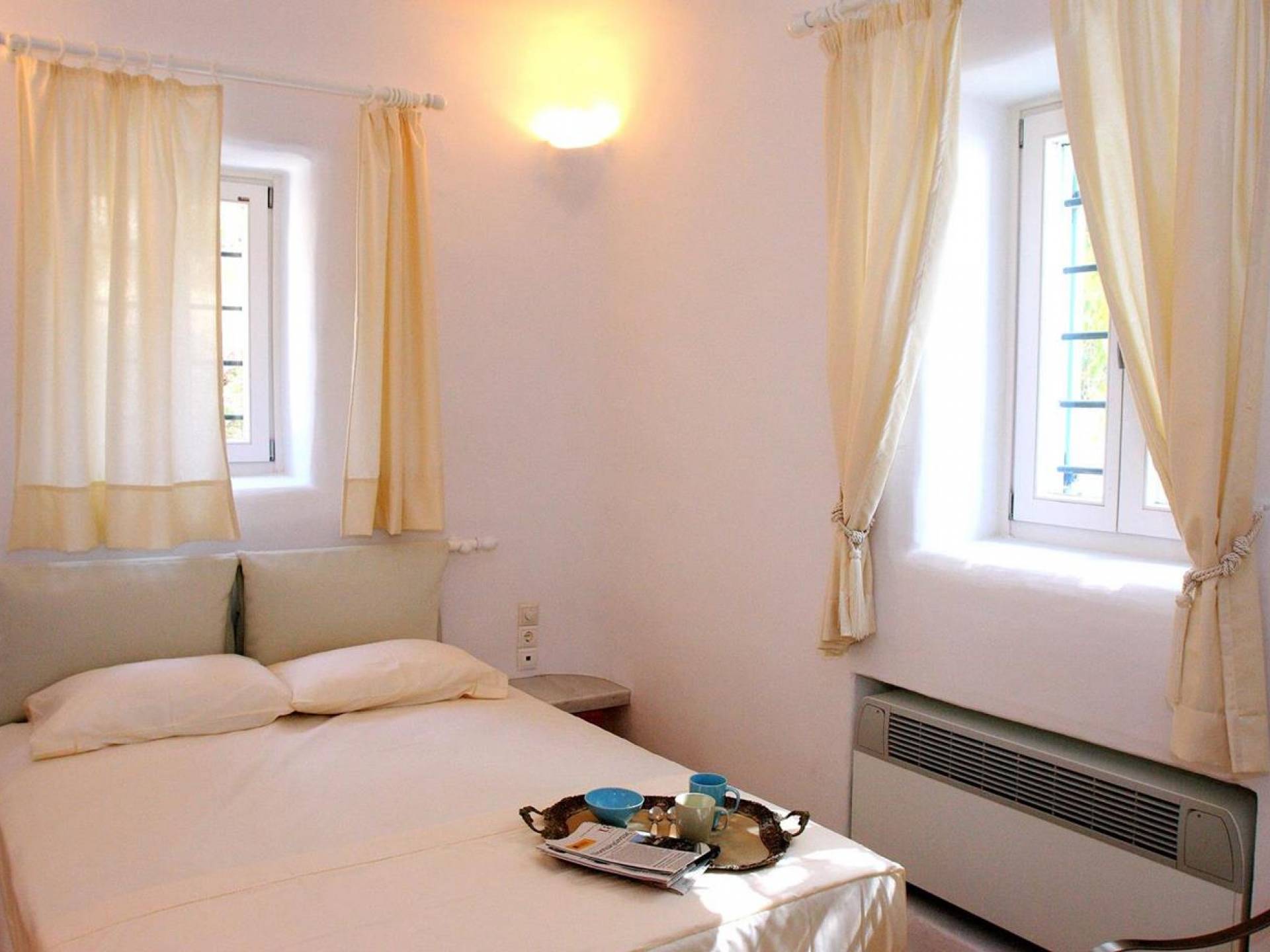 Villa Princess Mykonos is renovated by renowned local artist Zannis Koukas. The interior has kept its Cycladic character, painted white, with curved archways and floors made of sand. An added touch is the inbuilt wall lights and the discreet elements of luxury. They are combined with modern facilities, like a state-of-the-art sound system and a wireless internet connection, so that you won’t lose in comfort on your holiday.