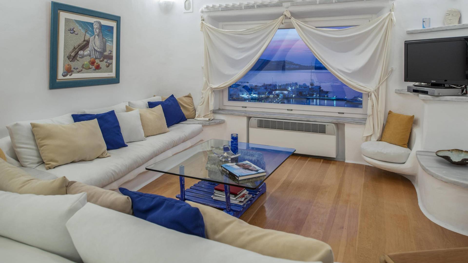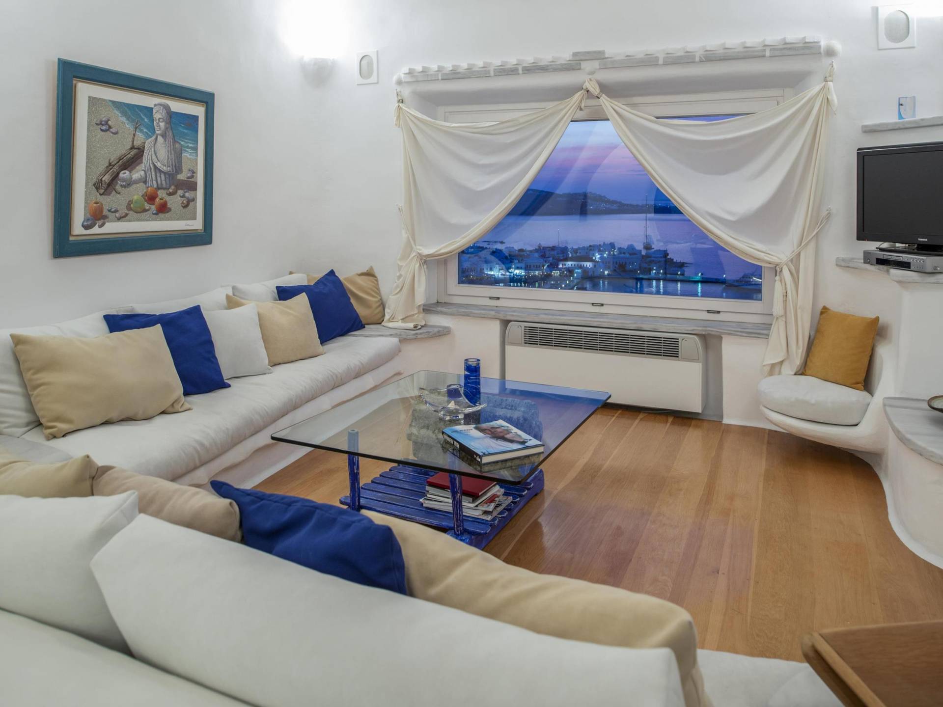 show more detailsAgios Vassilis is a beautiful settlement located on the west coast in the center of the island of Mykonos. It is approximately 10 minutes from every important sight and amenity such as the airport and a 10 minutes’ walk from Mykonos Town where most of the action takes place. Being located in the heart of Mykonos, Agios Vassilis gives you the privilege to explore the whole island. If you are a history lover, you will be glad to know that the archeological museum of Mykonos is also within walking distance, with findings from the prehistoric to the Hellenistic period. Little Venice, the most picturesque quarter of Chora and the capital of Mykonos island, is as well a 10 minutes’ walk from Agios Vassilis.