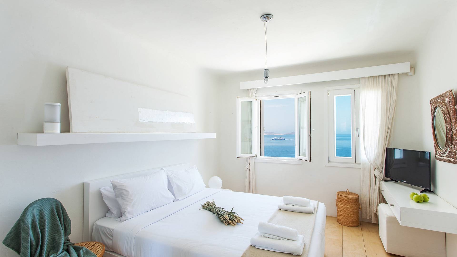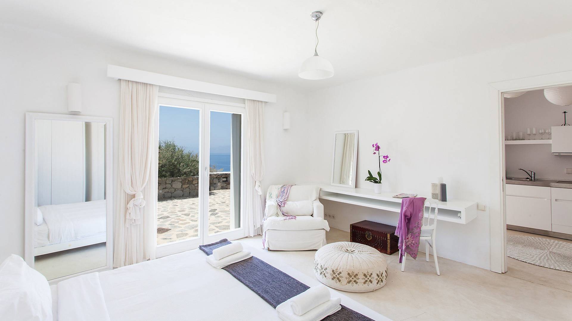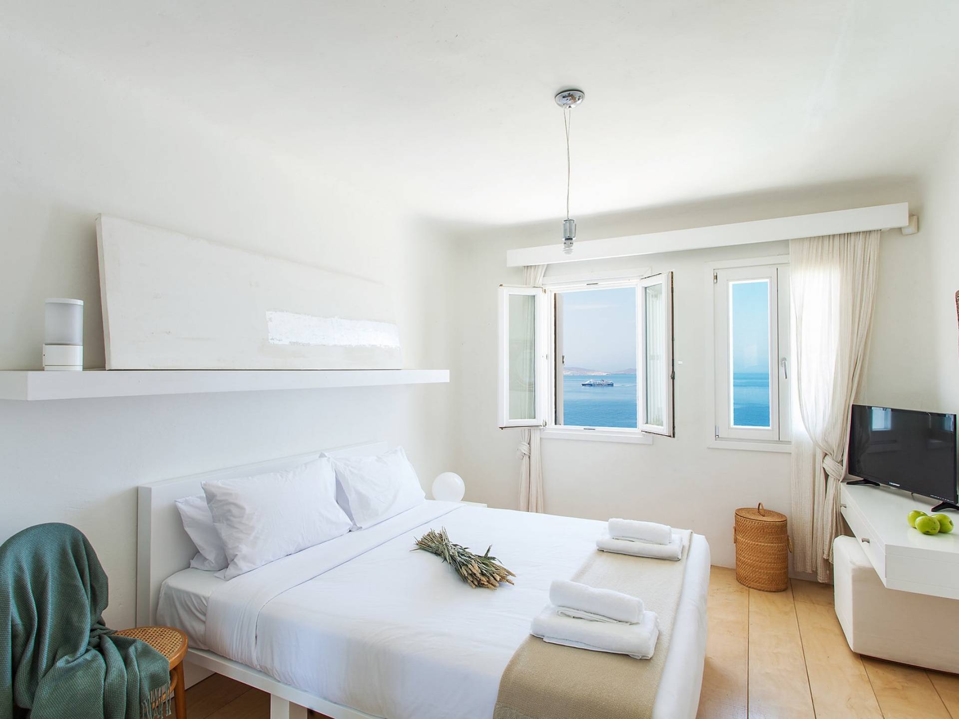 show more detailsAleomadra is located on the south-west tip of Mykonos Island, approximately 5 km from the airport and close to the beach of Platis Gialos, yet sheltered from the big crowds. Platis Gialos is one of the most popular beaches of the island, visited by thousands of people during summertime attracted by the golden sand and the wonderful turquoise crystalline waters. Platis Gialos is a fully organized, long beach, offering a variety of water sports facilities along with restaurants and bars. From Platis Gialos, regular taxi-boats go to the beaches of the southern coast which are Paranga, Agrari, Elia, Paradise, and Super Paradise. Close to Aleomandra, you will also find Ftelia beach, a tranquil sandy beach.