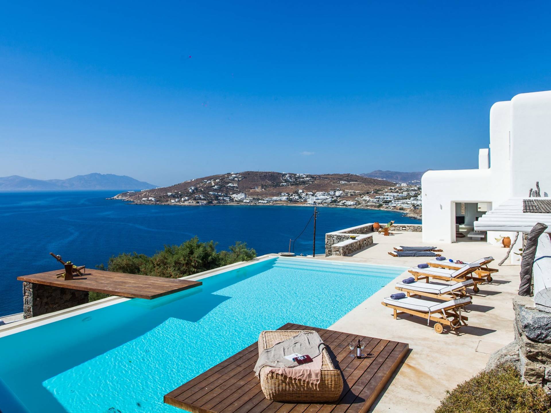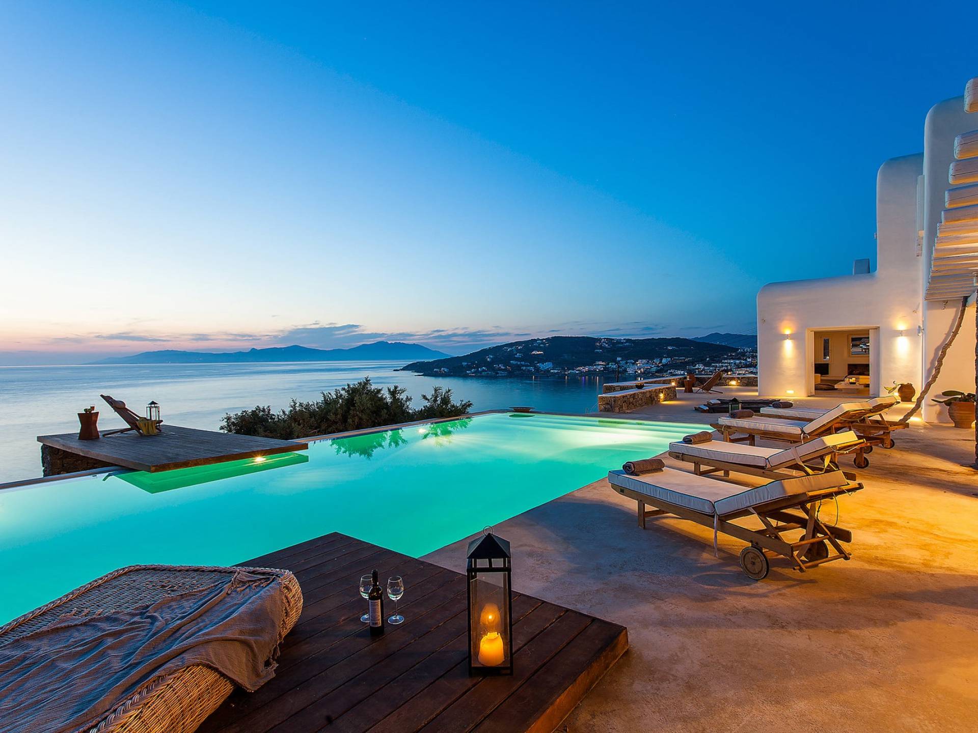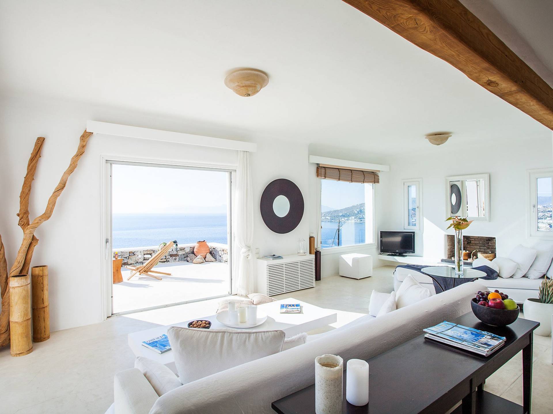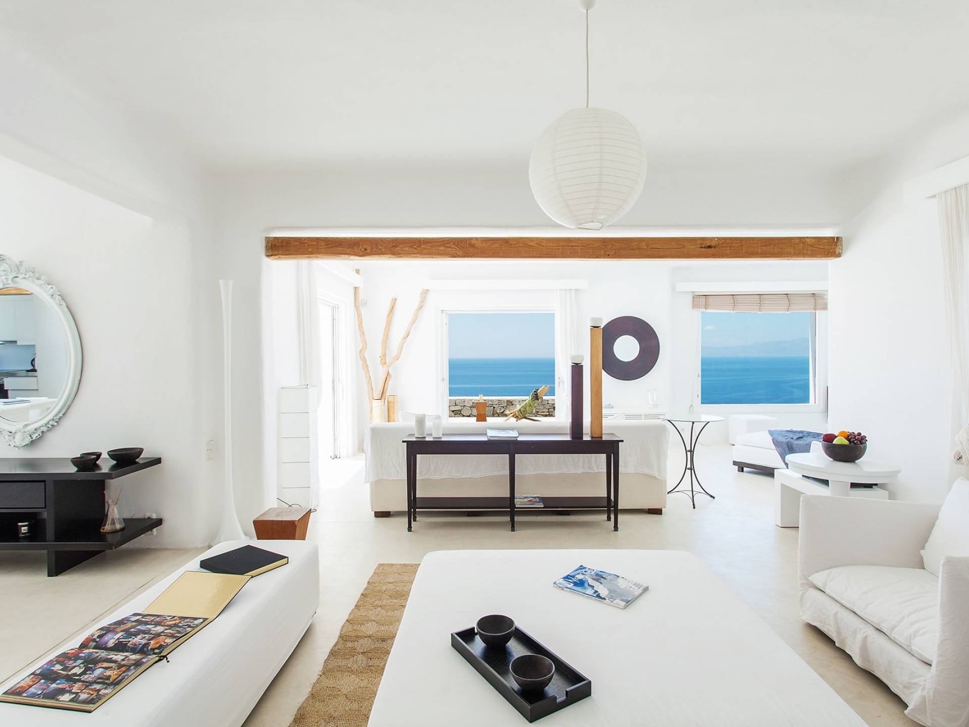 An exclusive cubist villa showcasing Cycladic elegance. Luxury living in aristocratic splendor high above the cliffs of Agios Ioannis. Enjoy wine-red sunsets over Delos, sacred in classical times to Apollo and Artemis. A breathtaking location with ever-changing Aegean seas and sun-drenched skies.