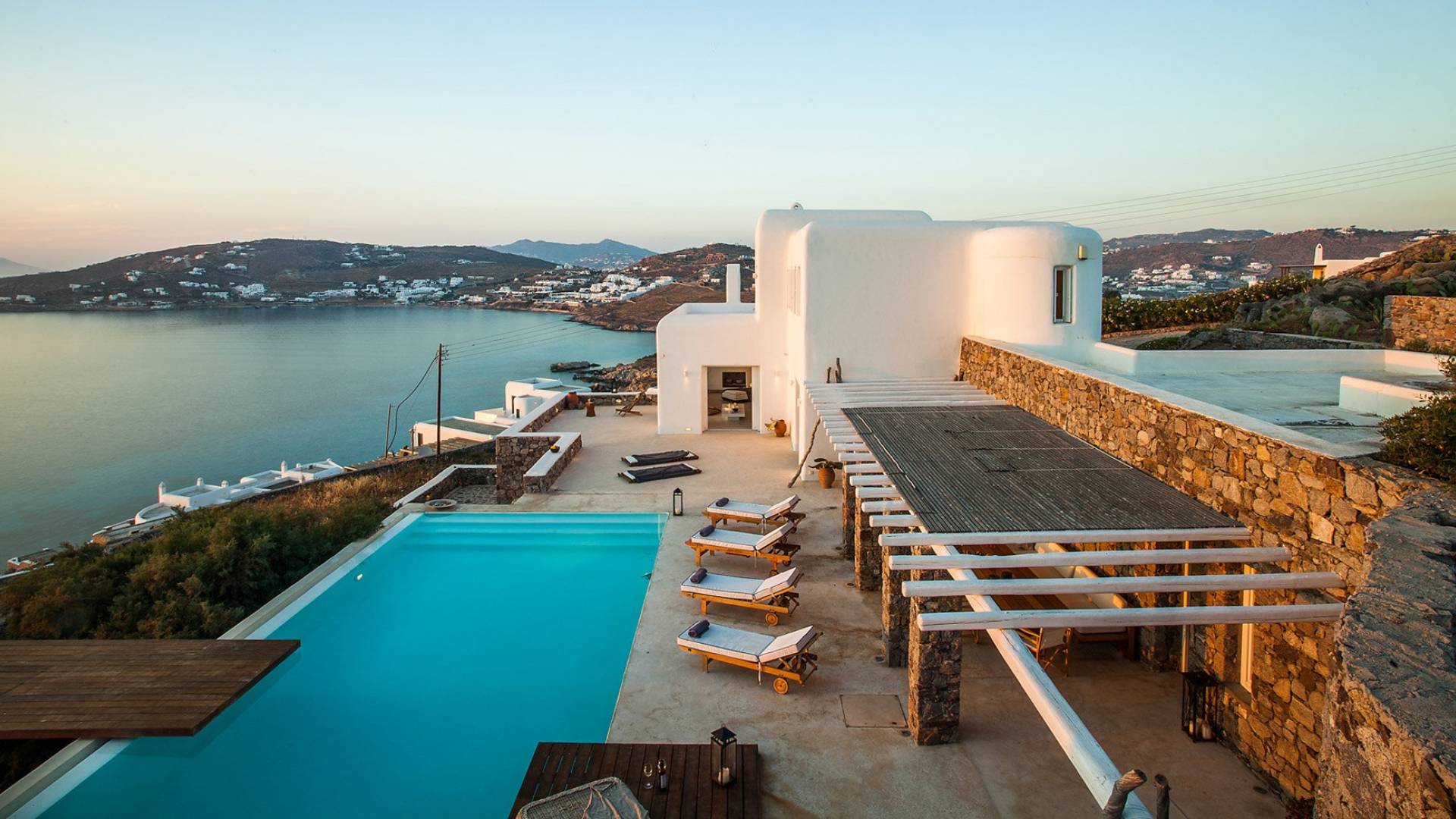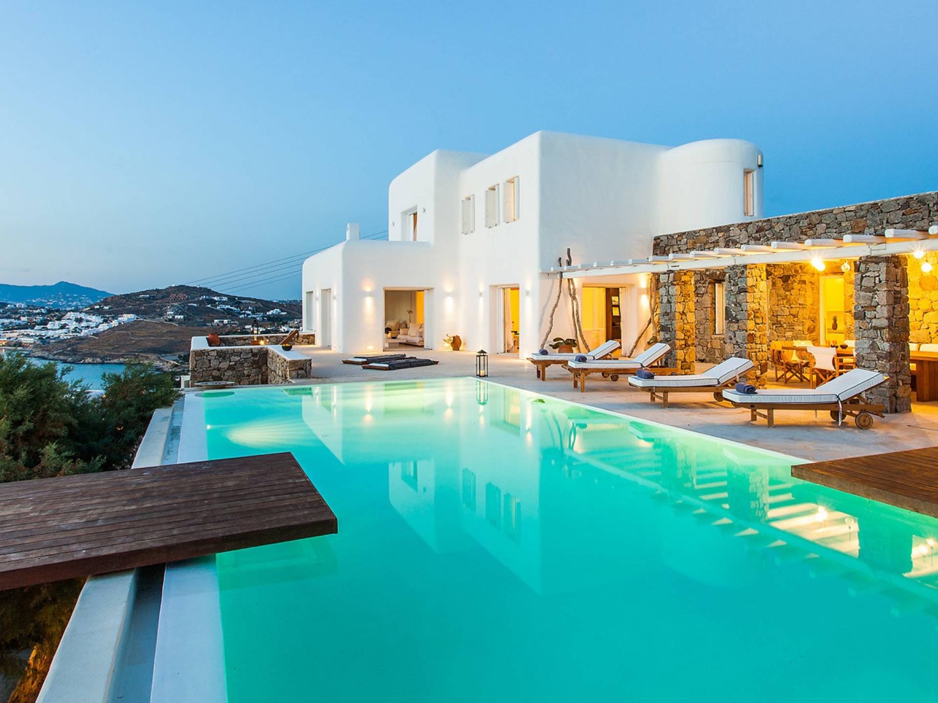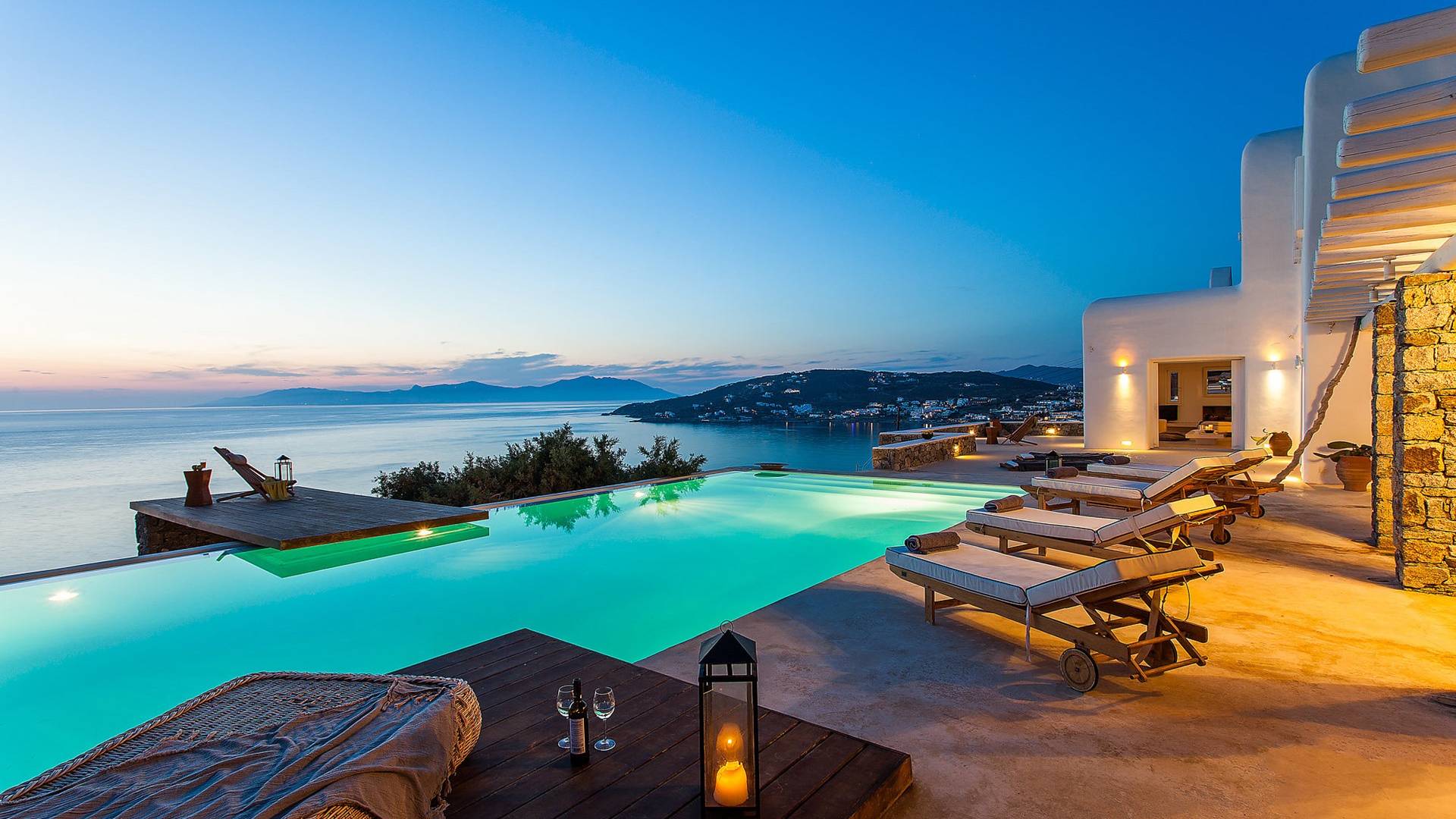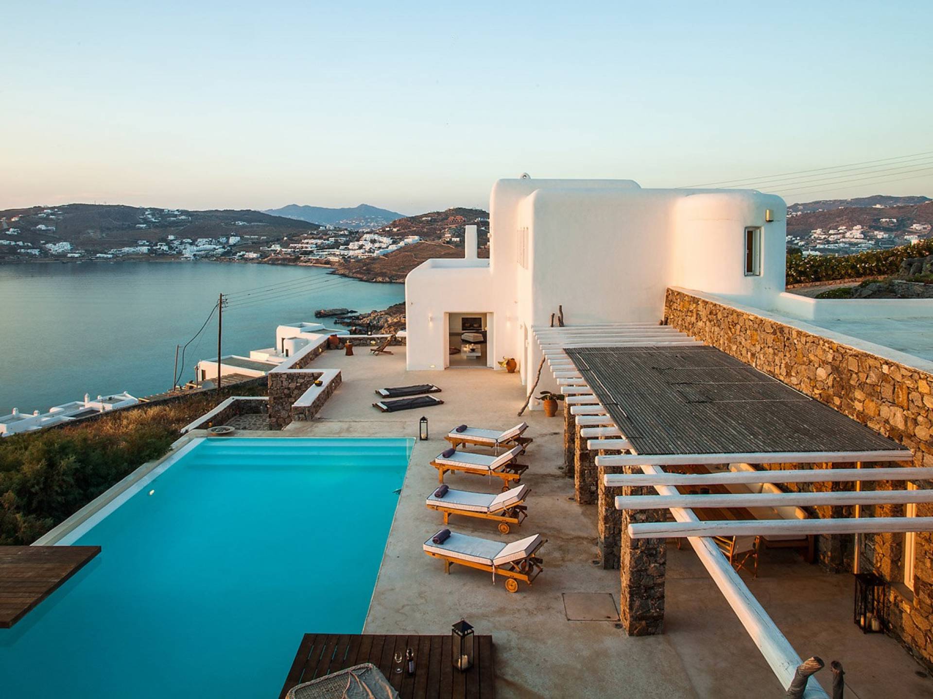 An exclusive cubist villa showcasing Cycladic elegance. Luxury living in aristocratic splendor high above the cliffs of Agios Ioannis. Enjoy wine-red sunsets over Delos, sacred in classical times to Apollo and Artemis. A breathtaking location with ever-changing Aegean seas and sun-drenched skies.