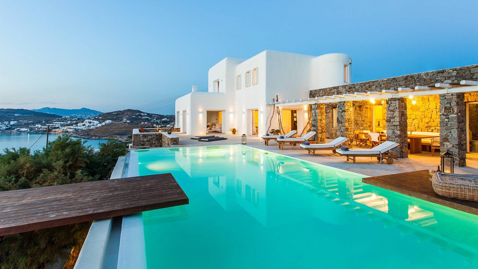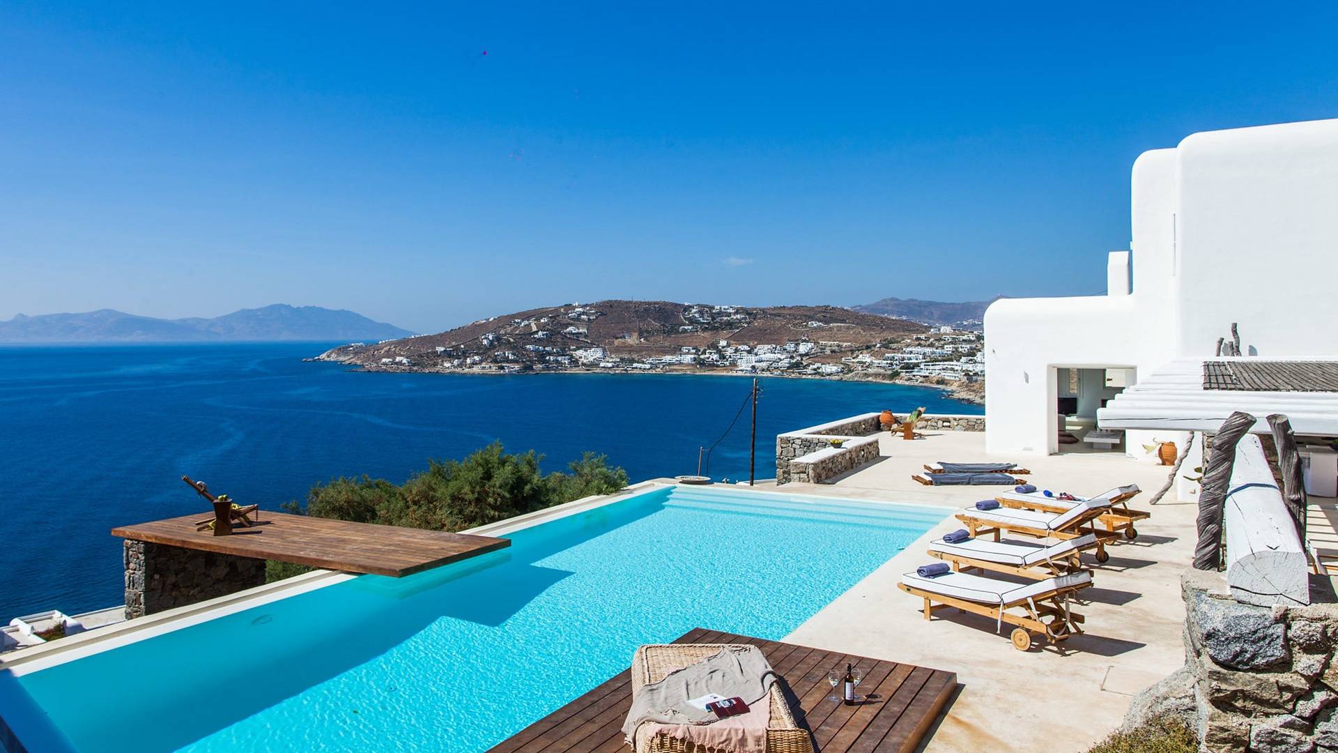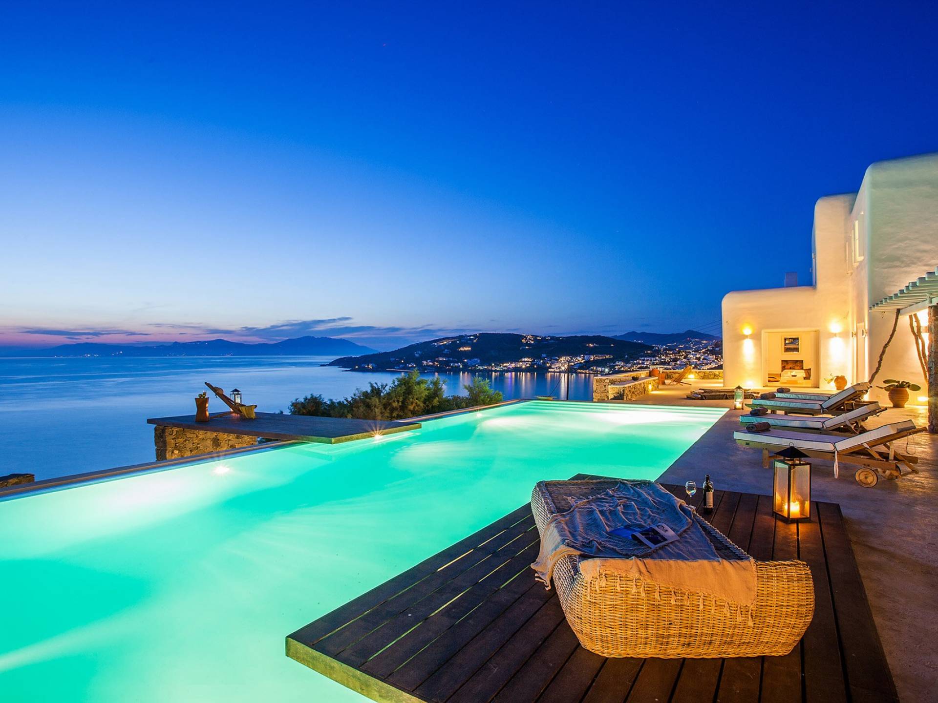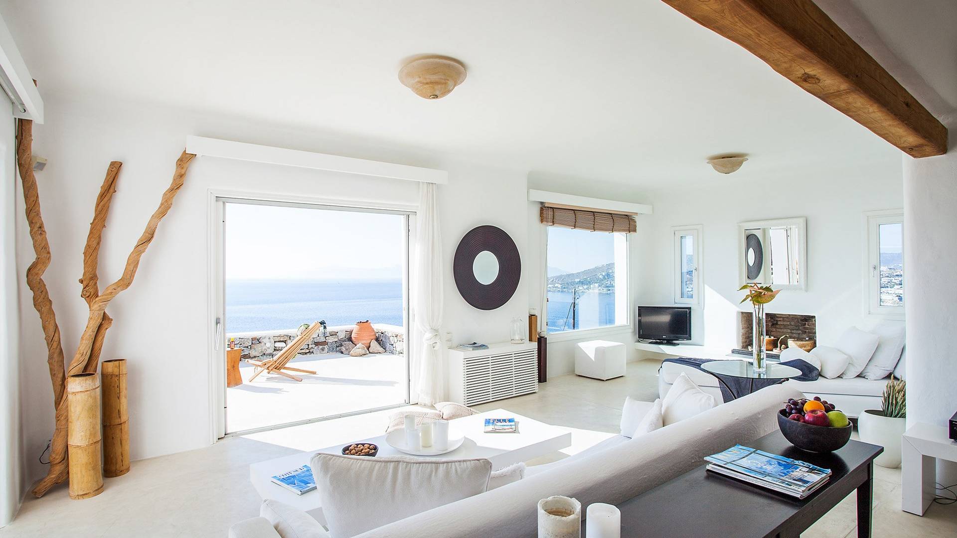 An exclusive cubist villa showcasing Cycladic elegance. Luxury living in aristocratic splendor high above the cliffs of Agios Ioannis. Enjoy wine-red sunsets over Delos, sacred in classical times to Apollo and Artemis. A breathtaking location with ever-changing Aegean seas and sun-drenched skies.