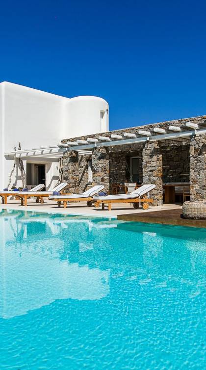Laughter-filled al fresco summer lunches will linger long in your memory of this enchanting home. Late nights under the stars with a soft island wind blowing through your hair are the stuff that holiday dreams are made of. A spacious, airy, and sophisticated interior elegantly combines period touches with the best of contemporary Mykonos style and can house up to ten guests in luxurious comfort.
