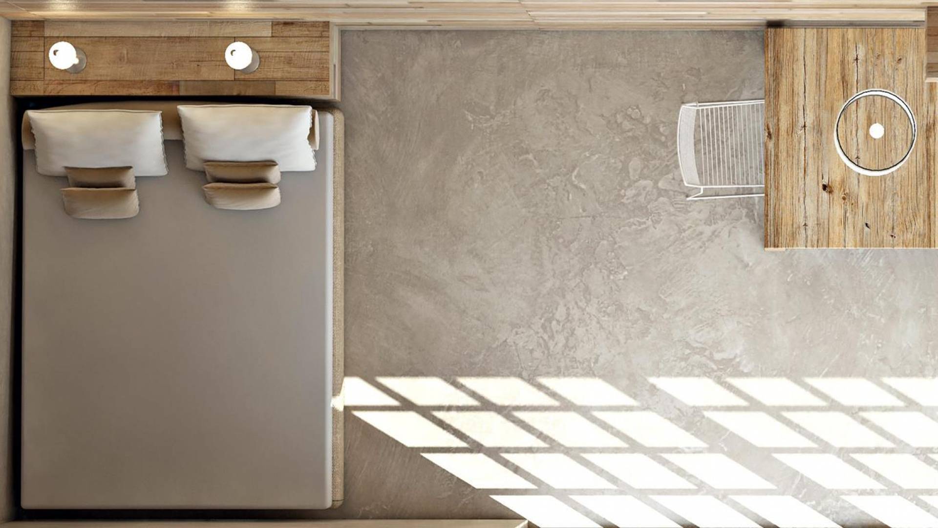 Our deluxe suite features a similarly inviting minimalist style. With a beautifully decorated interior, premium bedding, and luxury toiletries and amenities, it provides a haven of comfort and relaxation after a long day at the beach. Complete with exclusive designer furniture and a hi-tech electronic entertainment system, the deluxe room is also fully air-conditioned and features a private balcony with a sea view so you can gaze at the Aegean sunset until your heart’s content.