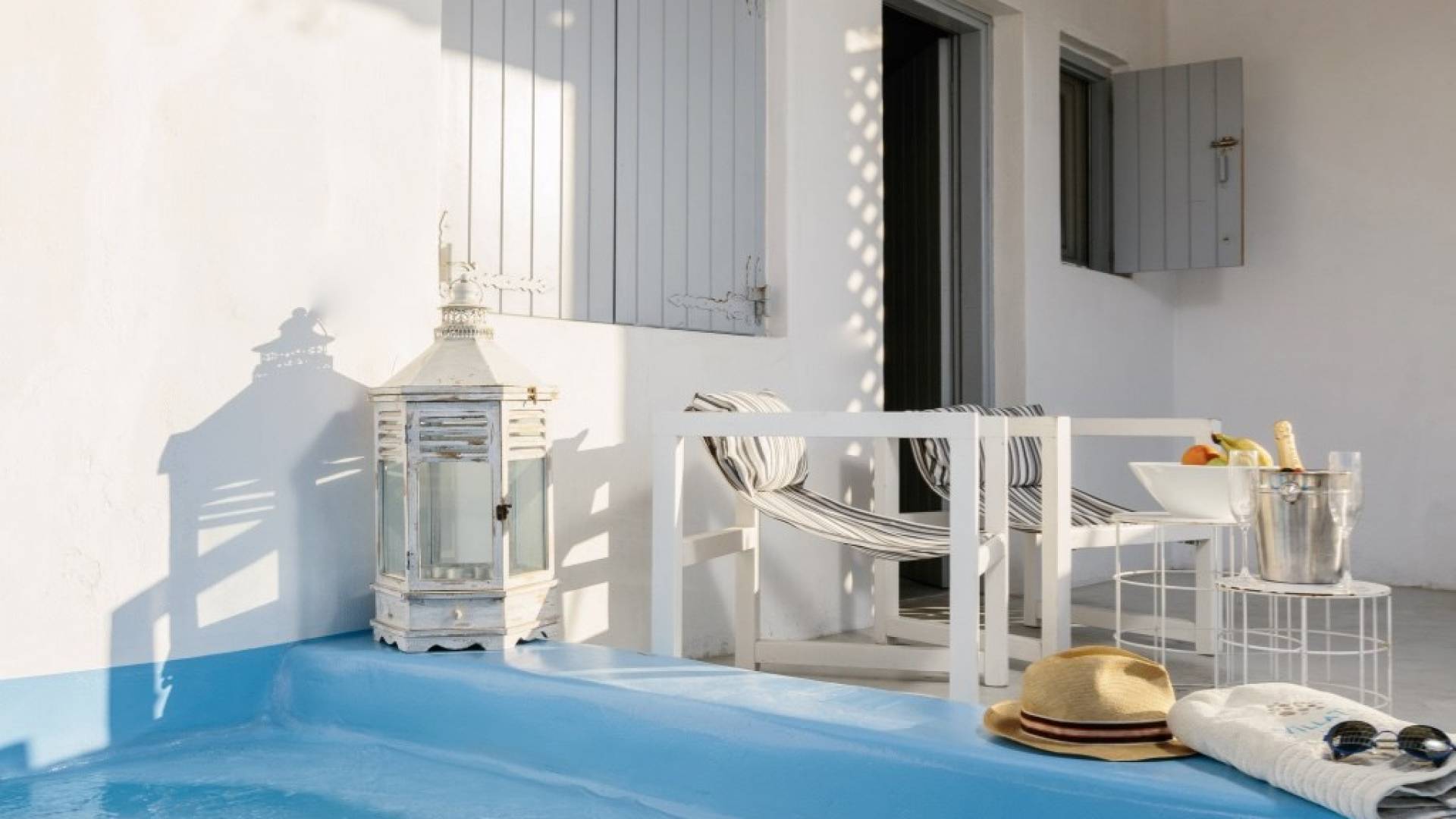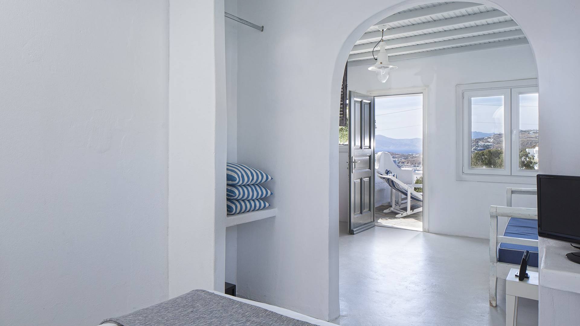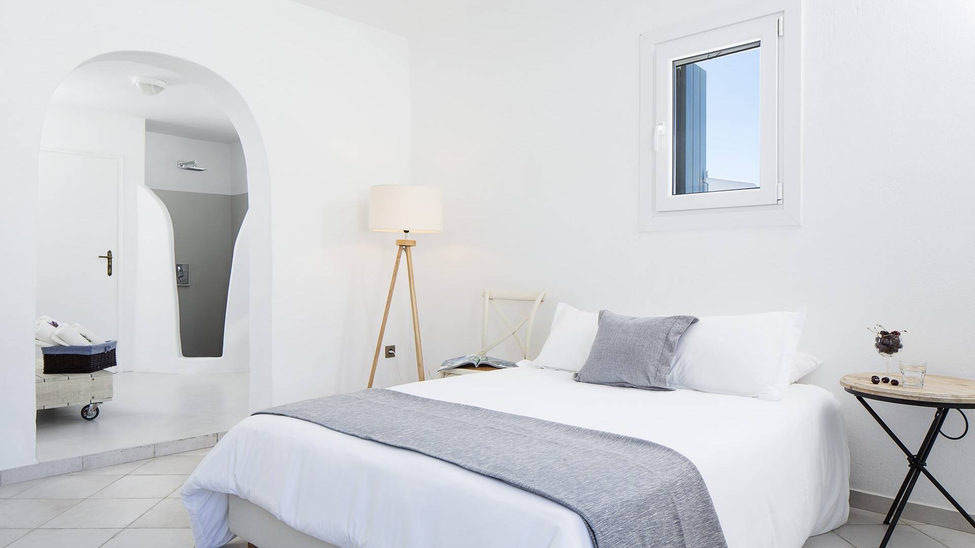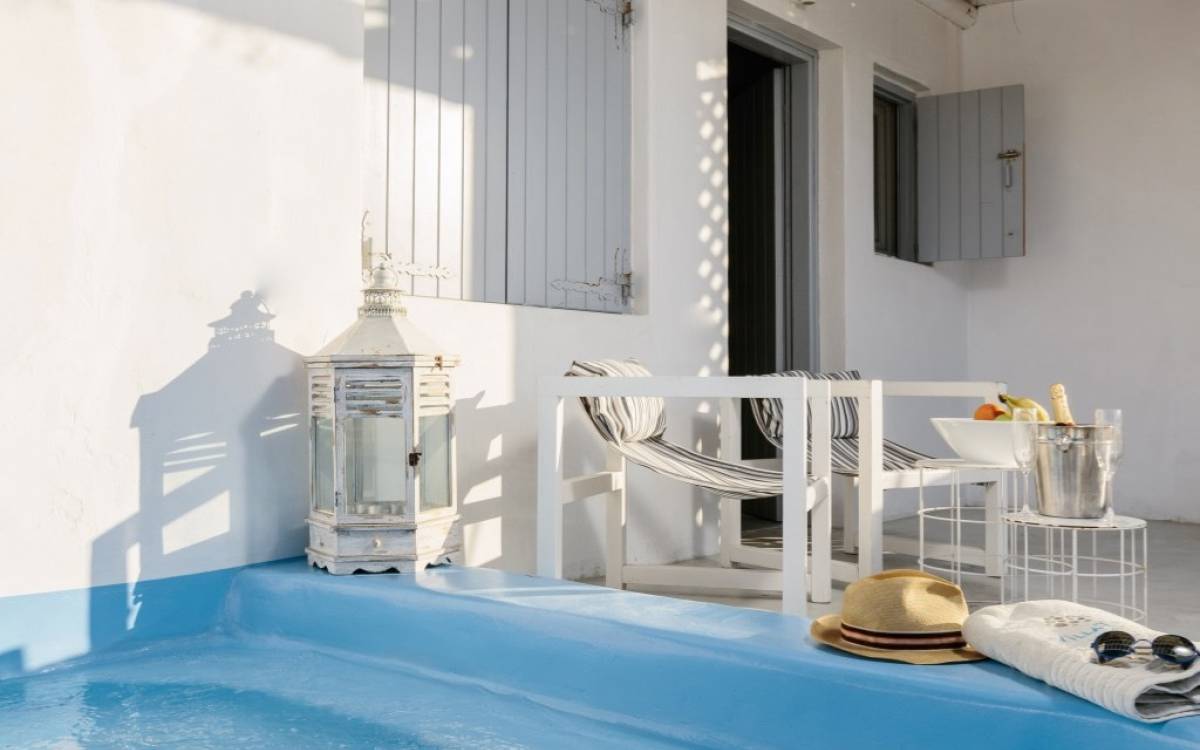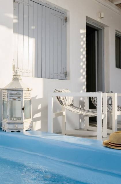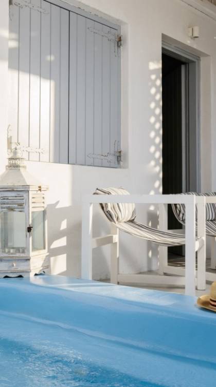 Built-in the style of true Myconian architecture, the minimalist interiors of each suite and villa epitomize contemporary design furnished with authentic details. Whitewashed walls, smooth arches and open plan spacing is seen throughout the complex create a relaxing and soothing ambiance. Each suite and villa has a different size and character of its own, to suit all kinds of groups. All rooms are air-conditioned, and have wifi and direct access to the shared pool & lounge areas.