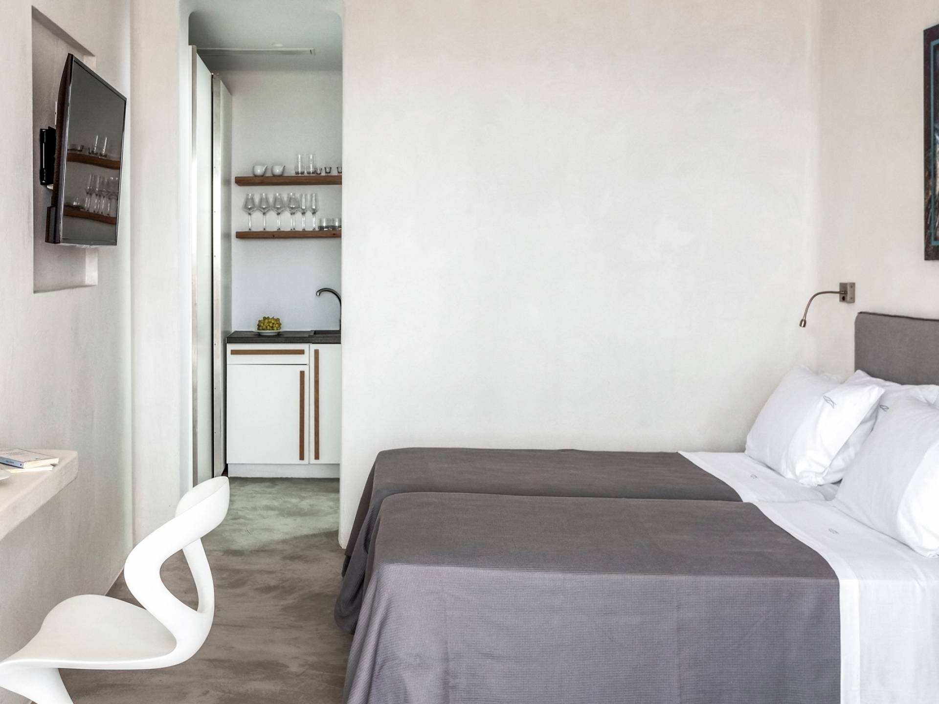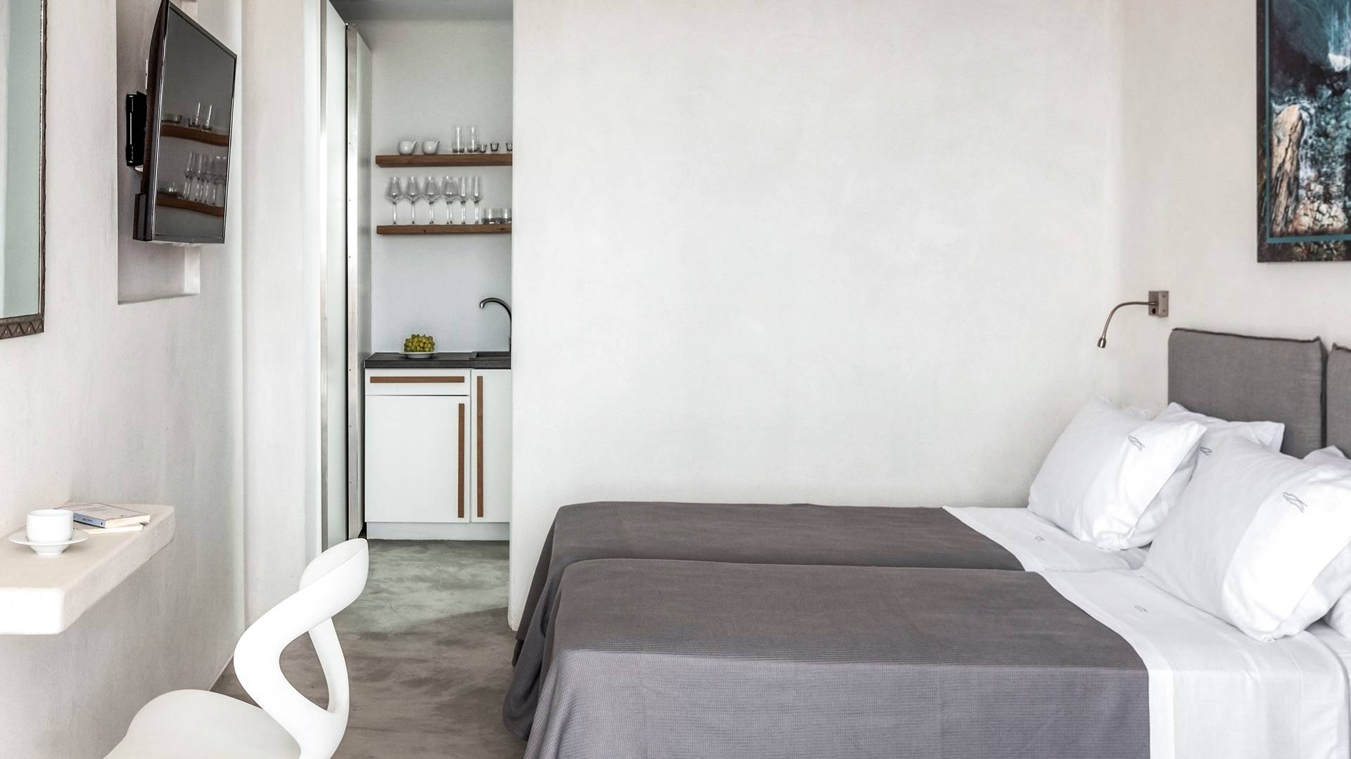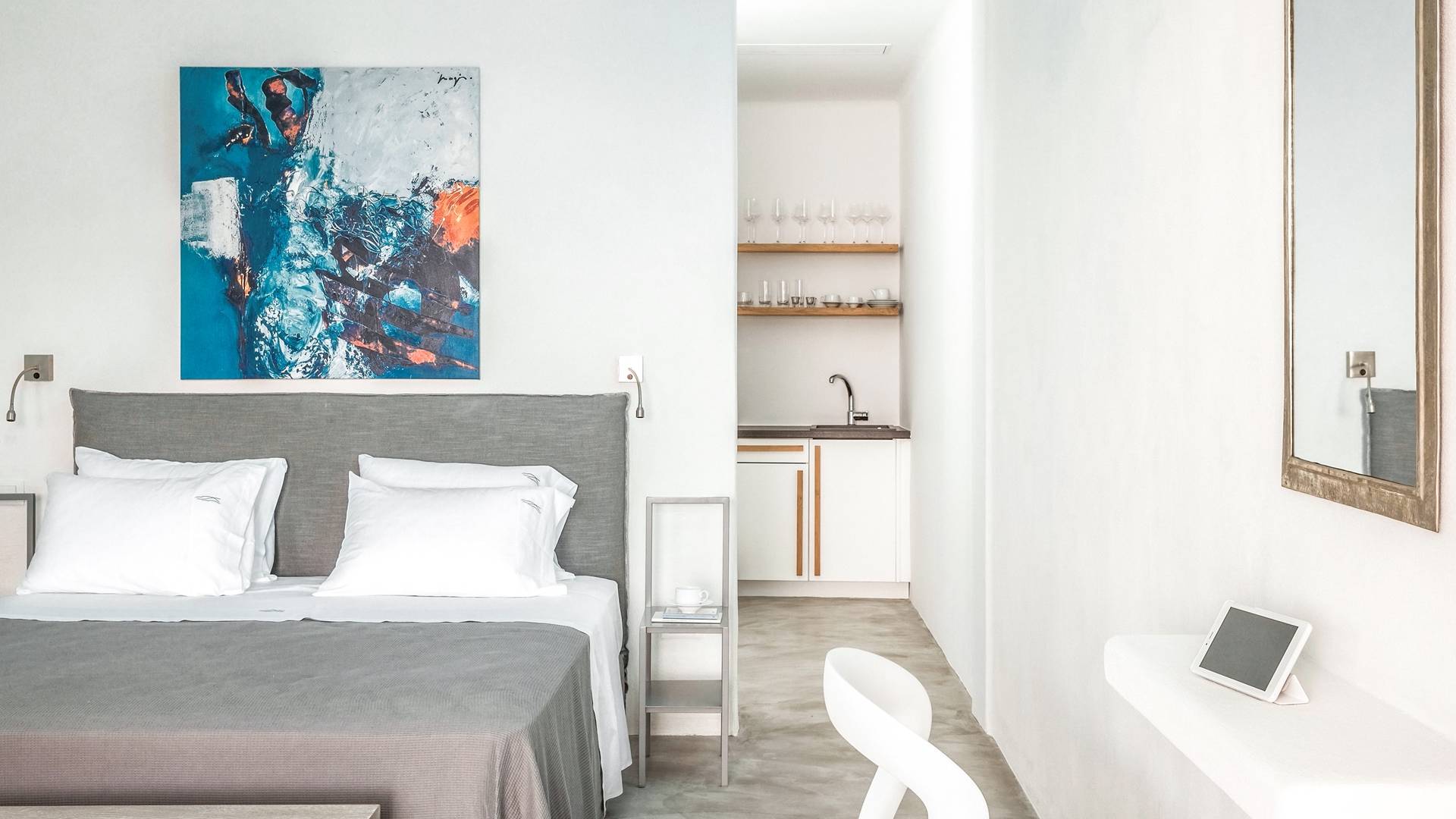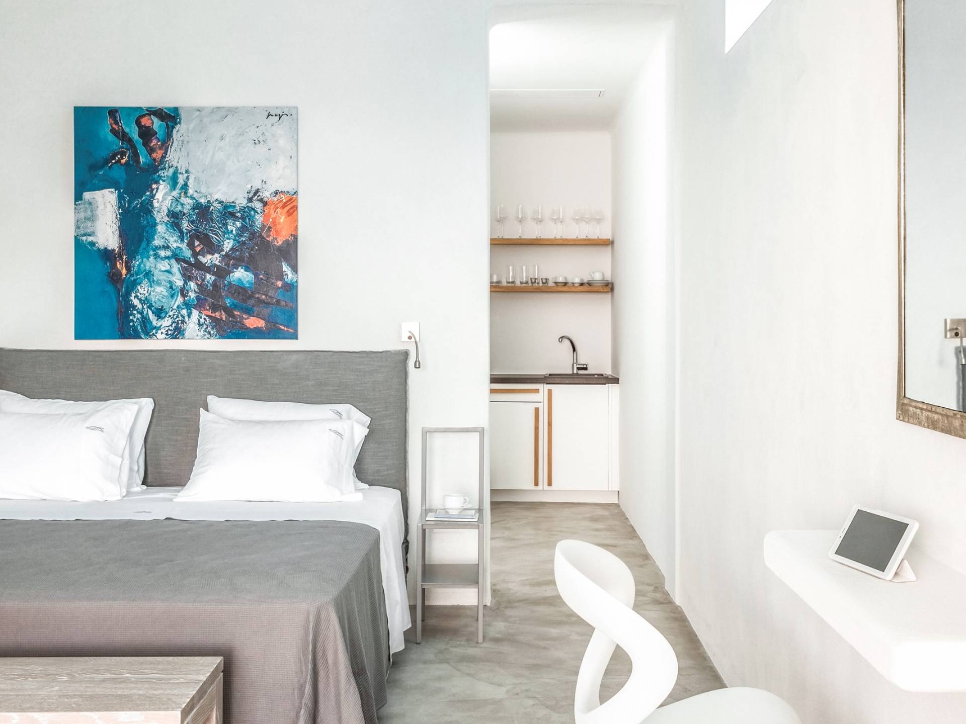 Villa Ariel has three bedrooms in the main structure, three master suites in the guest quarters, and one staff room with private entry. Many of the bedrooms have en-suite bathrooms and premium bedding to ensure a restful night's sleep. Villa Ariel provides the ideal atmosphere for a luxurious vacation in Mykonos, with its breathtaking scenery, comfortable living rooms, and modern amenities