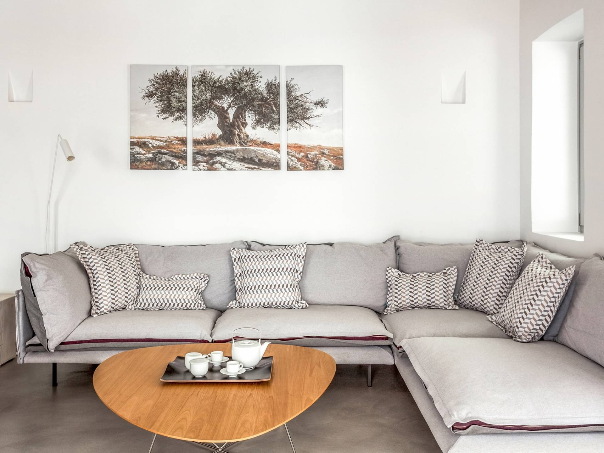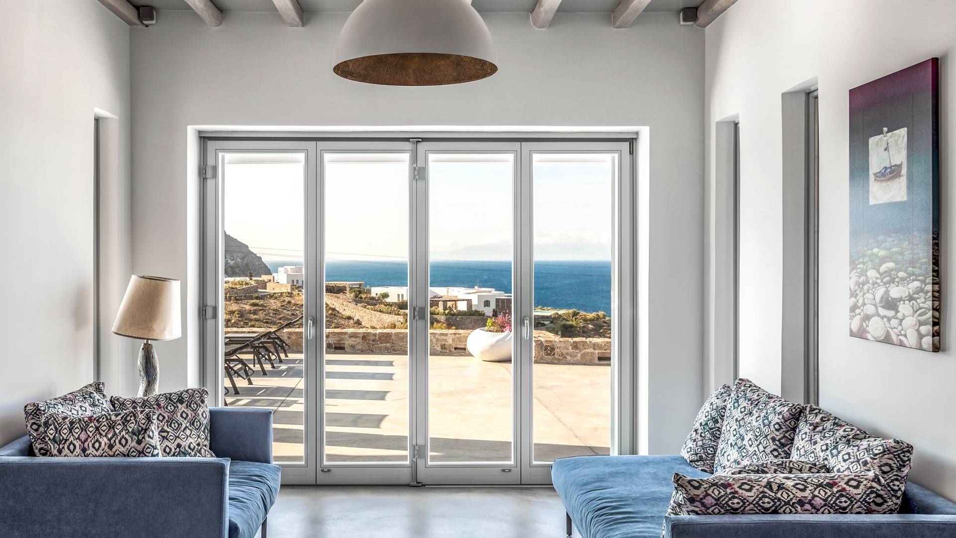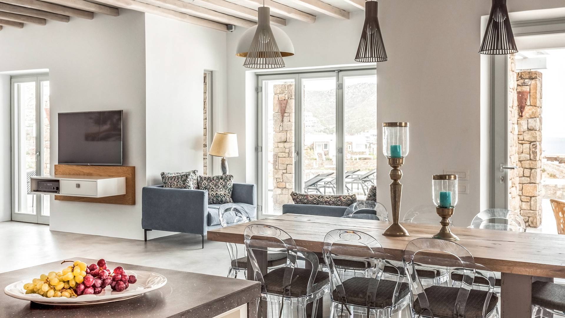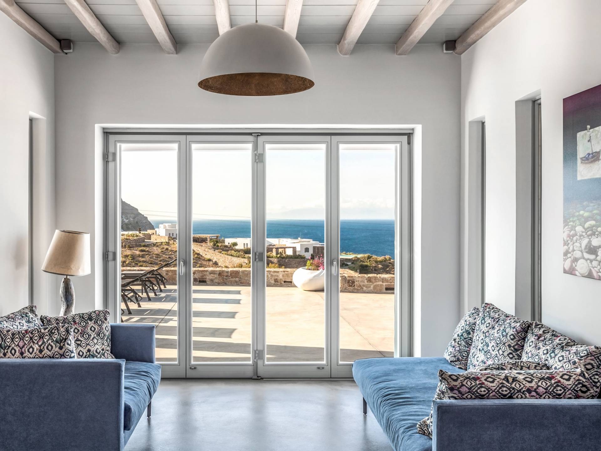 From diving in the pool to sunbathing on the sun loungers to organizing barbecue parties, visitors have several chances to relax and have fun outside while admiring the unrivaled sea views. Within, the luxurious villa has chic features as well as essential entertainment amenities such as satellite TV, indoor and outdoor music systems, and Wi-Fi throughout. Because of the large screens, the interiors are light and airy, as well as welcoming, thanks to the neutral color palette and soft furnishings. The spacious open-plan living and dining area leads to a new, fully-equipped kitchen where visitors can prepare delectable home-cooked meals.