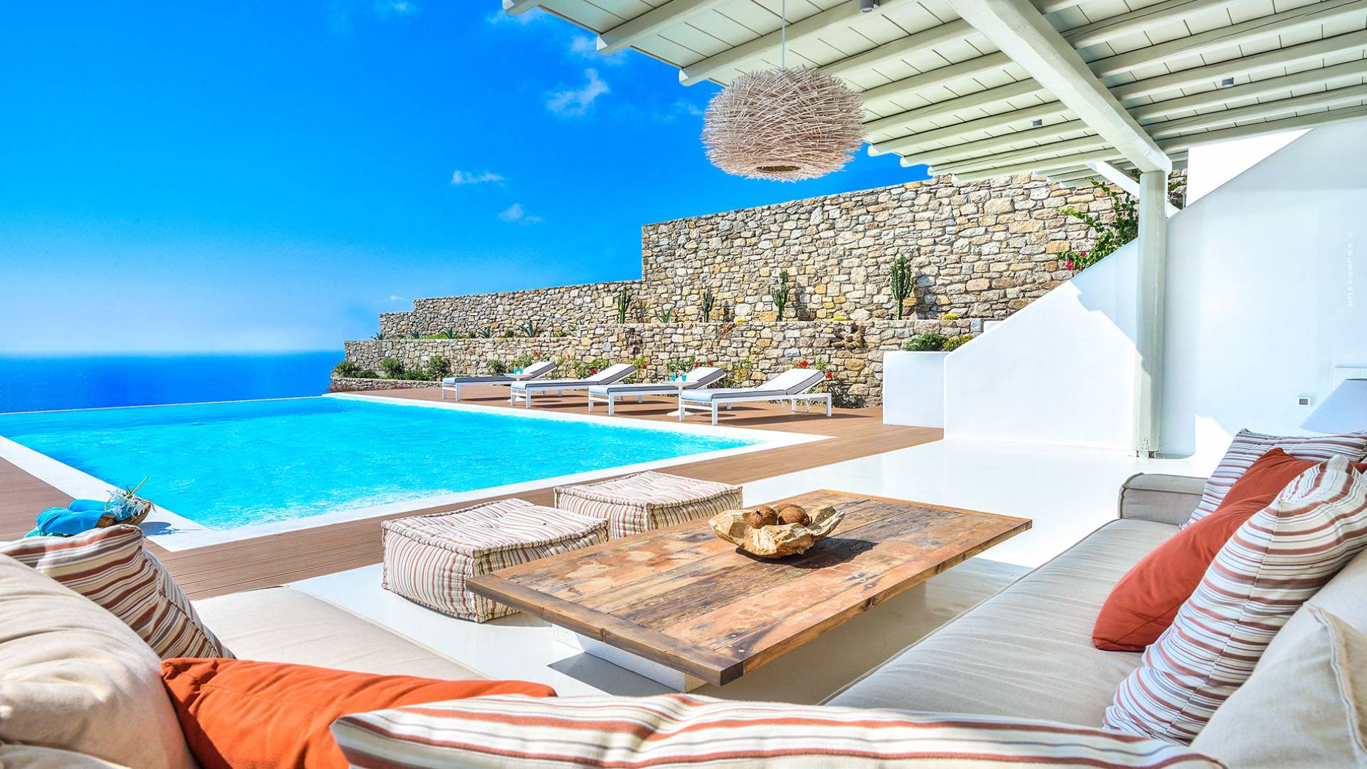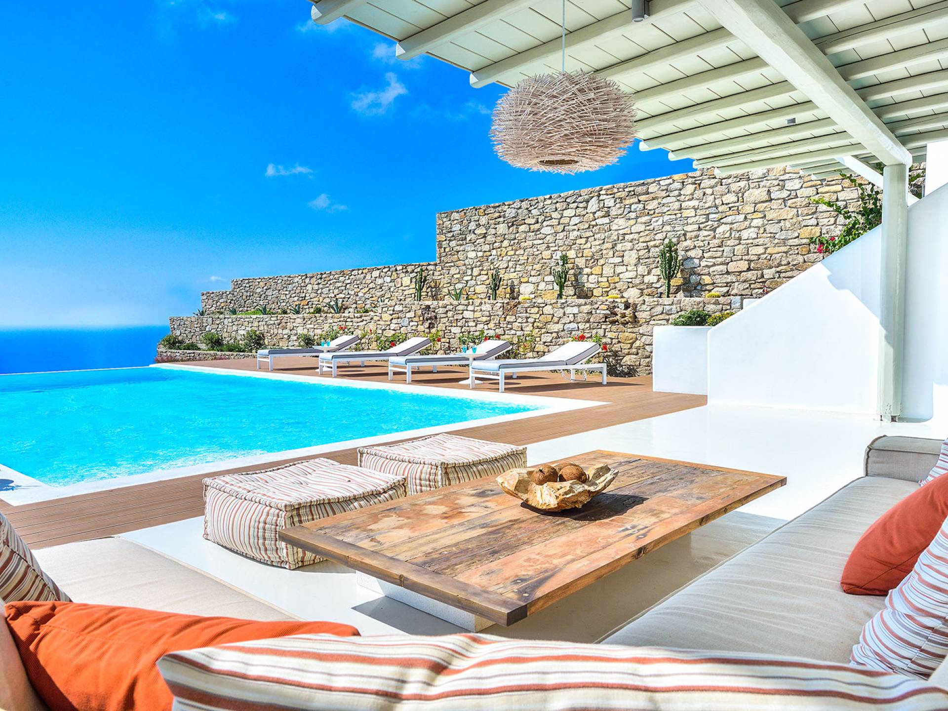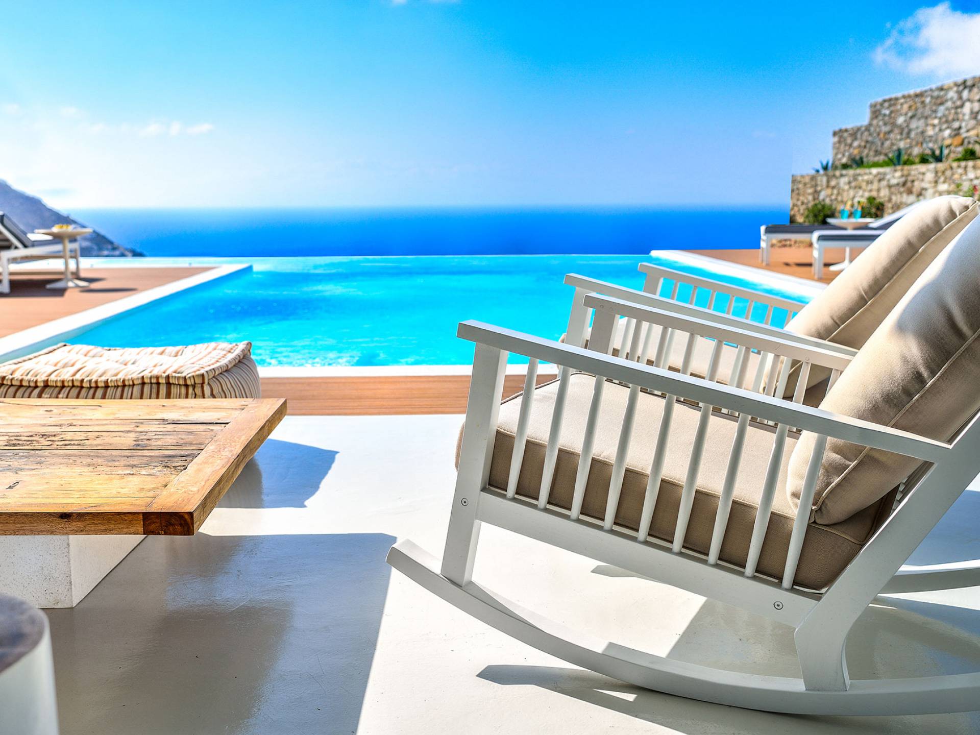 Villa Daedalus has taken its name from one of the most well-known and fascinating Greek Myths, that of Daedalus and Icarus who flew high in the sky. The guests may truly experience the feeling of standing between heaven and earth when gazing at the everlasting view over the Aegean waters which touch the sky at the horizon.