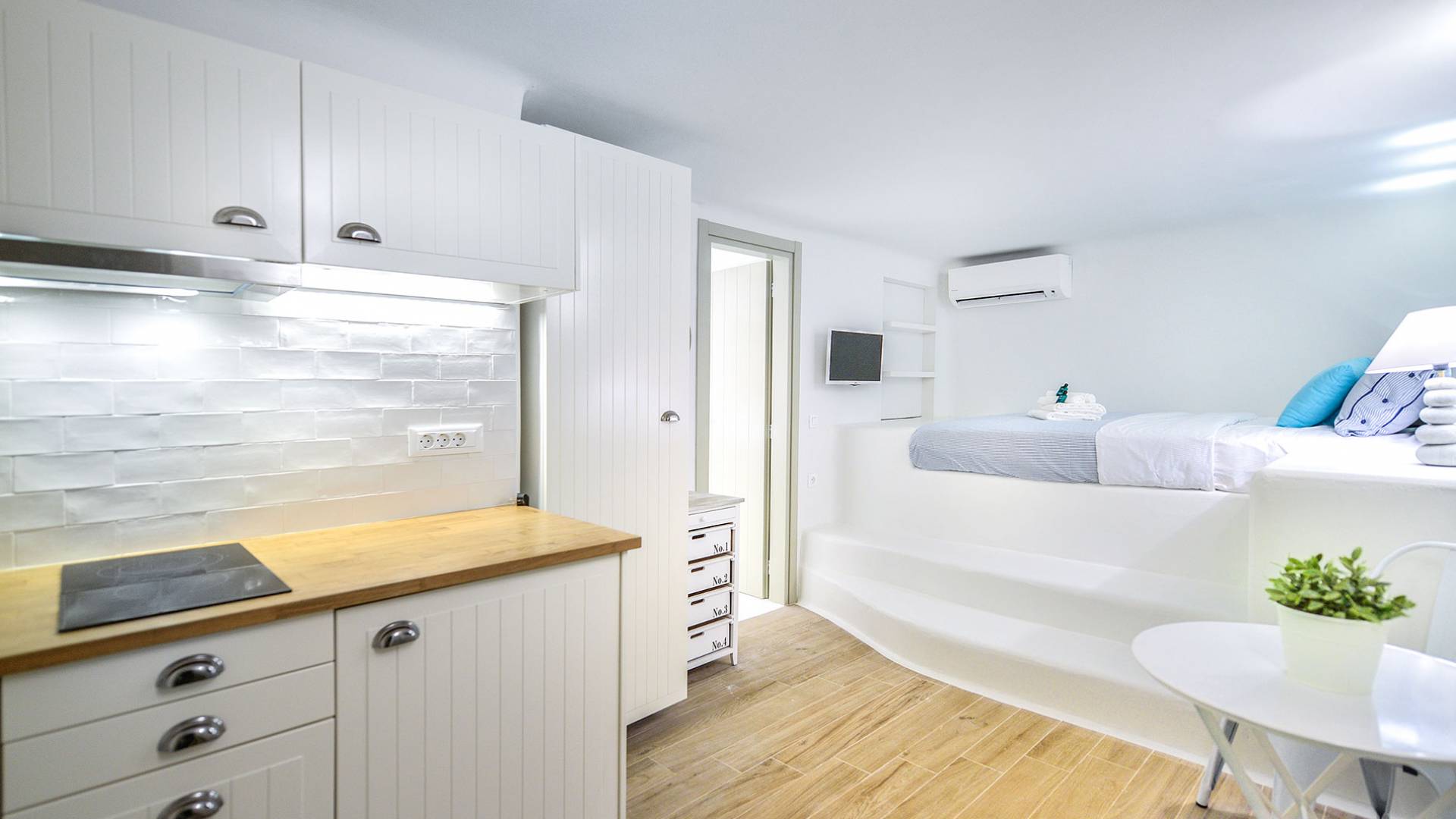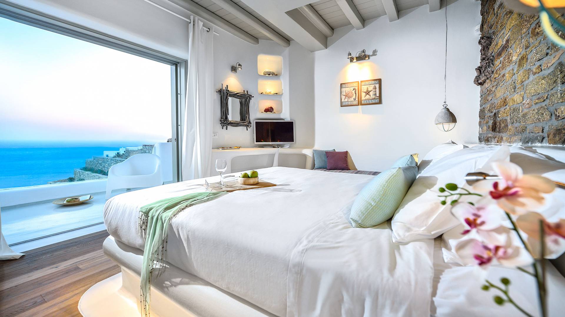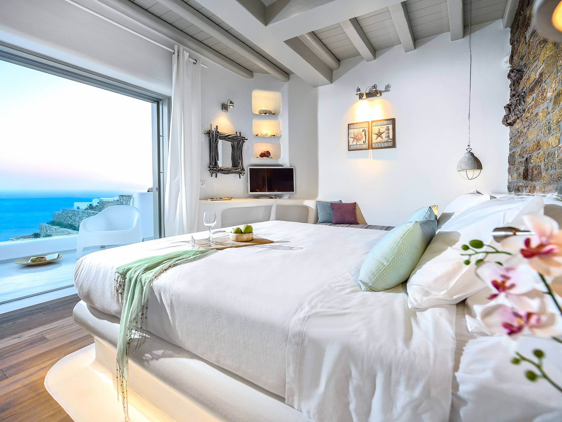Villa Daedalus has taken its name from one of the most well-known and fascinating Greek Myths, that of Daedalus and Icarus who flew high in the sky. The guests may truly experience the feeling of standing between heaven and earth when gazing at the everlasting view over the Aegean waters which touch the sky at the horizon.