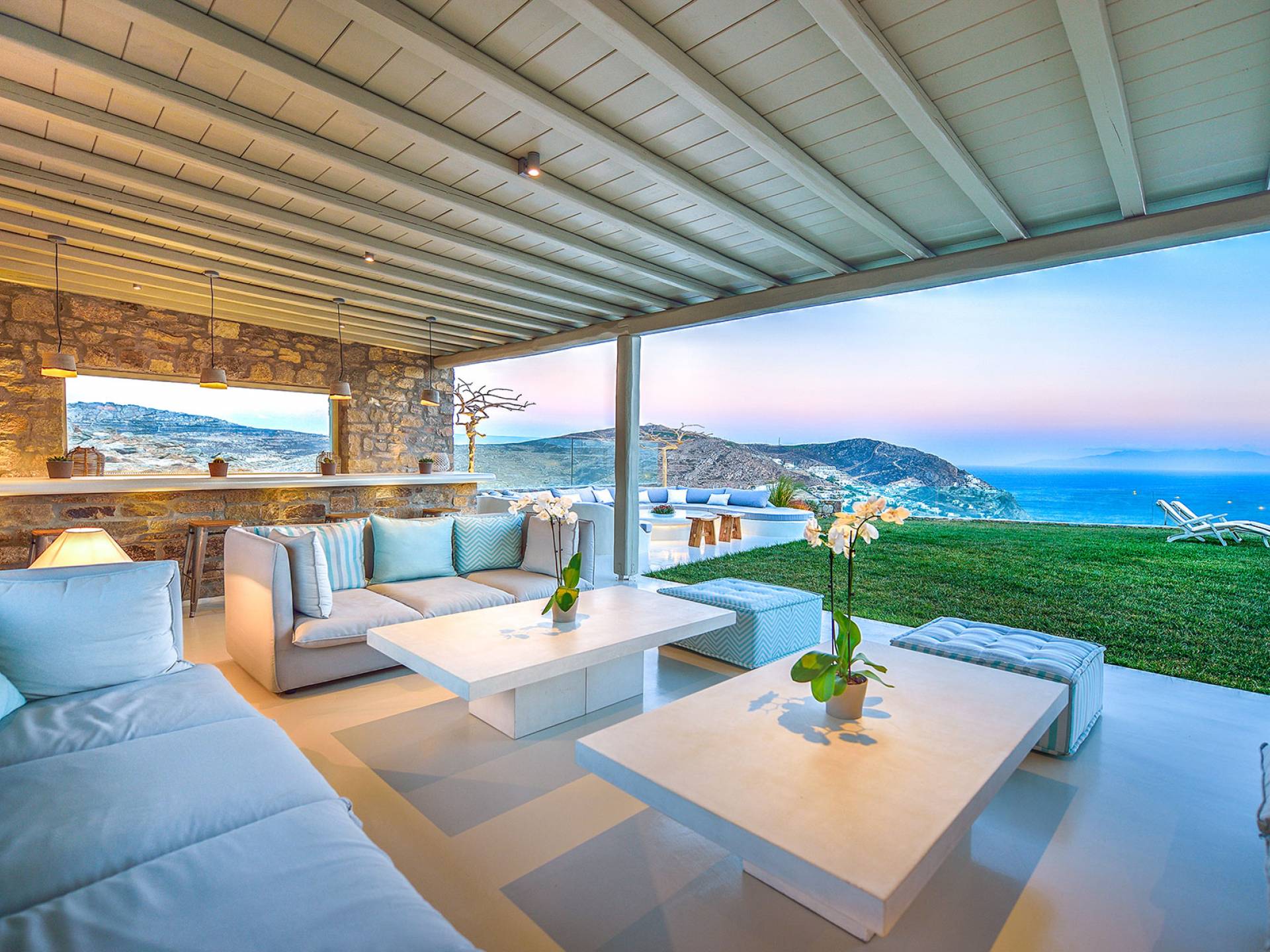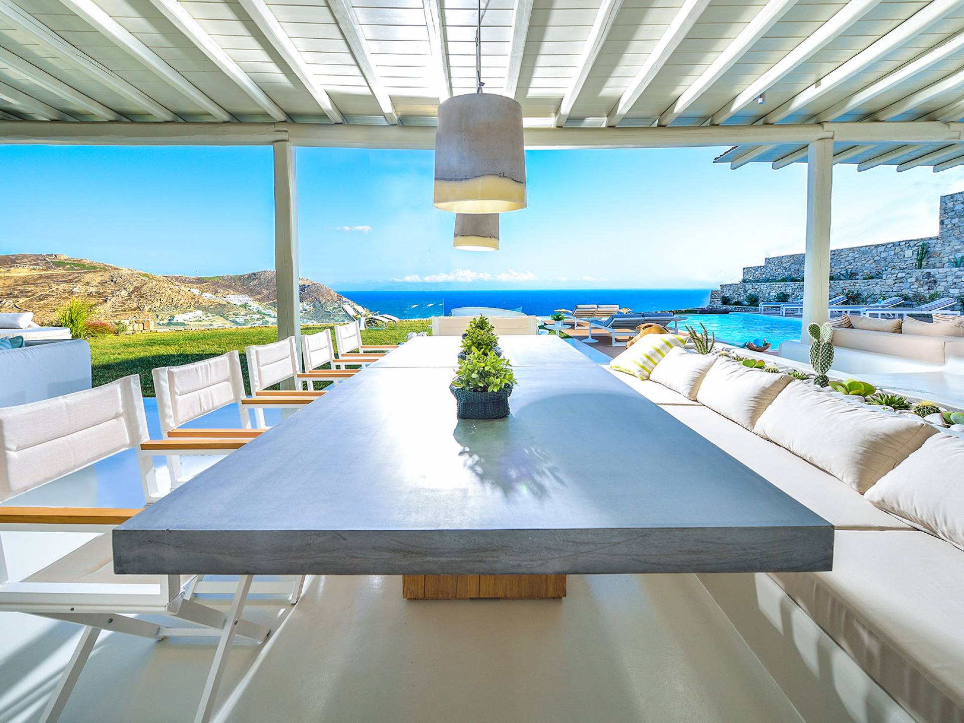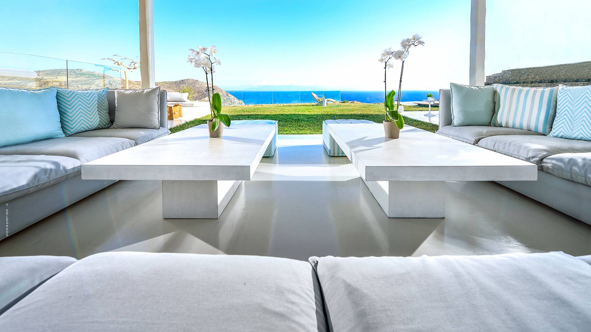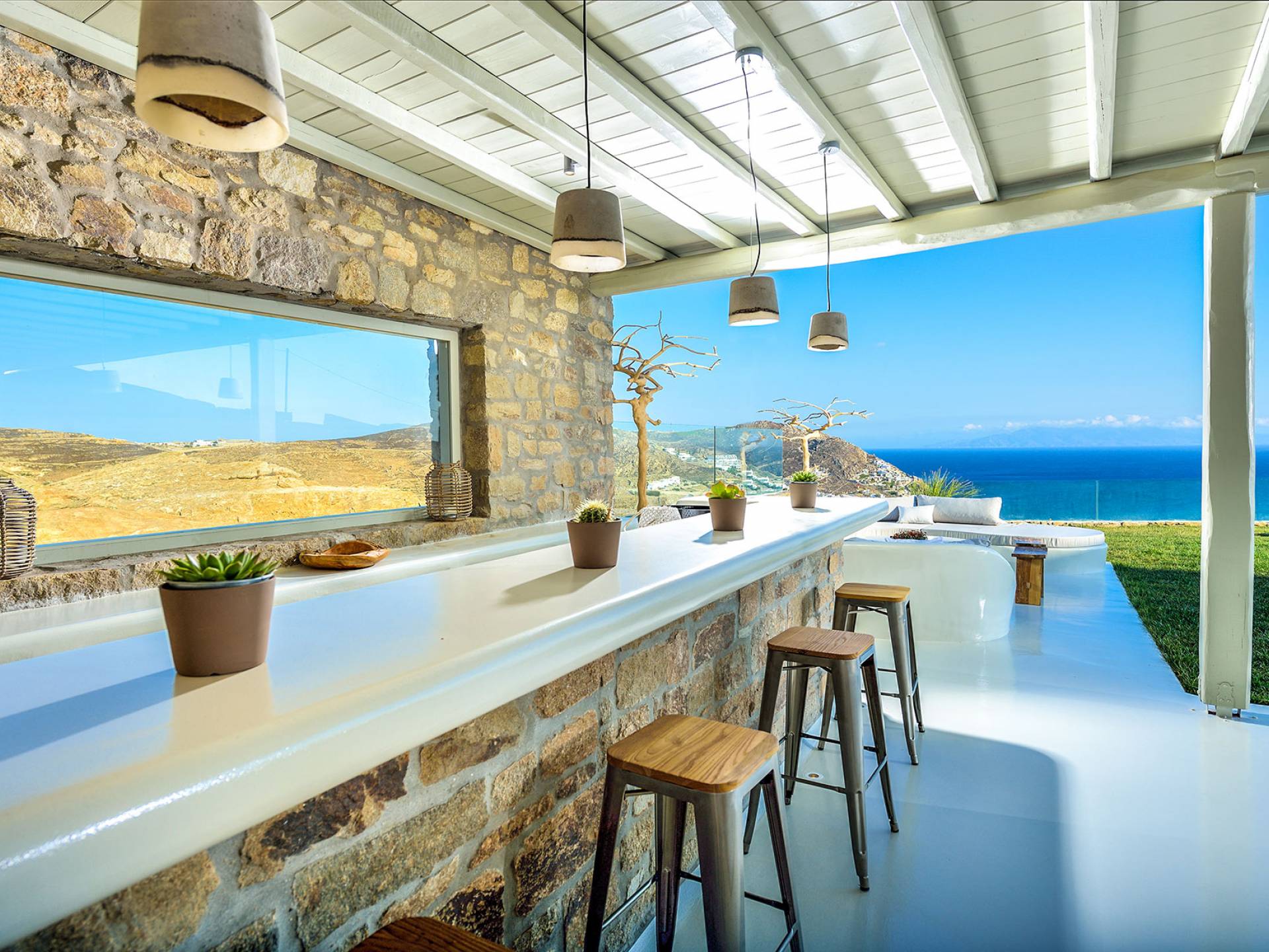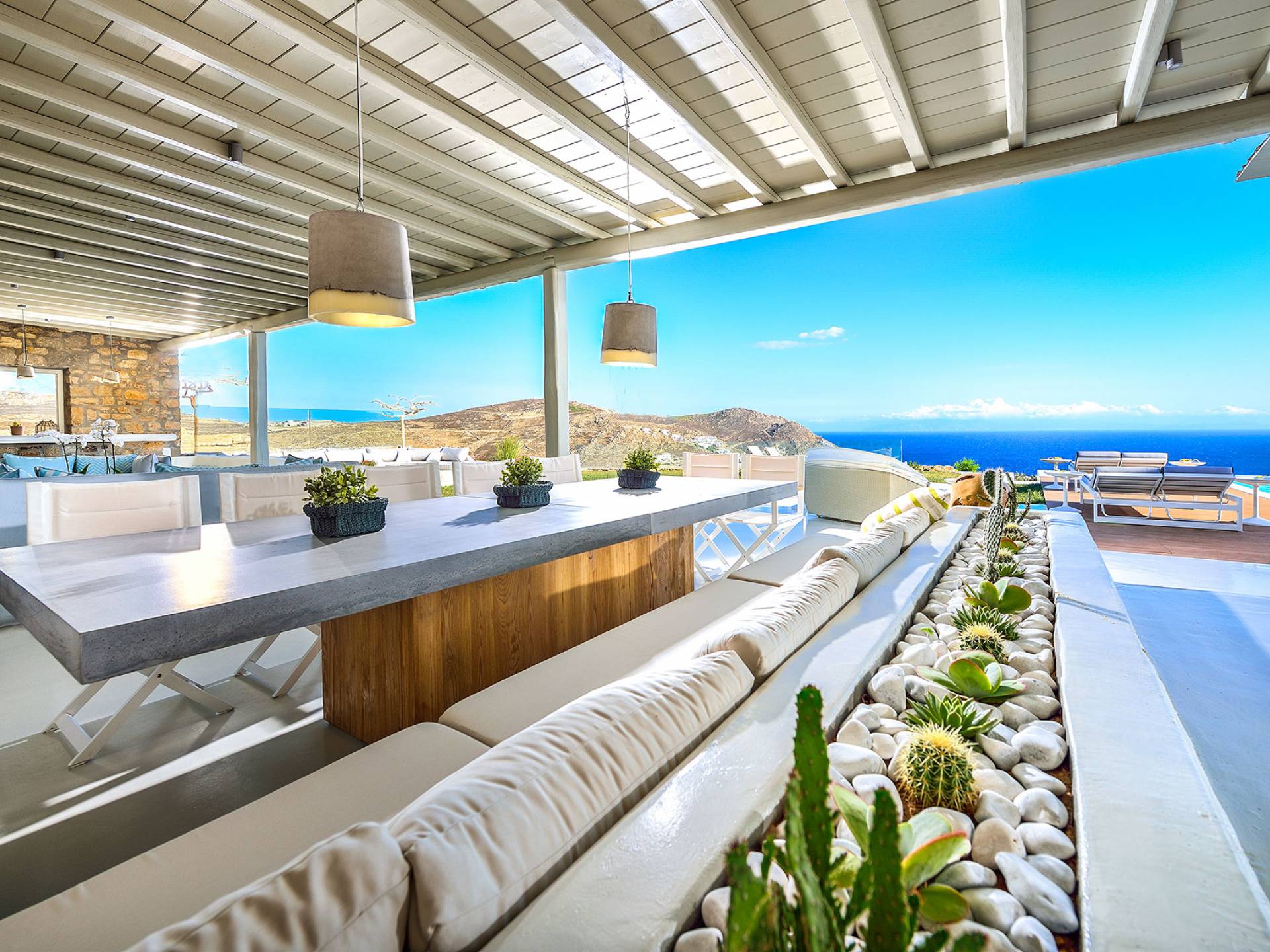 The 2.000 sq. m. plot with flowers, cactuses and other decorative plants give the guests an abundance of spaces to enjoy and offer the opportunity to relax on the exquisite outdoor area with its Infinity Pool (which is surrounded by grass), multiple large lounges and the dining area with a bar and a built-in BBQ. A private parking lot for up to six cars can also be found within the Villa’s grounds while the region of Elia is less than a 20 minutes' drive from Mykonos Town and the island’s airport.