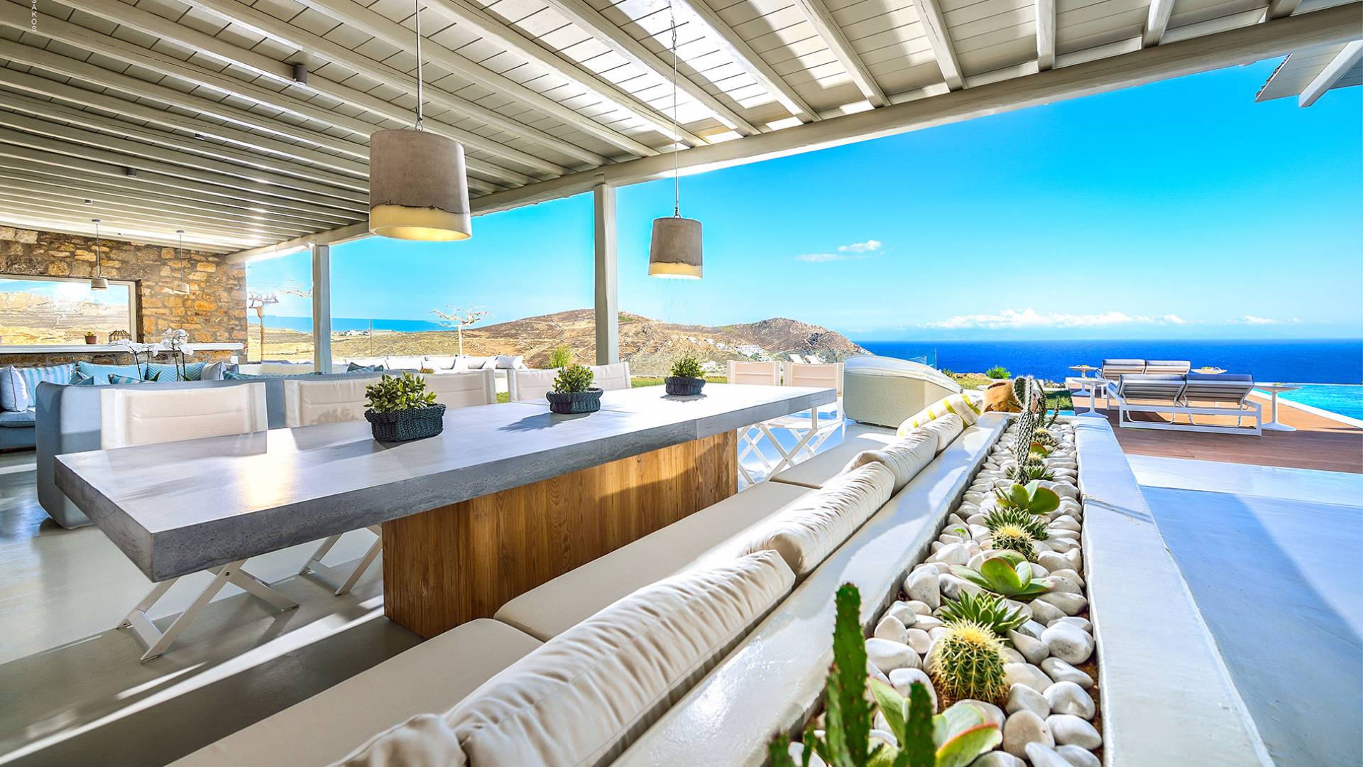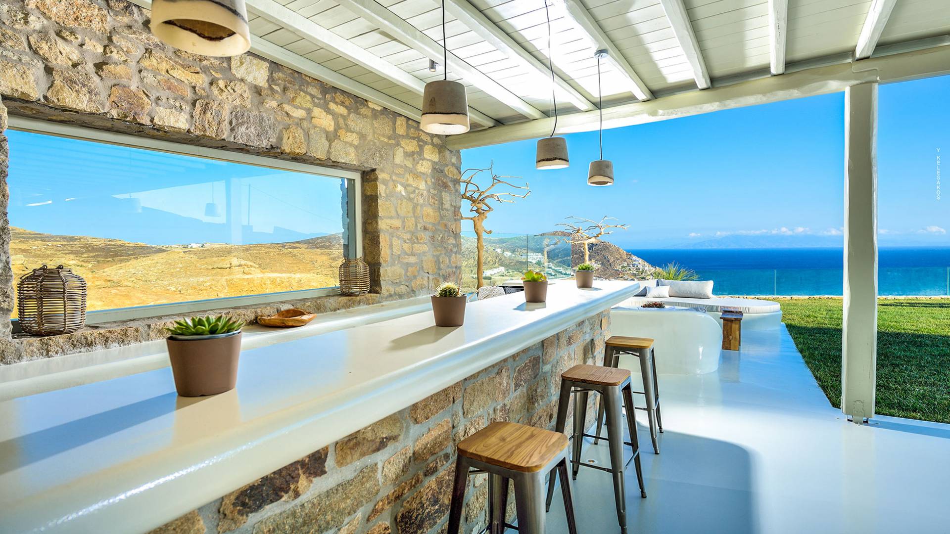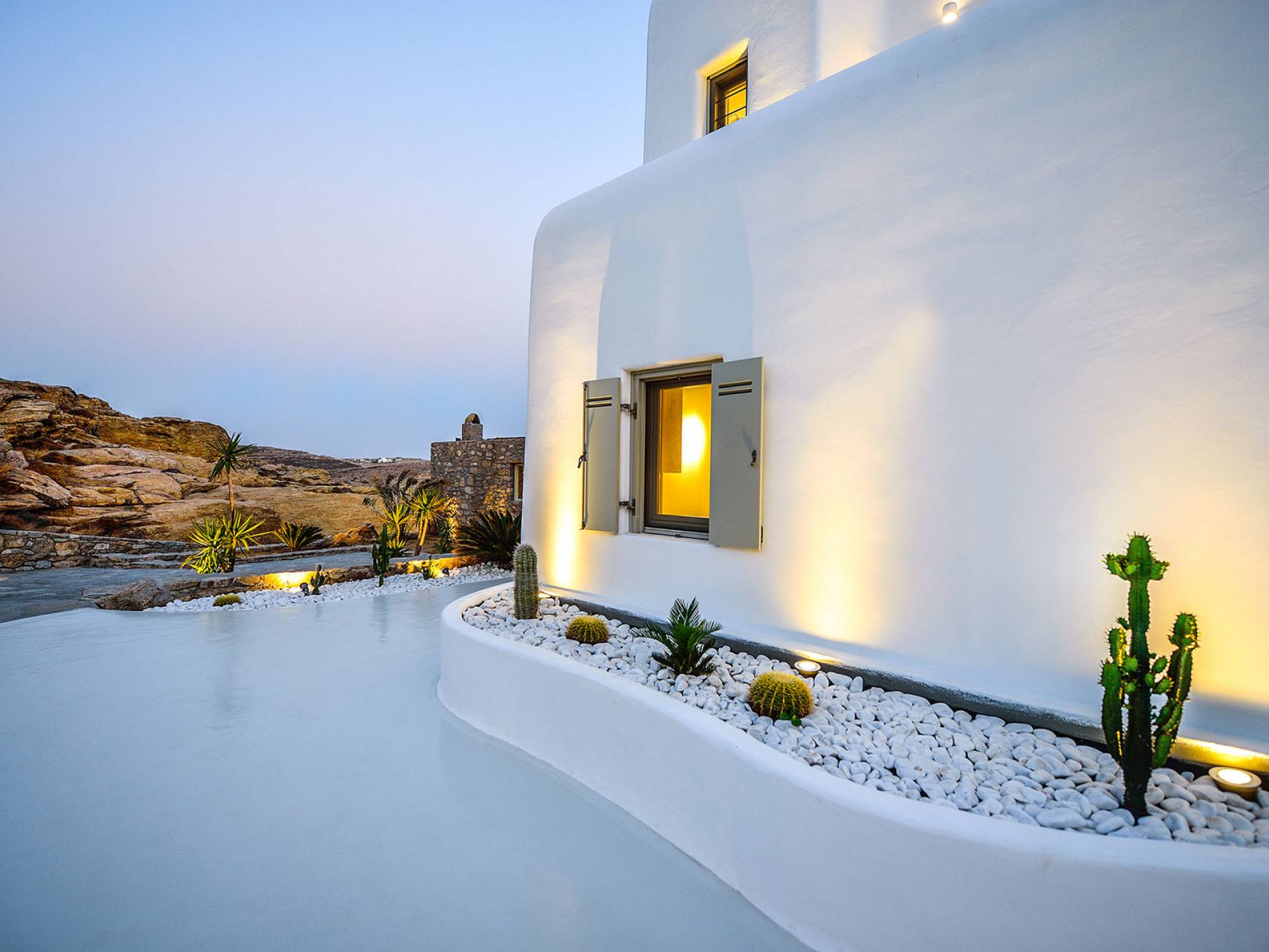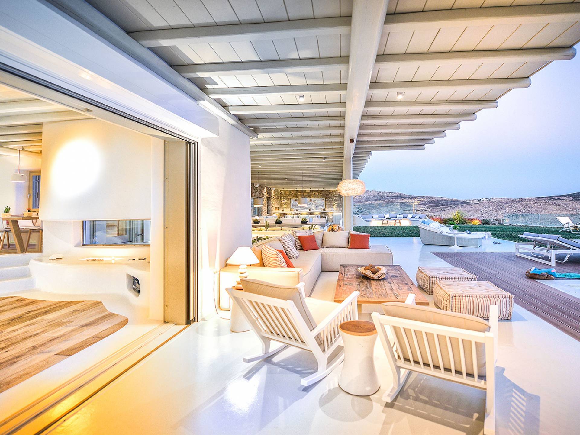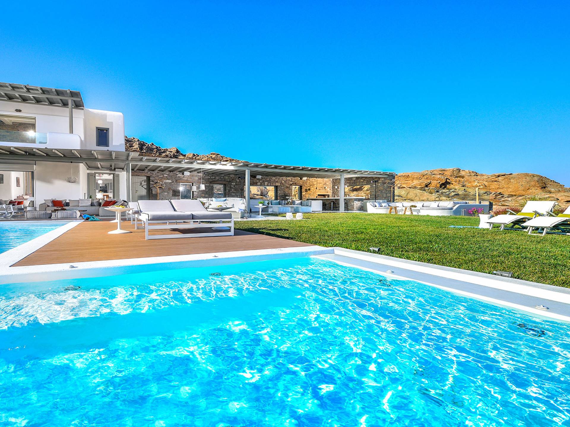 The 2.000 sq. m. plot with flowers, cactuses and other decorative plants give the guests an abundance of spaces to enjoy and offer the opportunity to relax on the exquisite outdoor area with its Infinity Pool (which is surrounded by grass), multiple large lounges and the dining area with a bar and a built-in BBQ. A private parking lot for up to six cars can also be found within the Villa’s grounds while the region of Elia is less than a 20 minutes' drive from Mykonos Town and the island’s airport.
