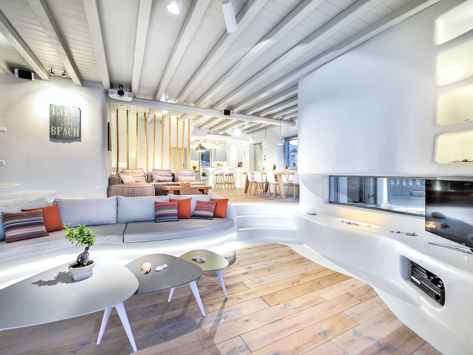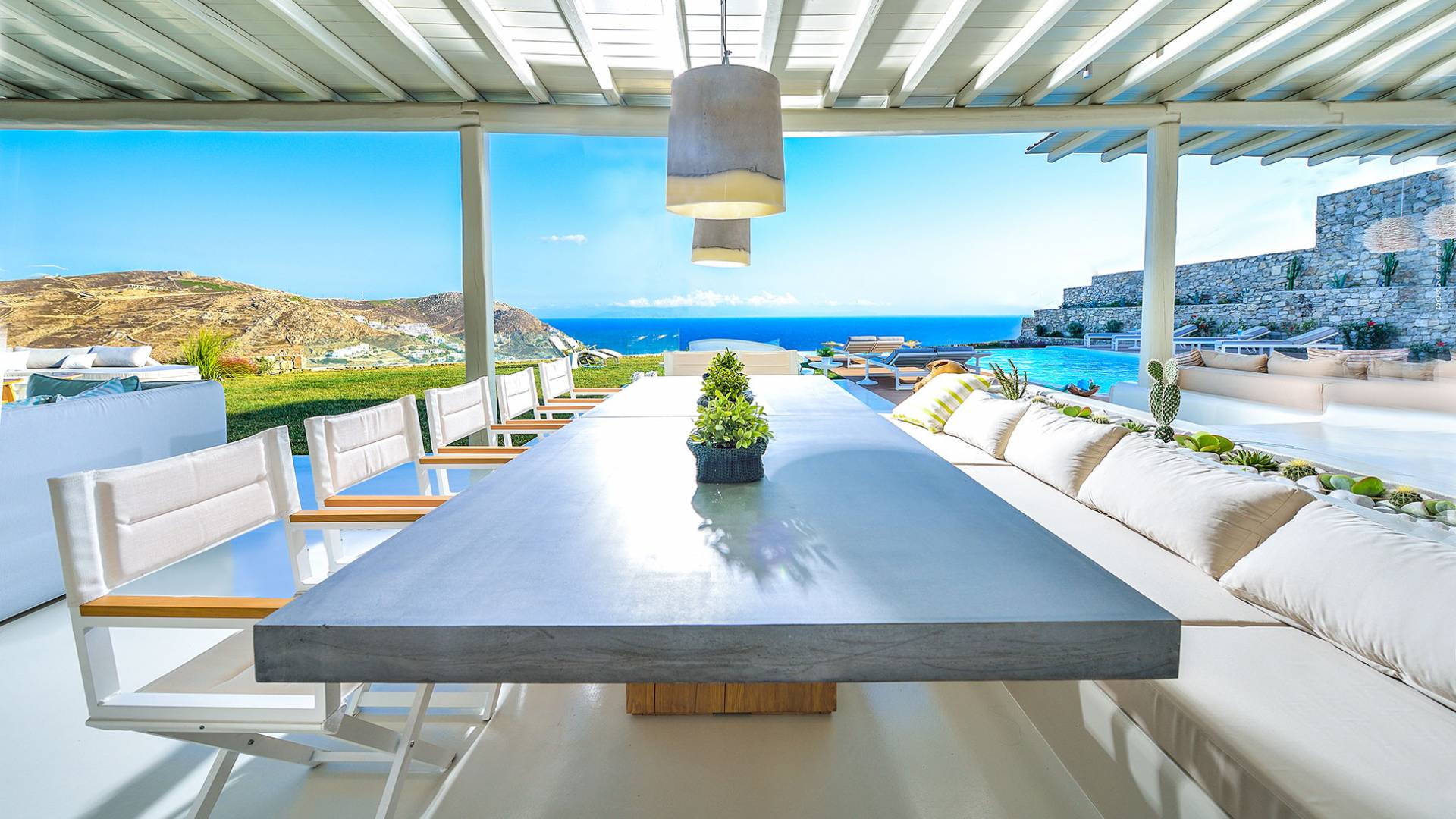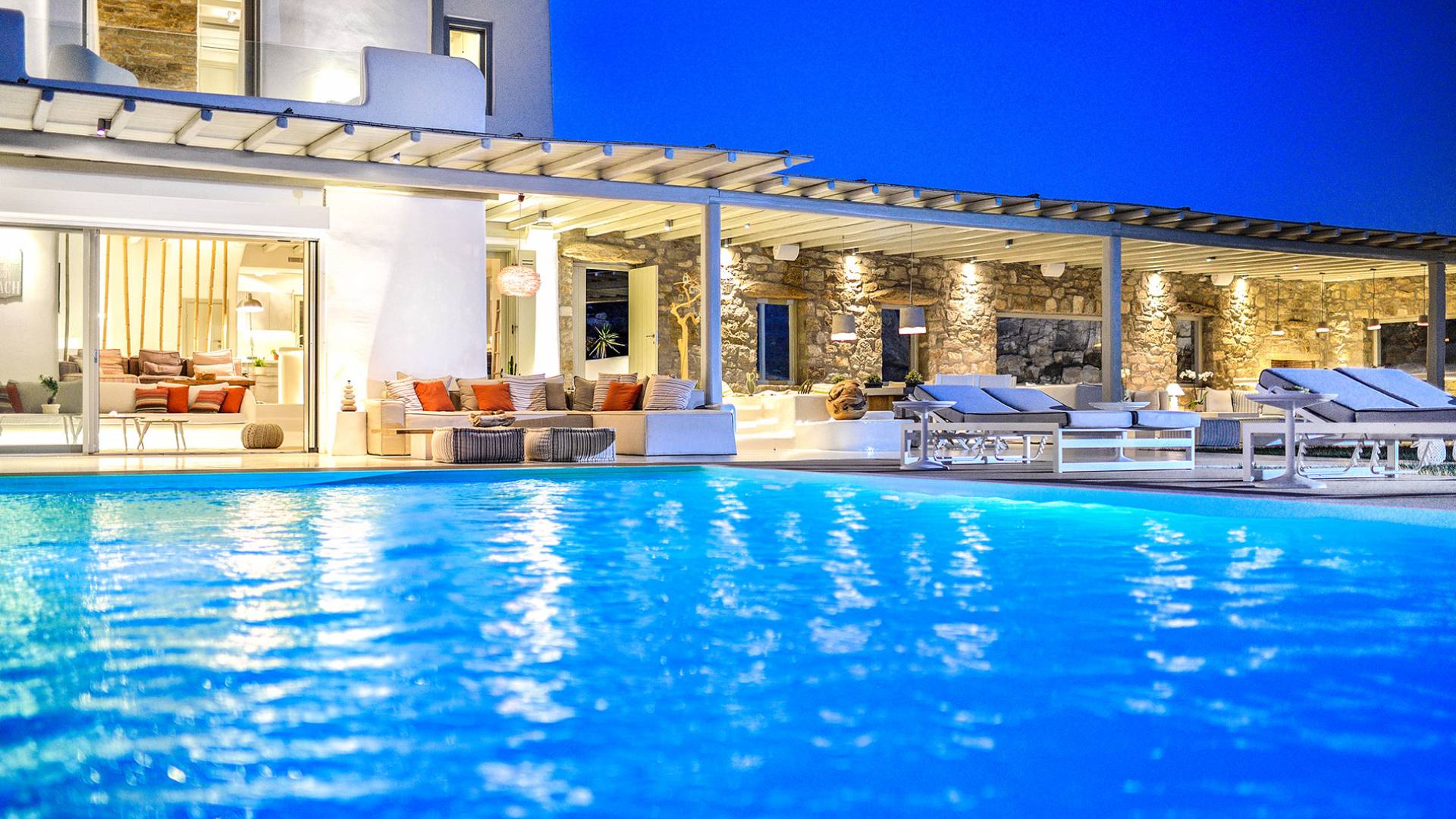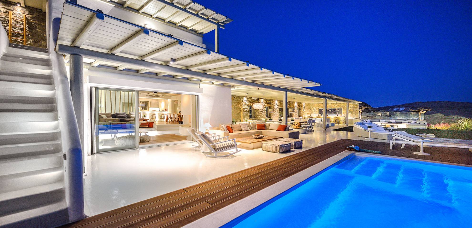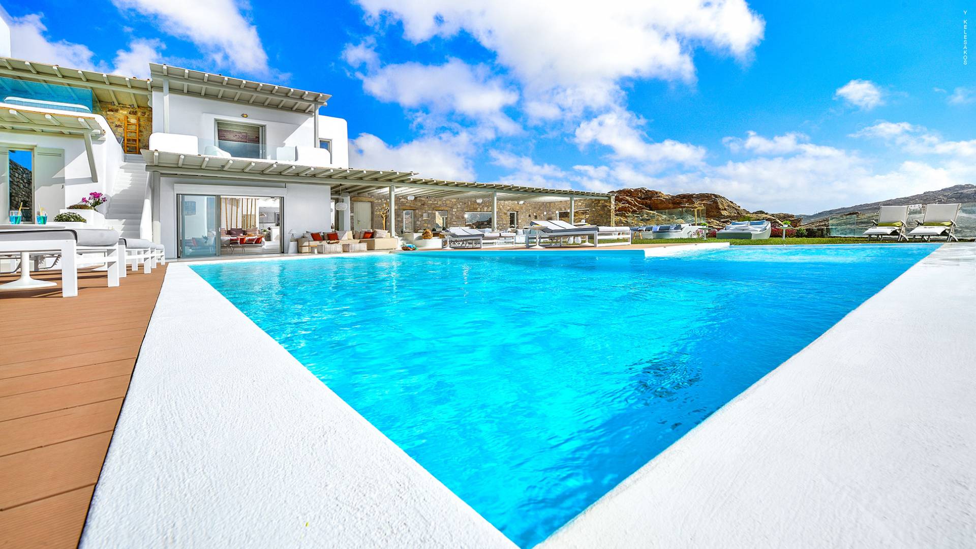 The 2.000 sq. m. plot with flowers, cactuses and other decorative plants give the guests an abundance of spaces to enjoy and offer the opportunity to relax on the exquisite outdoor area with its Infinity Pool (which is surrounded by grass), multiple large lounges and the dining area with a bar and a built-in BBQ. A private parking lot for up to six cars can also be found within the Villa’s grounds while the region of Elia is less than a 20 minutes' drive from Mykonos Town and the island’s airport.