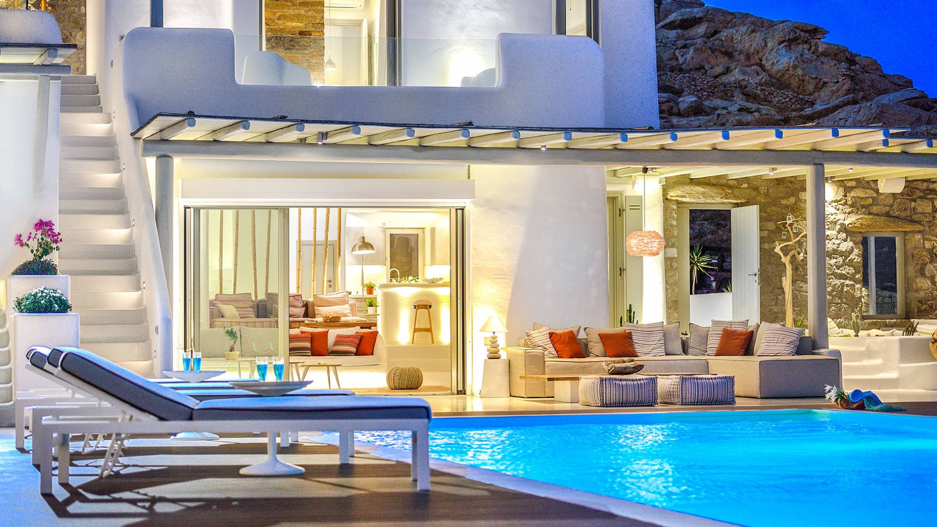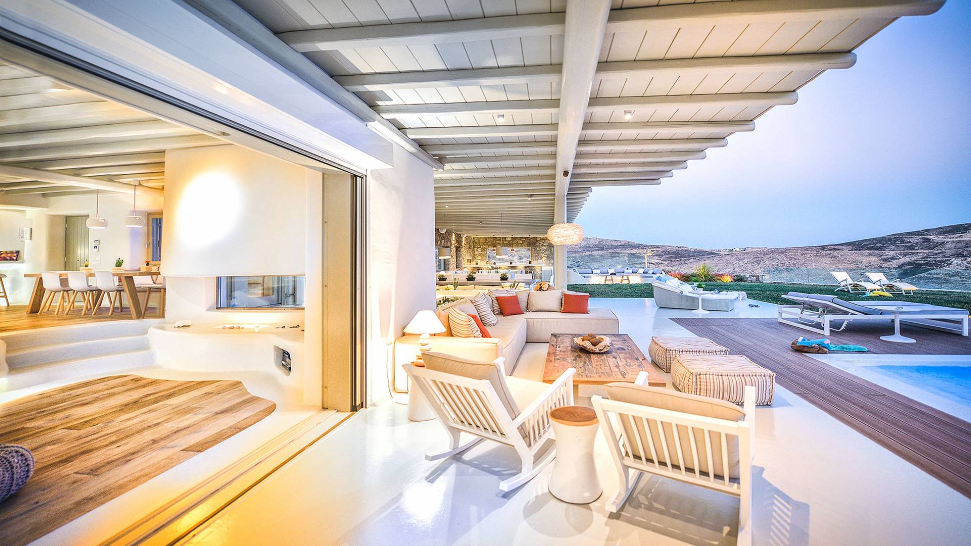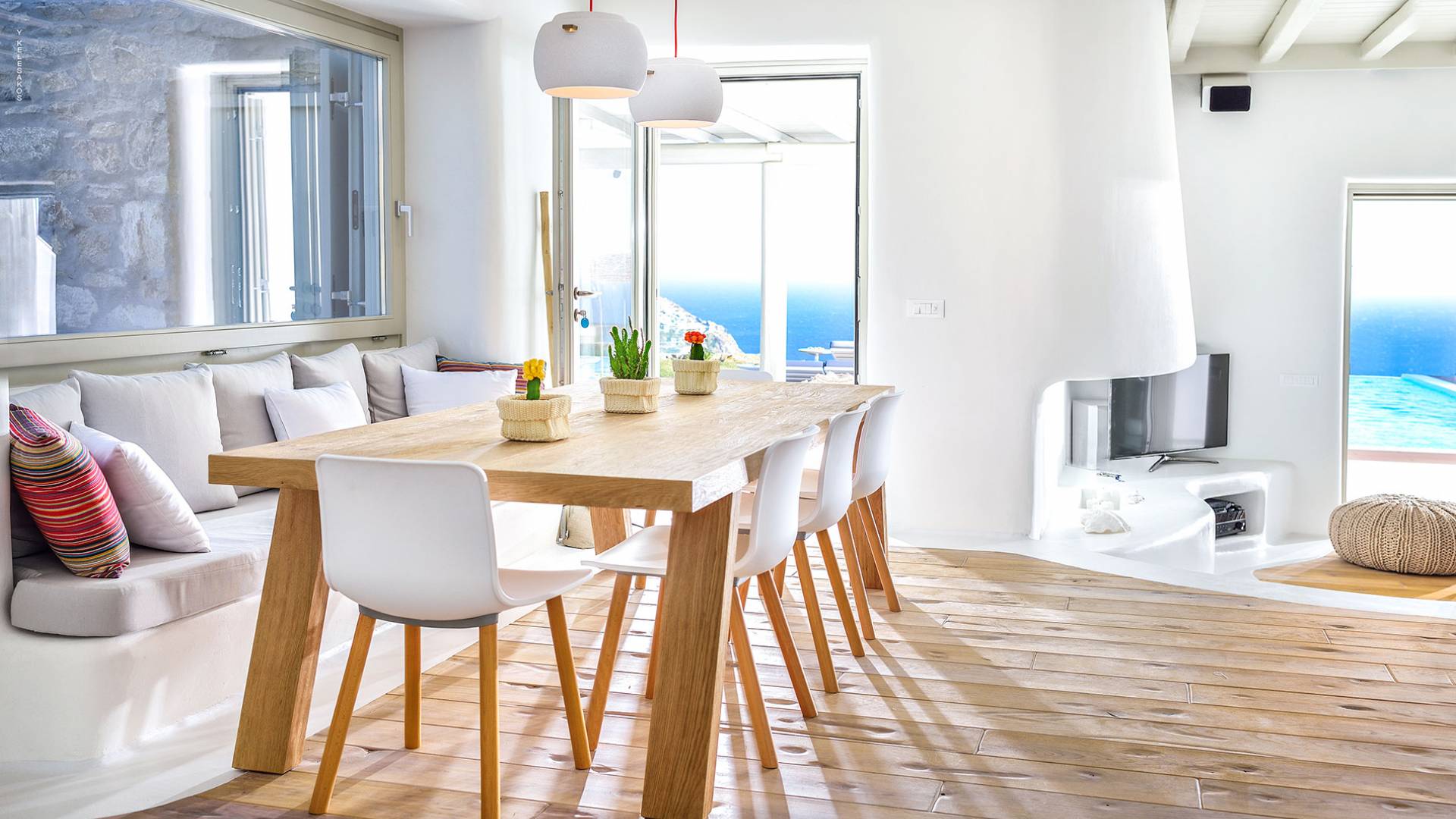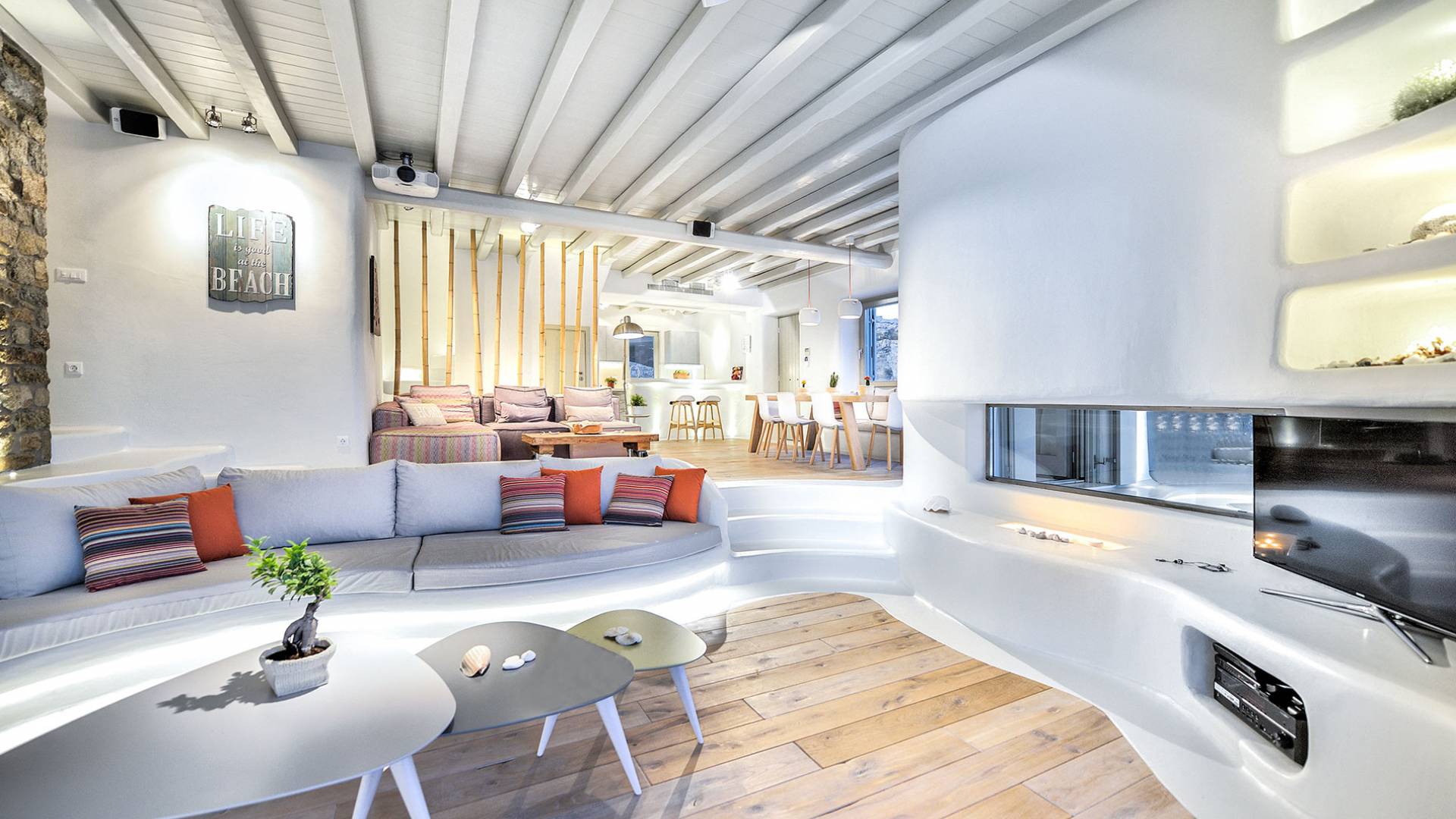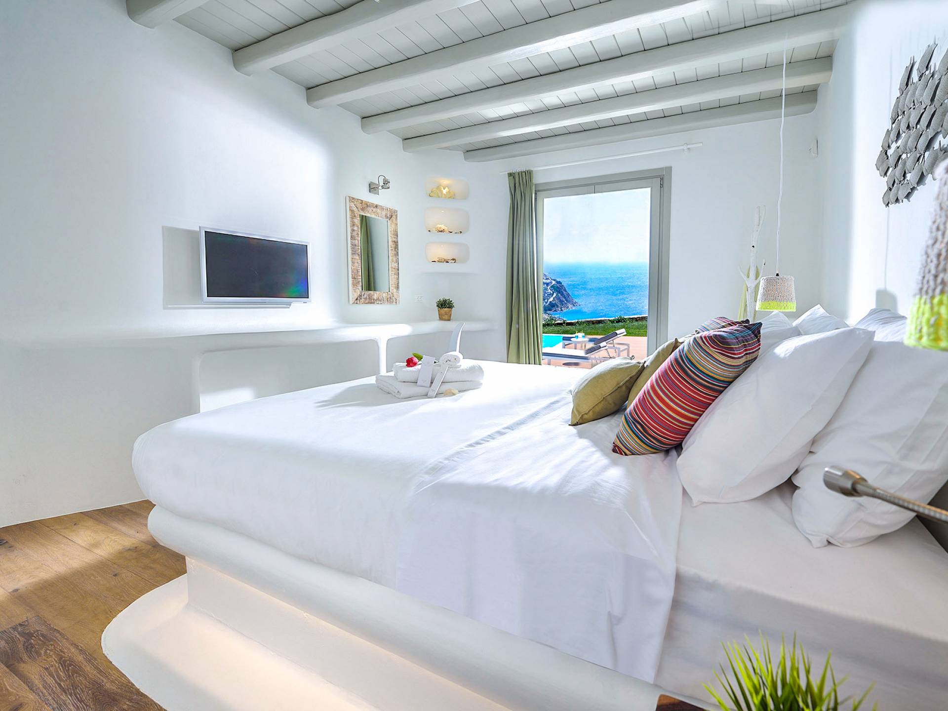 The 2.000 sq. m. plot with flowers, cactuses and other decorative plants give the guests an abundance of spaces to enjoy and offer the opportunity to relax on the exquisite outdoor area with its Infinity Pool (which is surrounded by grass), multiple large lounges and the dining area with a bar and a built-in BBQ. A private parking lot for up to six cars can also be found within the Villa’s grounds while the region of Elia is less than a 20 minutes' drive from Mykonos Town and the island’s airport.