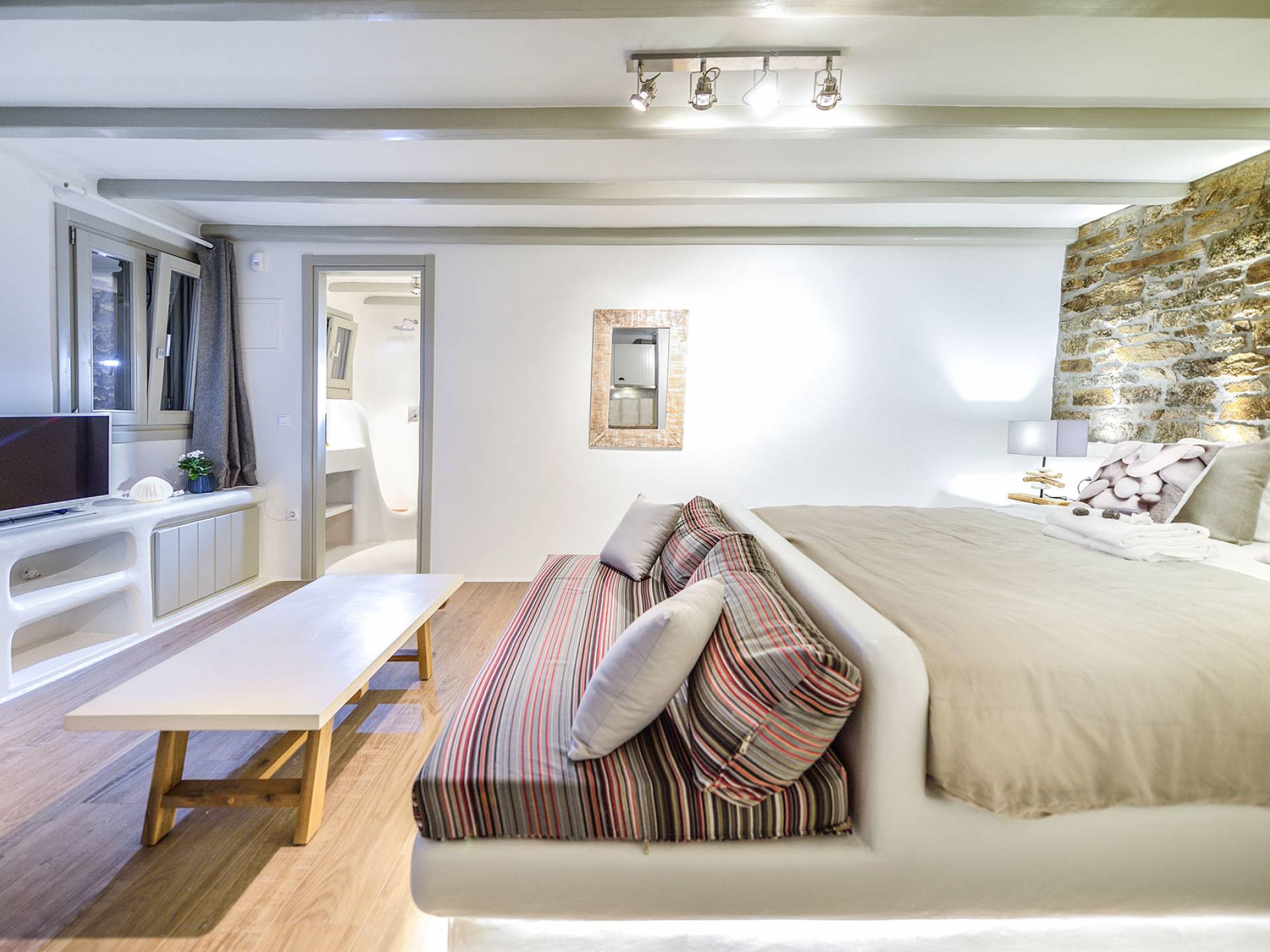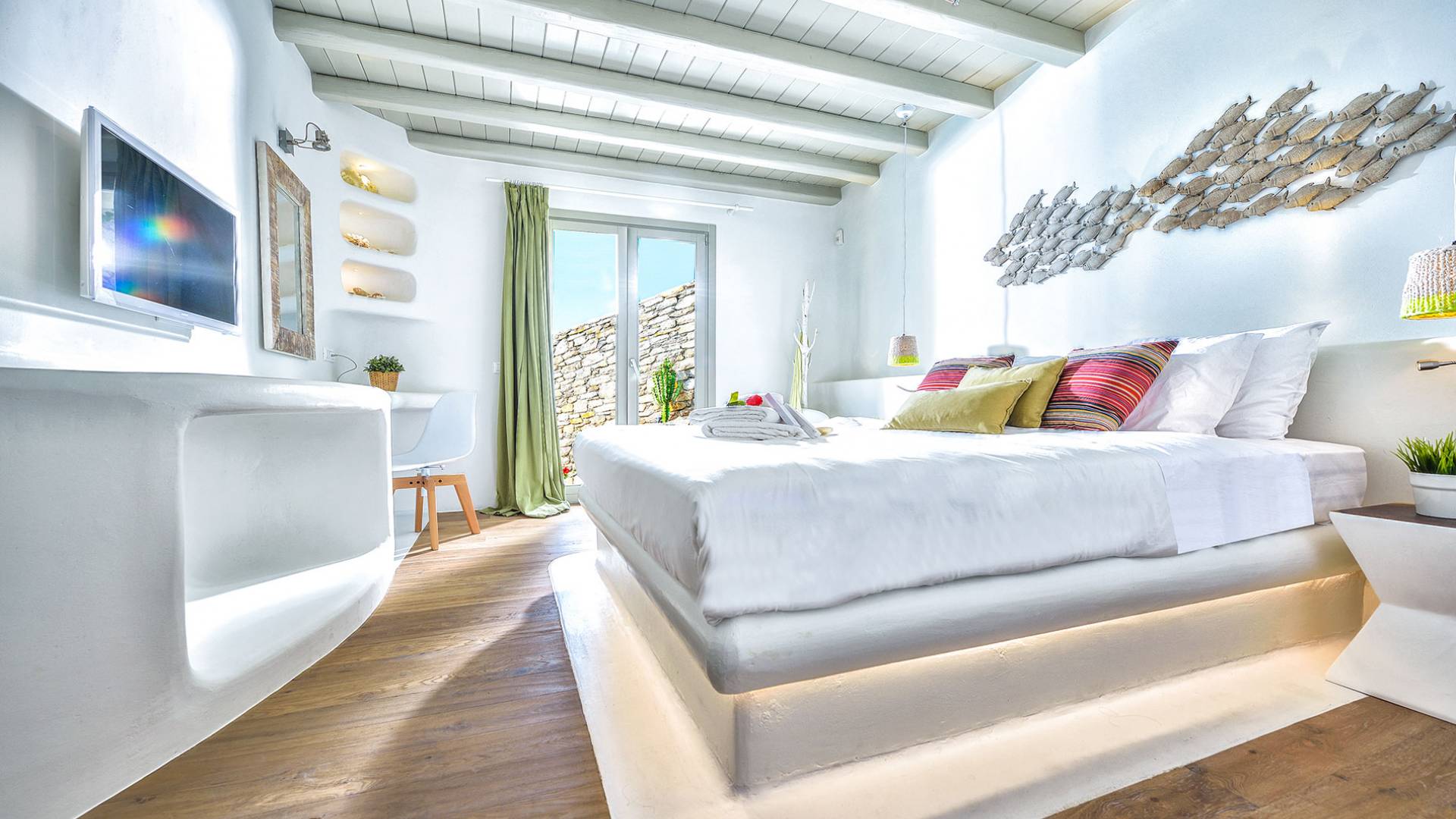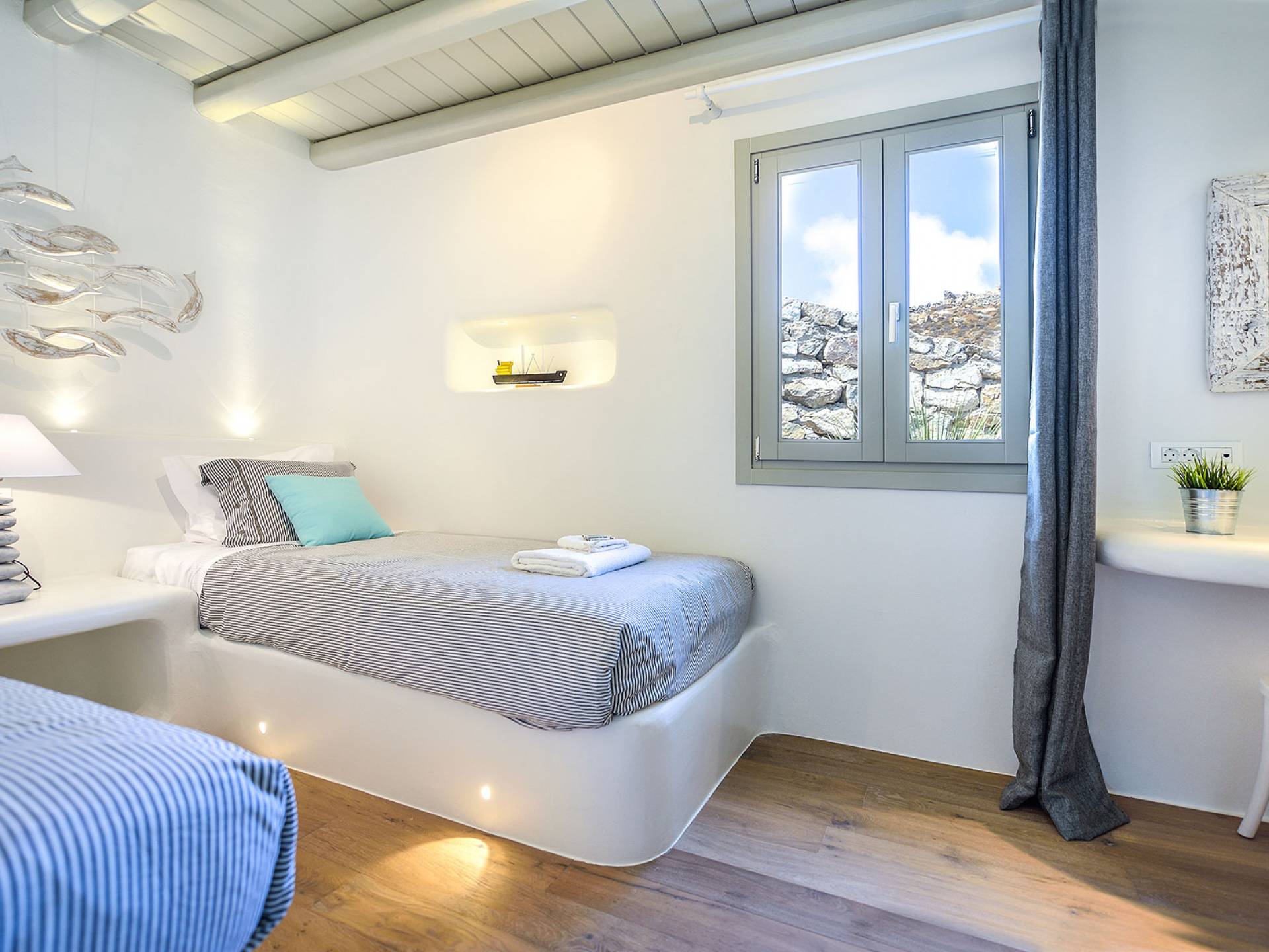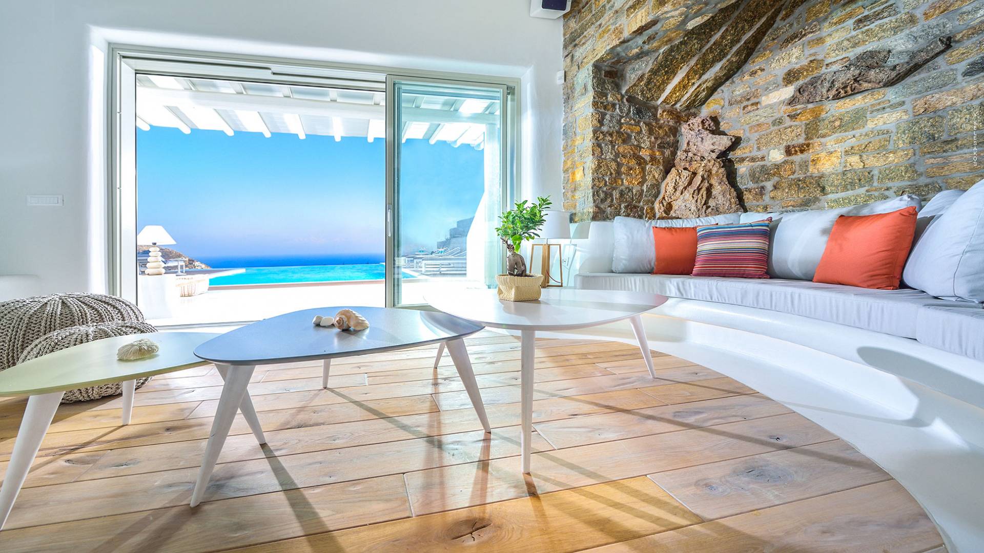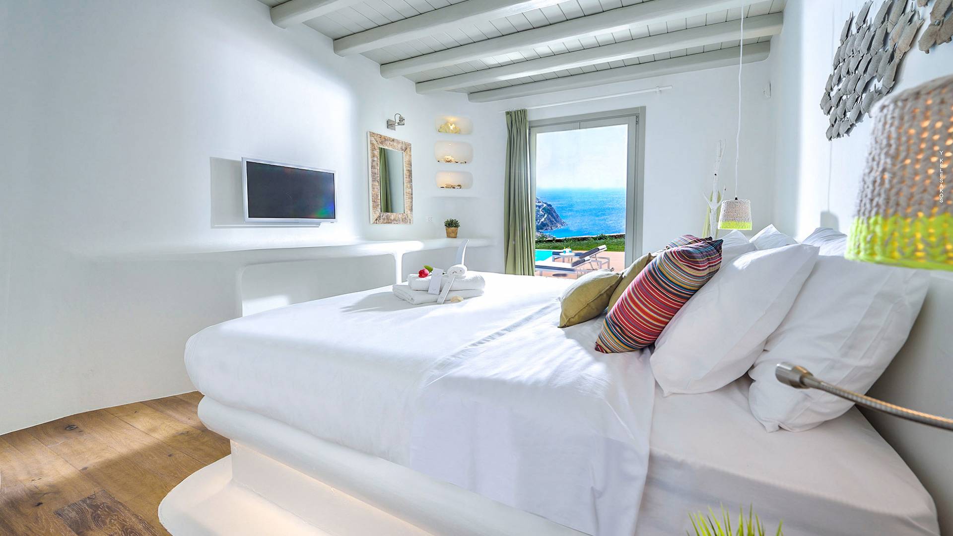 The 2.000 sq. m. plot with flowers, cactuses and other decorative plants give the guests an abundance of spaces to enjoy and offer the opportunity to relax on the exquisite outdoor area with its Infinity Pool (which is surrounded by grass), multiple large lounges and the dining area with a bar and a built-in BBQ. A private parking lot for up to six cars can also be found within the Villa’s grounds while the region of Elia is less than a 20 minutes' drive from Mykonos Town and the island’s airport.