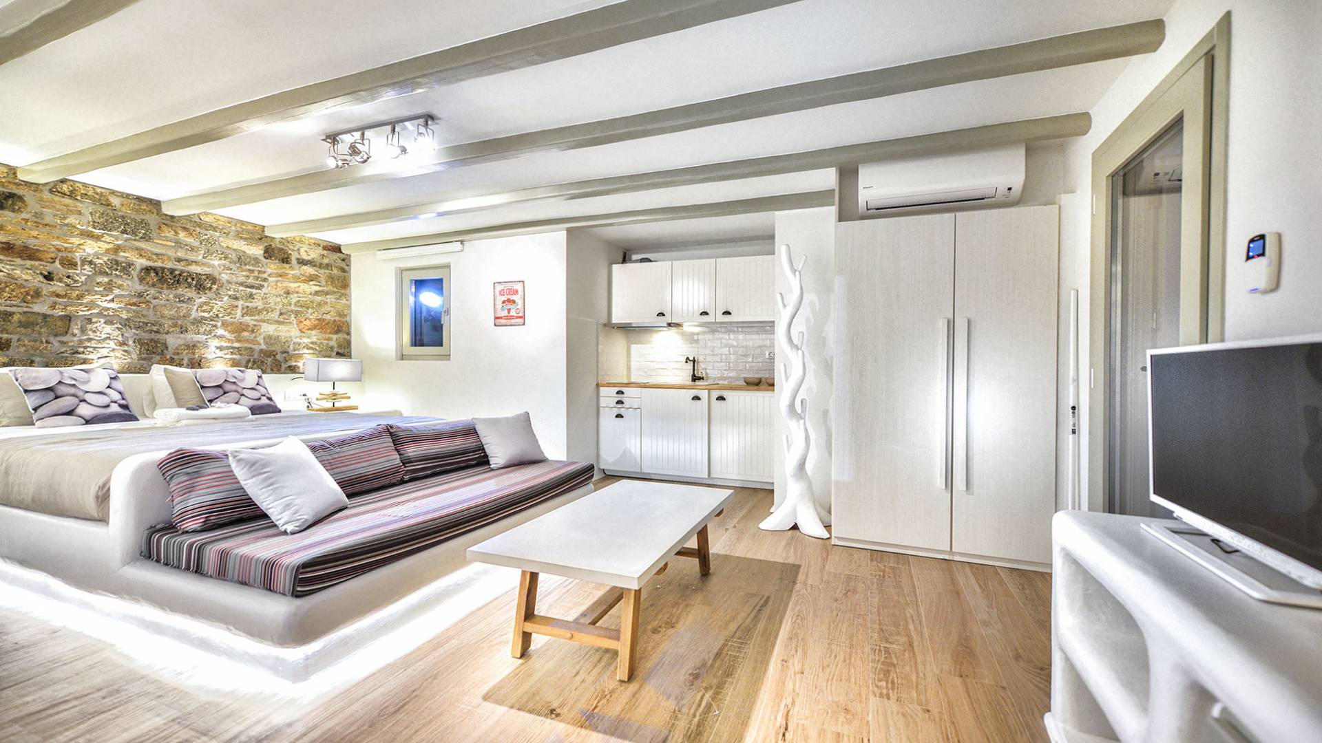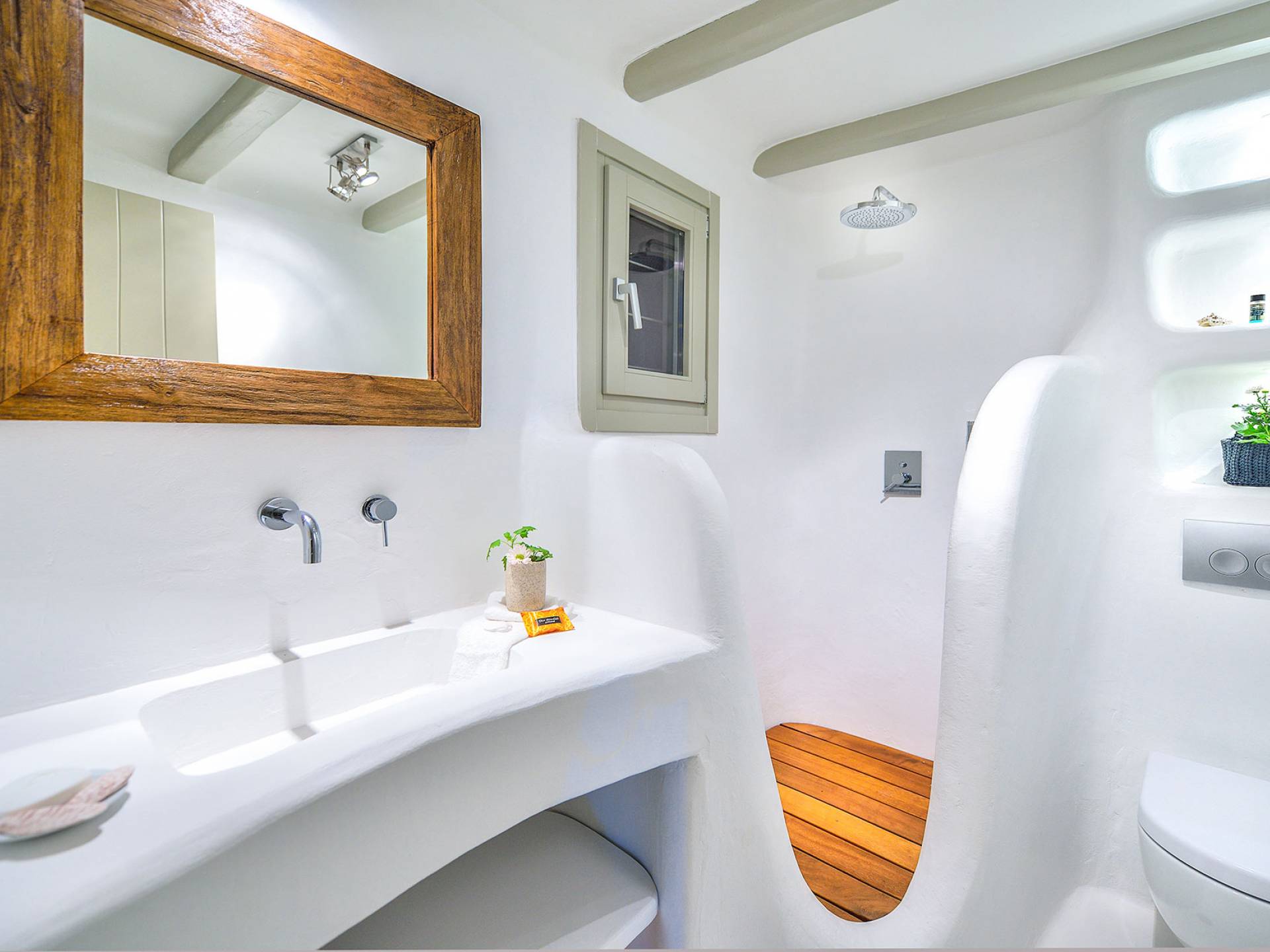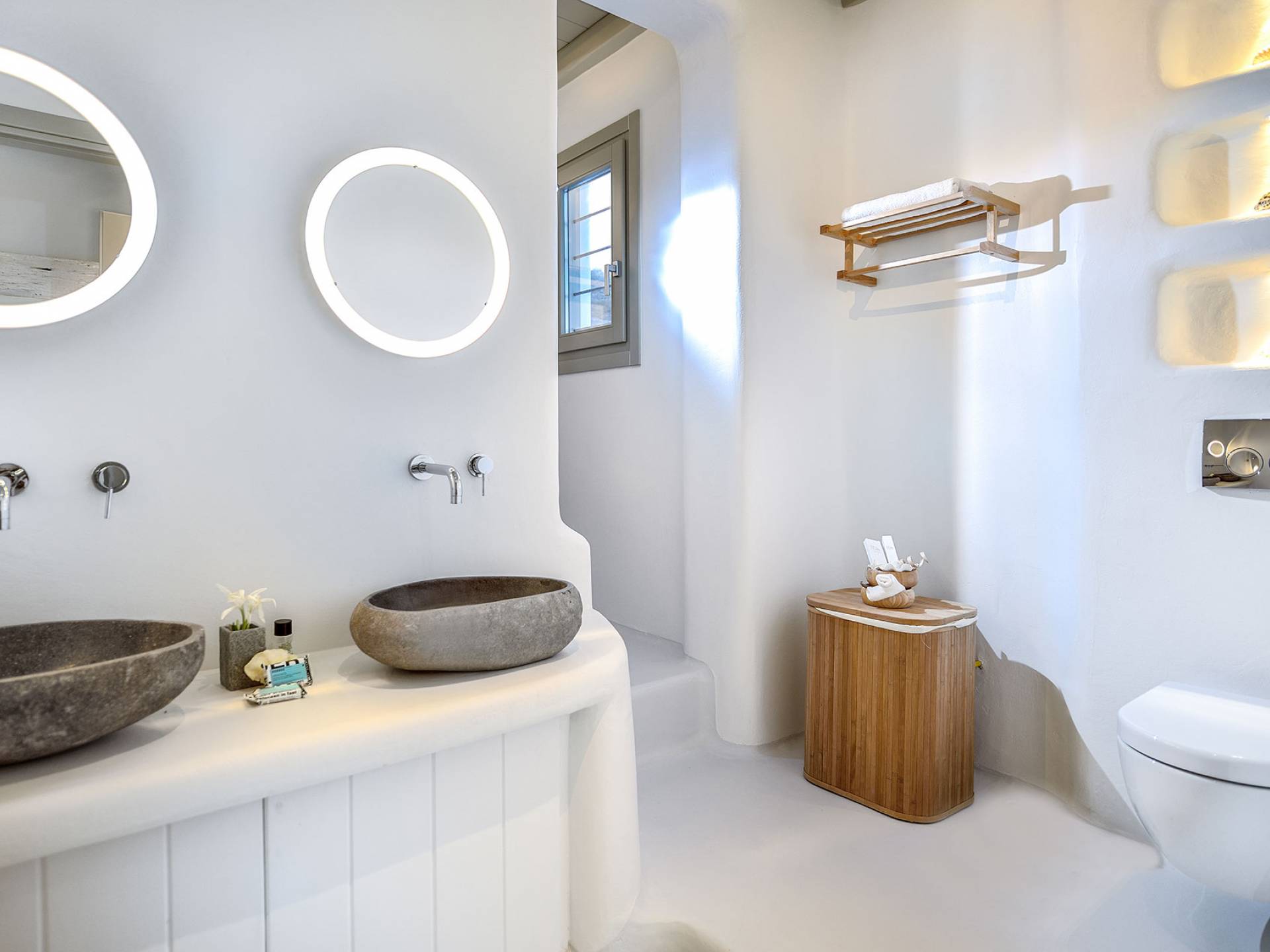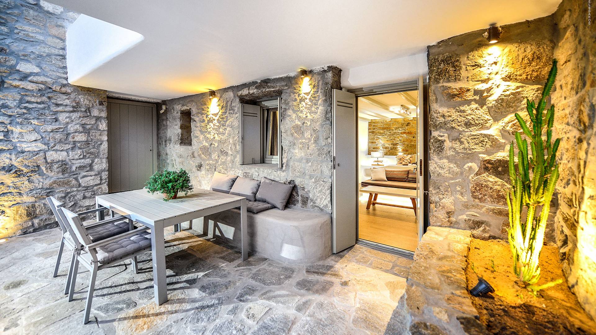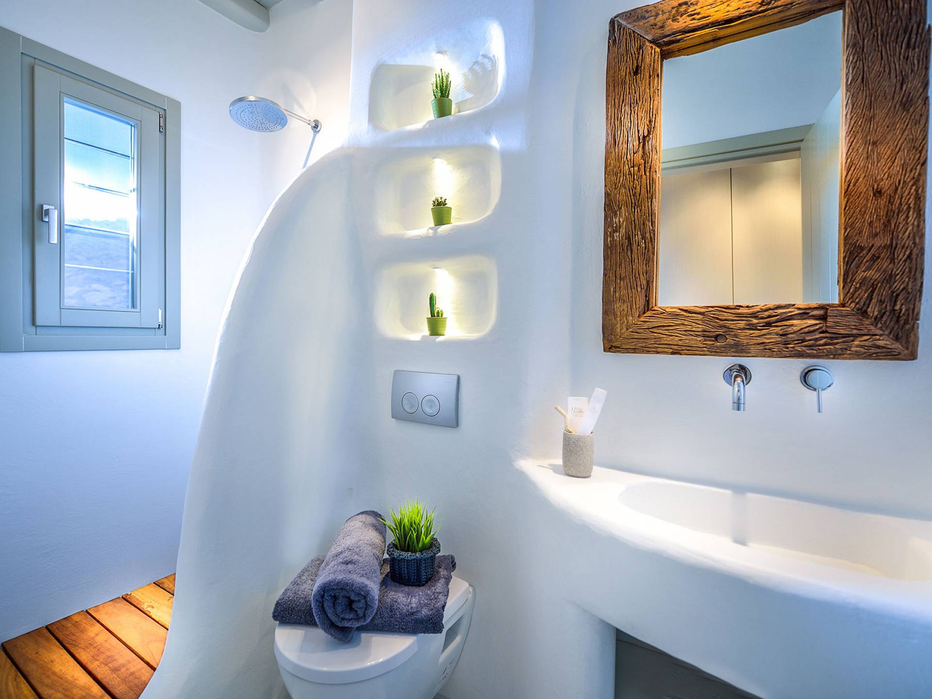 The 2.000 sq. m. plot with flowers, cactuses and other decorative plants give the guests an abundance of spaces to enjoy and offer the opportunity to relax on the exquisite outdoor area with its Infinity Pool (which is surrounded by grass), multiple large lounges and the dining area with a bar and a built-in BBQ. A private parking lot for up to six cars can also be found within the Villa’s grounds while the region of Elia is less than a 20 minutes' drive from Mykonos Town and the island’s airport.